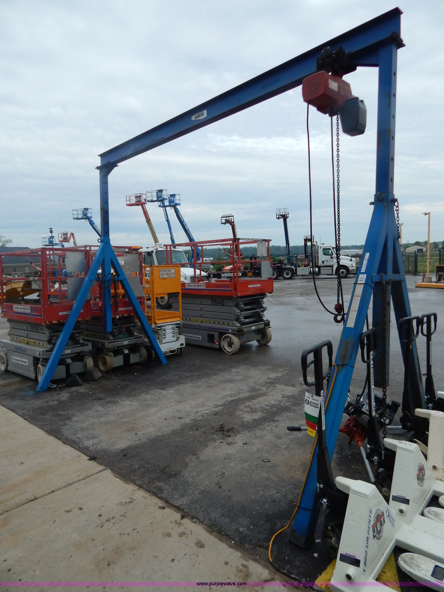 Gentry crane. 4,000 lb capacity, Adjustable height, 1/2 ton, 120V chain hoist, Chains and boomers not included. Shipping quotes available. United Rentals - Collinsville. 5076 Mid America Court. Collinsville, IL 62234