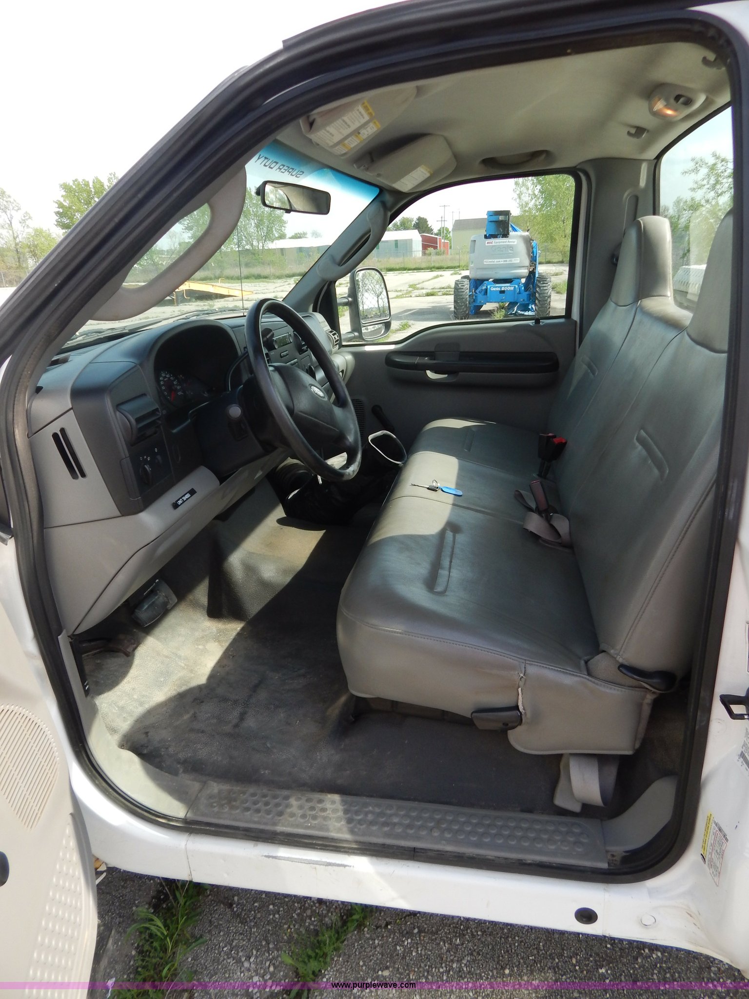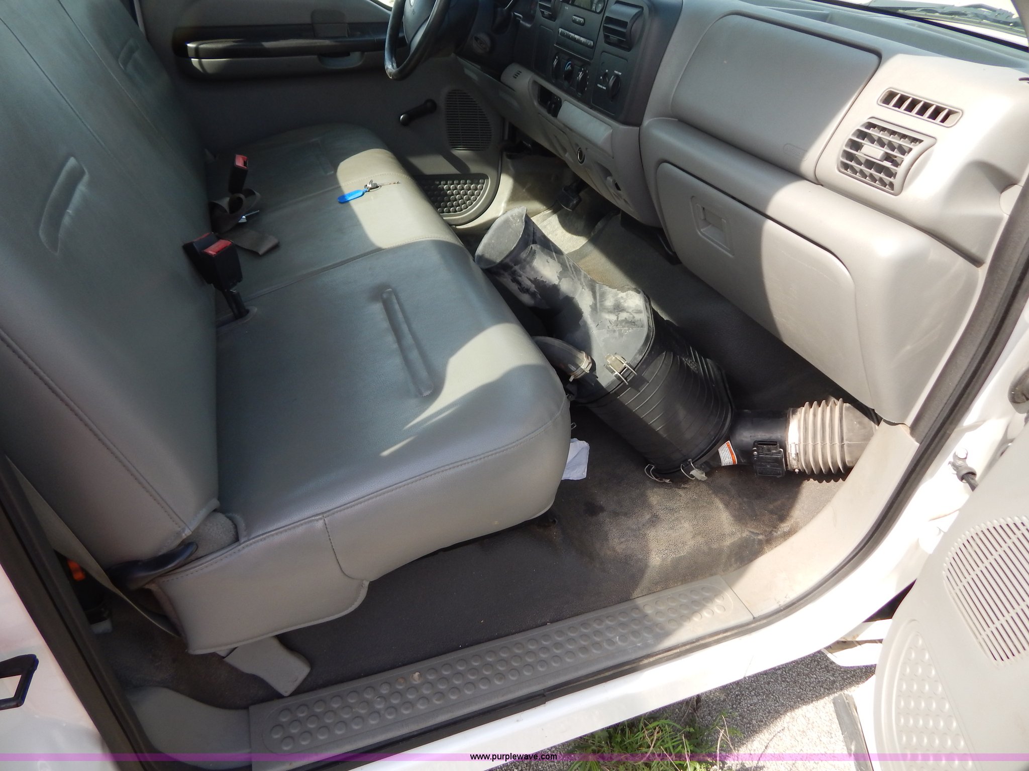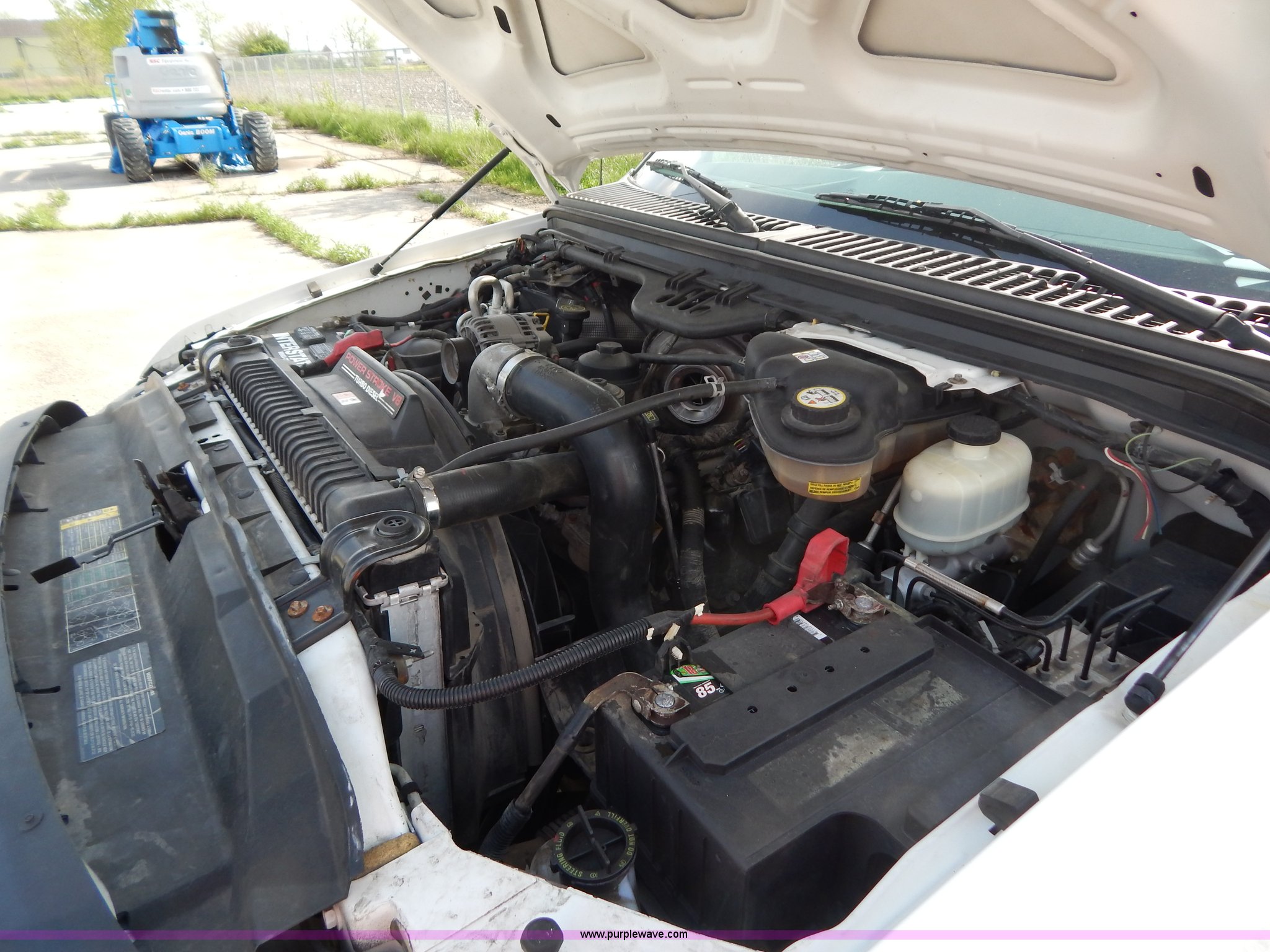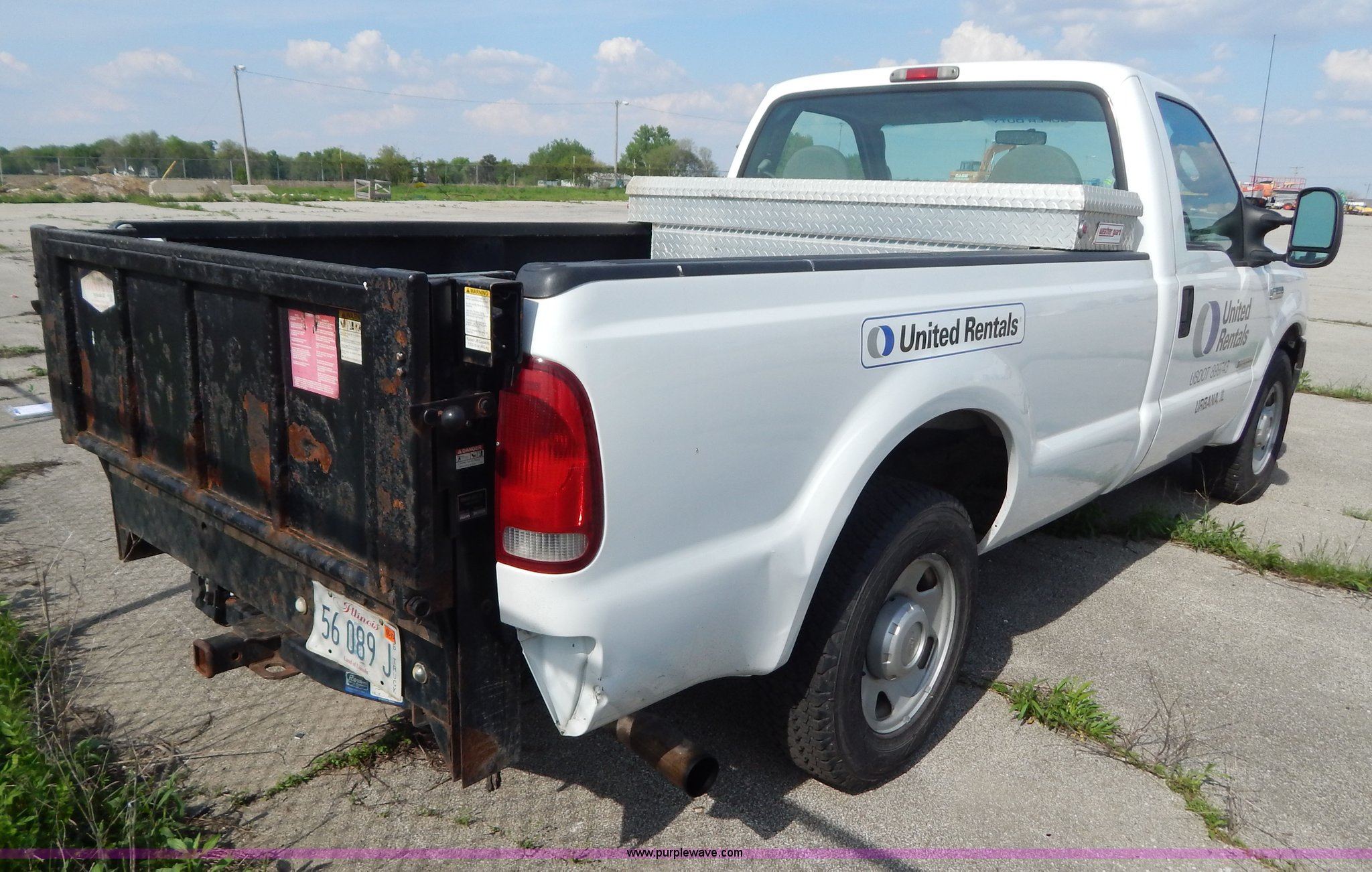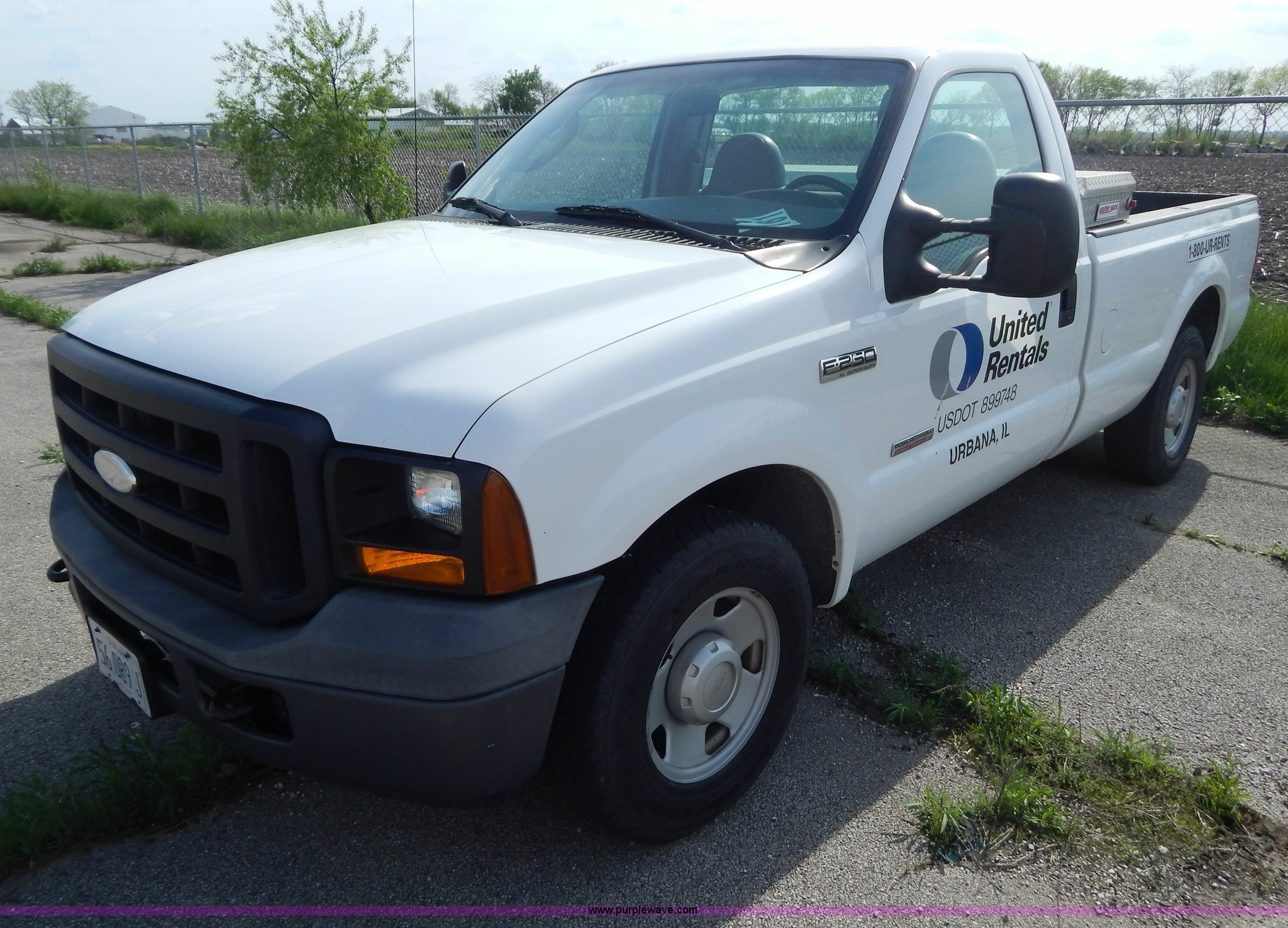 Purple Wave is selling a used Passenger Vehicle in Illinois. This item is a 2006 Ford F250 Super Duty pickup truck with the following: 183,192 miles on odometer, 6.0L V8 OHV 32V turbo diesel engine, Automatic transmission, AC and heat, AM/FM, Manual windows and locks, Vinyl interior, Long bed, Electric over hydraulic Tommygate lift, Model 60-1040, Serial 341974, Spray-in bed liner, WeatherGuard toolbox, Receiver hitch, Trailer wiring, 245/75R17 tires, Turbo and intercooler need replaced, Non-operational, EIN 584893RA
