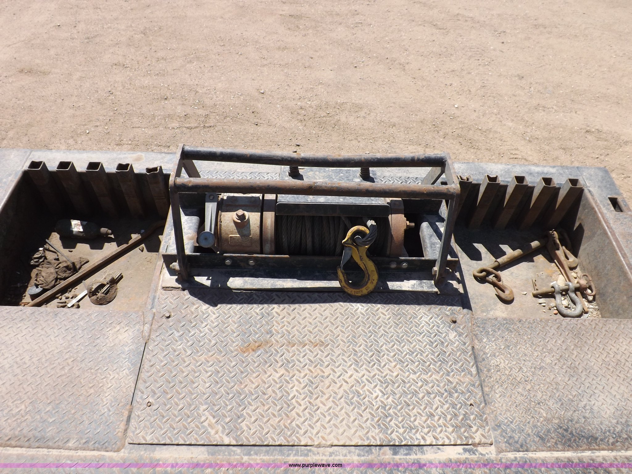 Purple Wave is selling a used Equip. Trailer in Kansas. This item is a 2006 Ledwell Hydratail trailer with the following: Model LW48 HT2-10-PB, 48'L x 8.5'W, Wood and expanded metal deck, Double fold tail, Flip out side marker lighting, Remote control hydraulic functions, Right weight load scales, Front portion of lower deck raises to top deck, Braden AHU7-14 winch, 20,000 lbs capacity, Upper deck open storage, Left and right hydraulic controls, Two speed landing gear, Full length stake pockets on 24" centers, 225/70R22.5 tires, Hydraulic leaks, Air bag leaks, EIN 608256RA