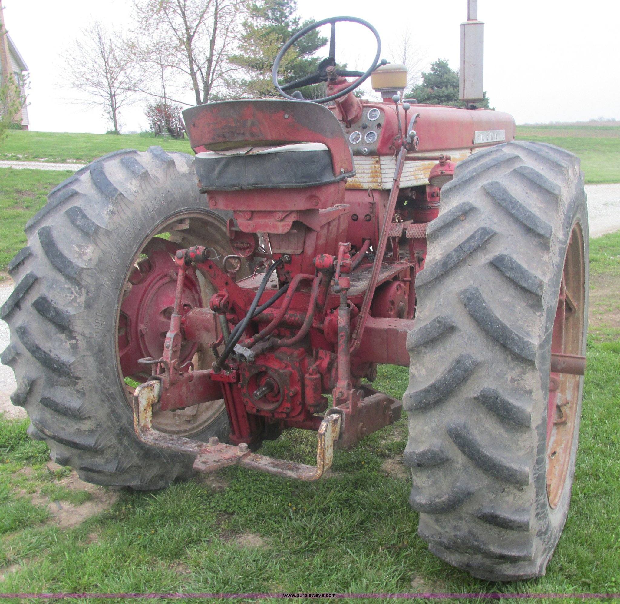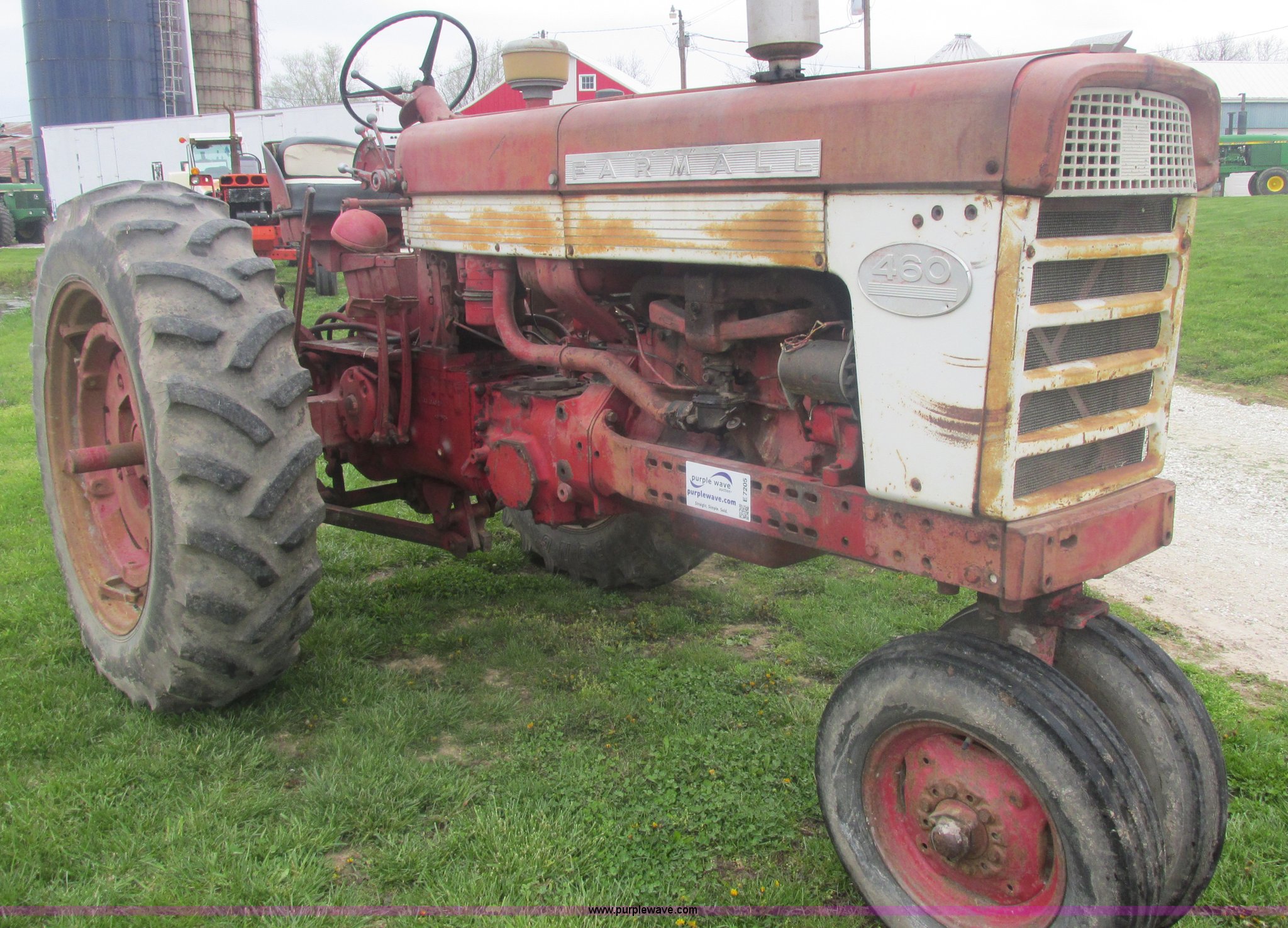 Purple Wave is selling a used Tractor in Illinois. This item is a International Farmall 460 tractor with the following: Approx. 6,172 hours on meter, Six cylinder gas engine, Model 460, Serial 5395SY, Manual transmission, Adjustable spring seat, Headlight mounts, Torque amplifier, Two point, Draw bar, 540 PTO, Rear hydraulic remote, 12V generator, Carries over 40 lb oil pressure, 6.00-16 front tires, 15.5-38 rear tires, Tap in engine, Tach inoperable, Minor hose leaks, Dings, Surface rust, Serial 5395SY