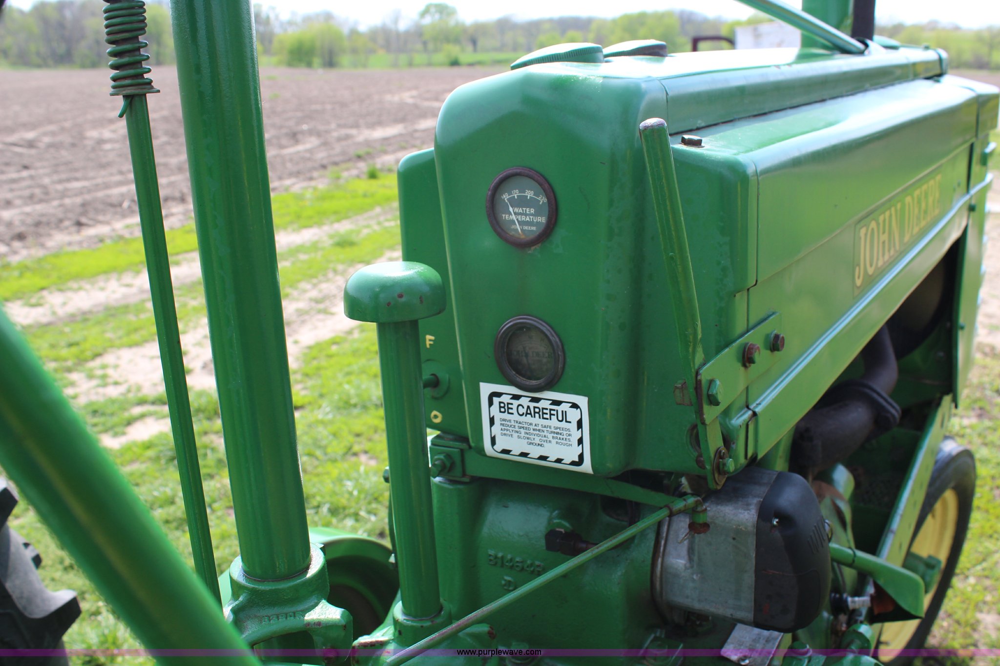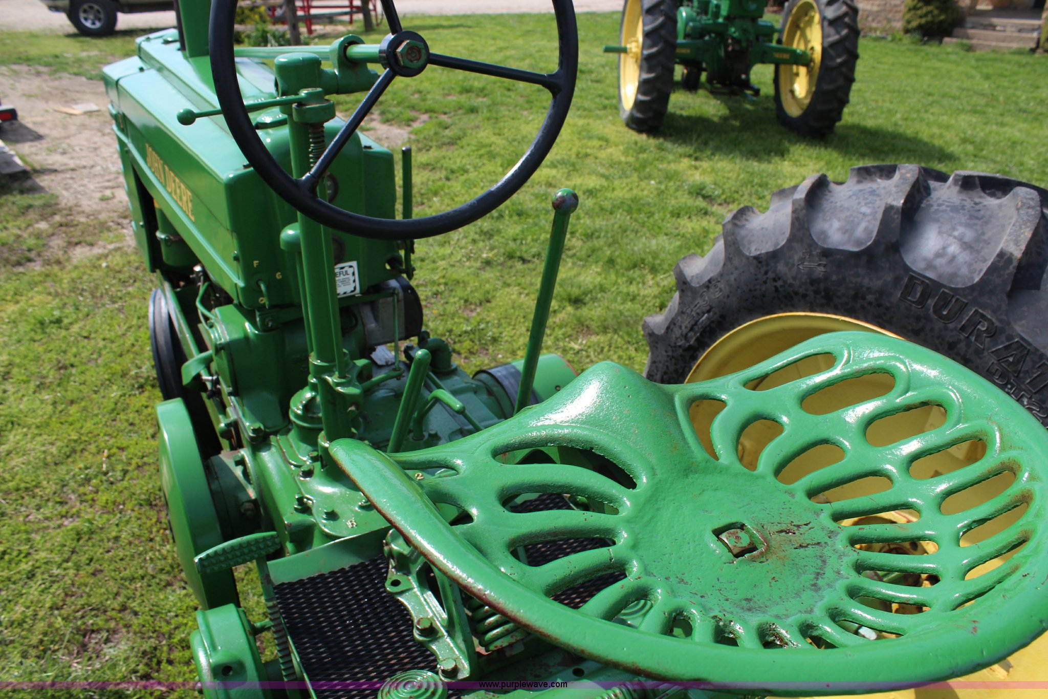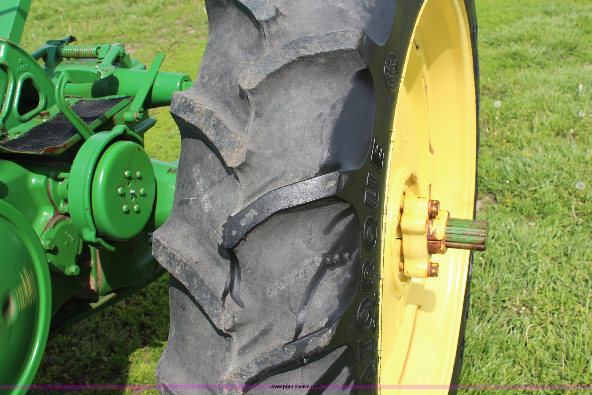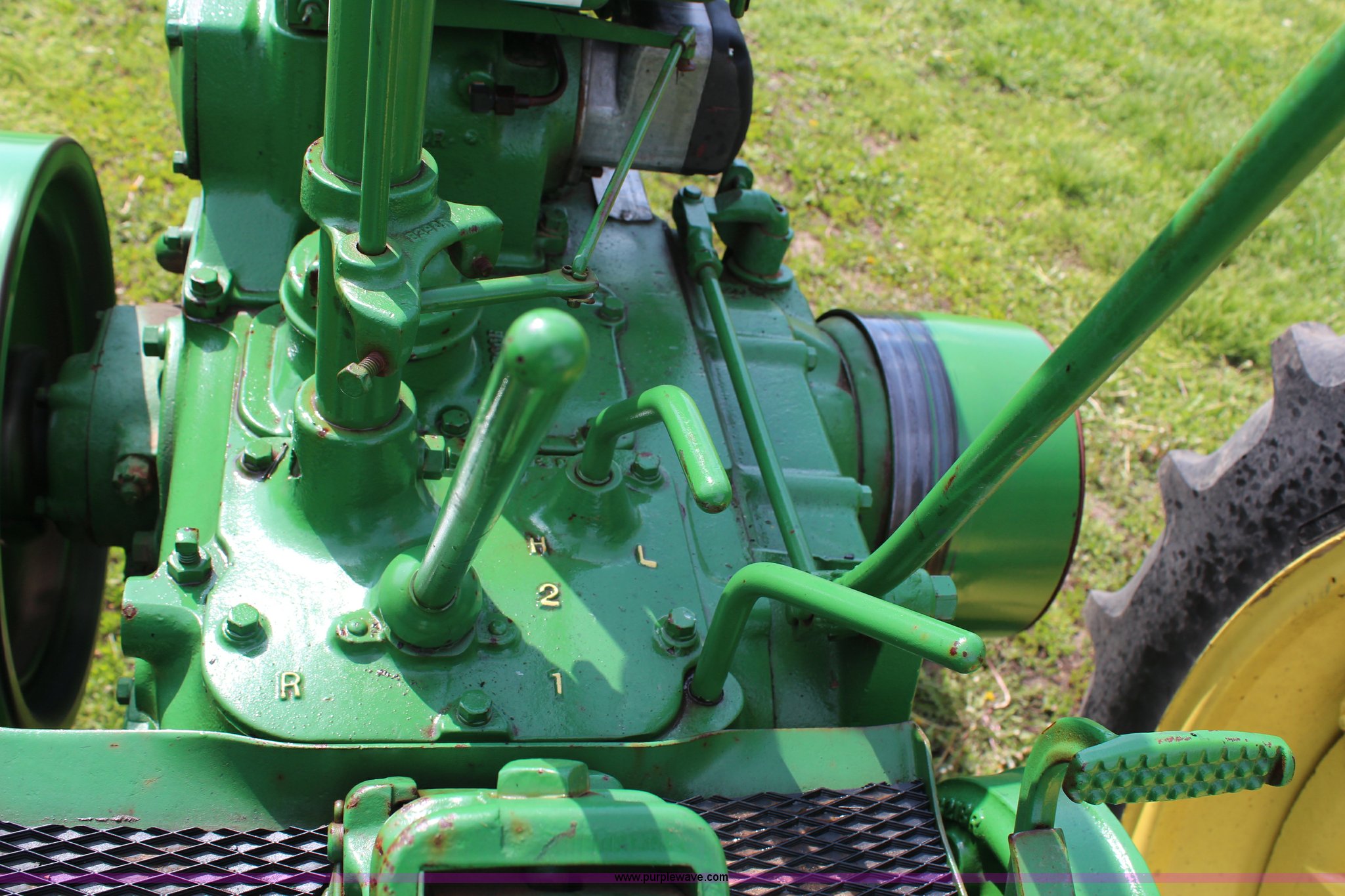 Purple Wave is selling a used Tractor in Kansas. This item is a 1940 John Deere B tractor with the following: Two cylinder gas engine, Two speed transmission, High and Low, 540 PTO, Draw bar, 5.00-15 front tires, 11.2-38 rear tires, Serial 89619