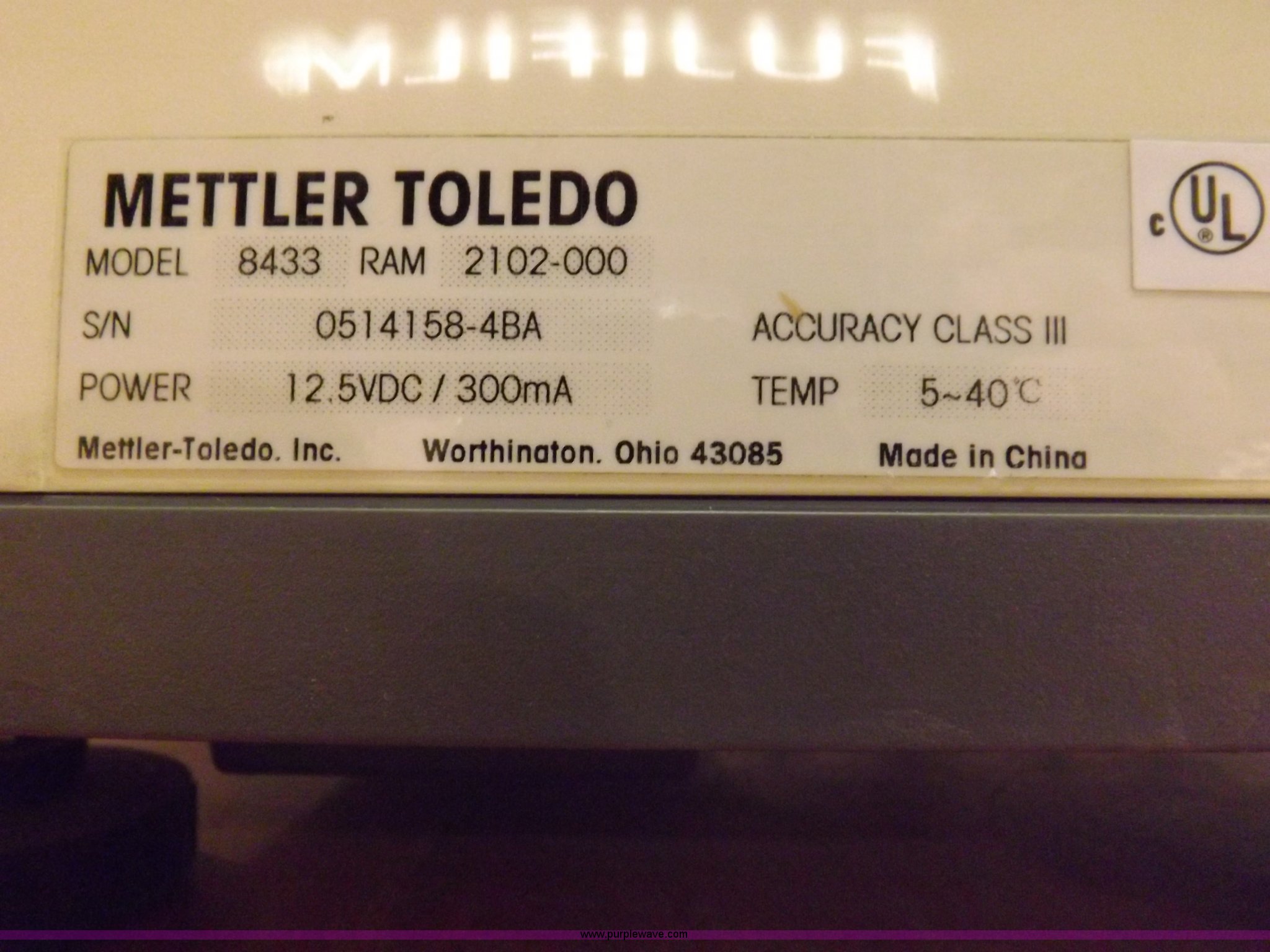 Purple Wave is selling a used Tools in Kansas. This item is a Mettler Toledo 8433 scale with the following: 30 lbs capacity, Dual side digital display, 110V, Serial 0514158-4BA