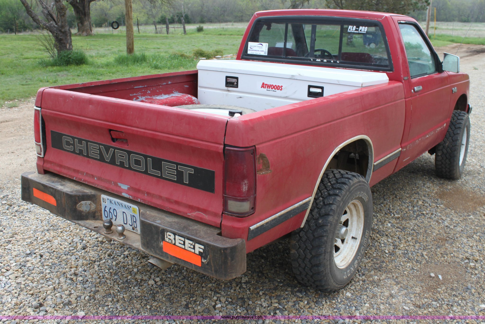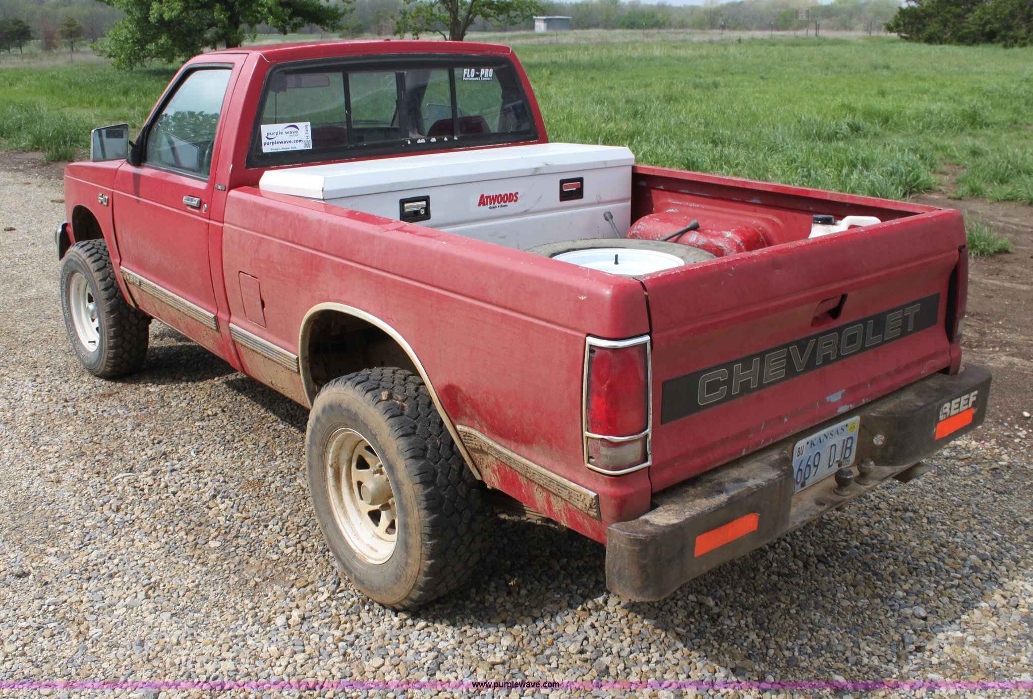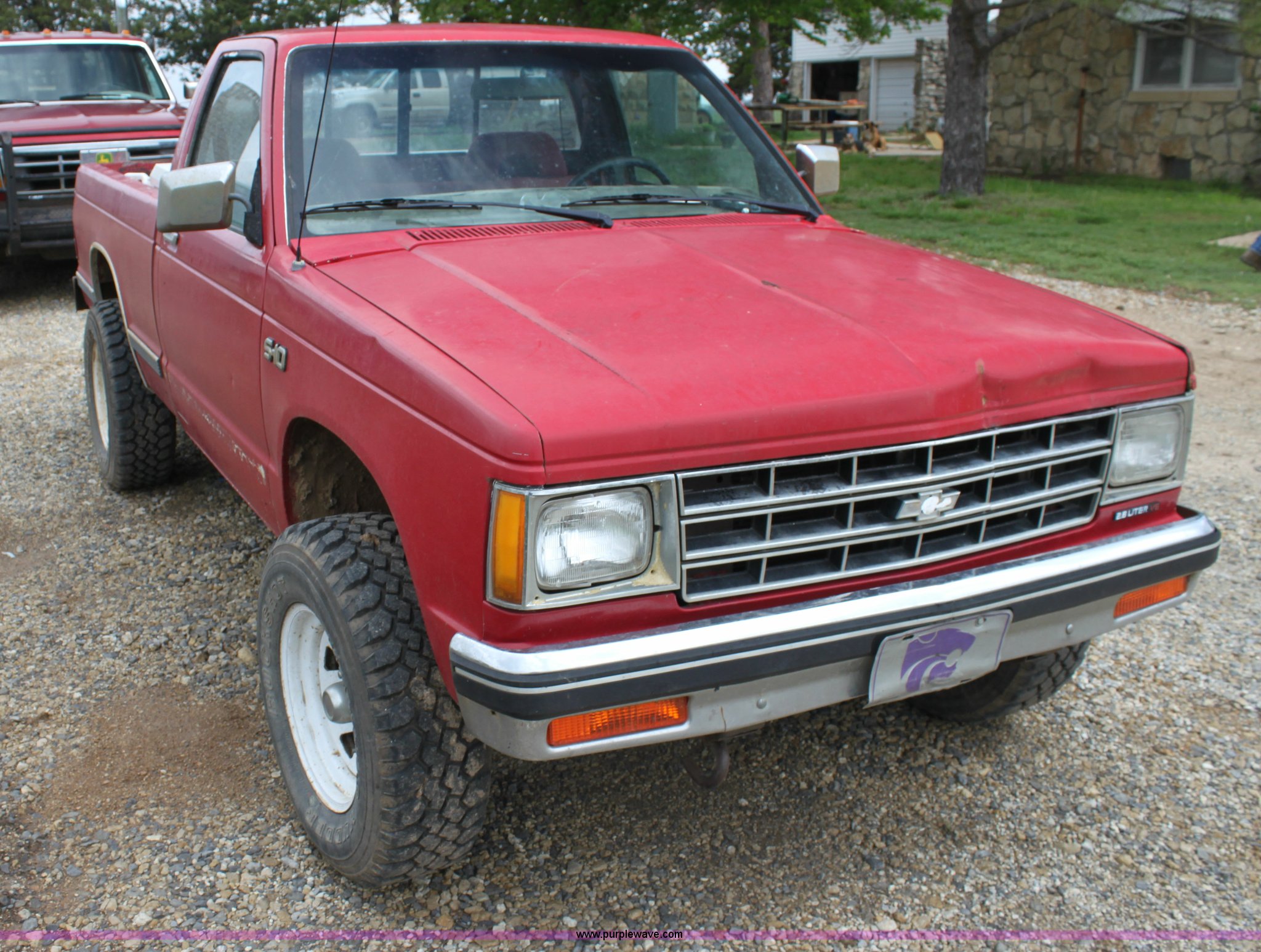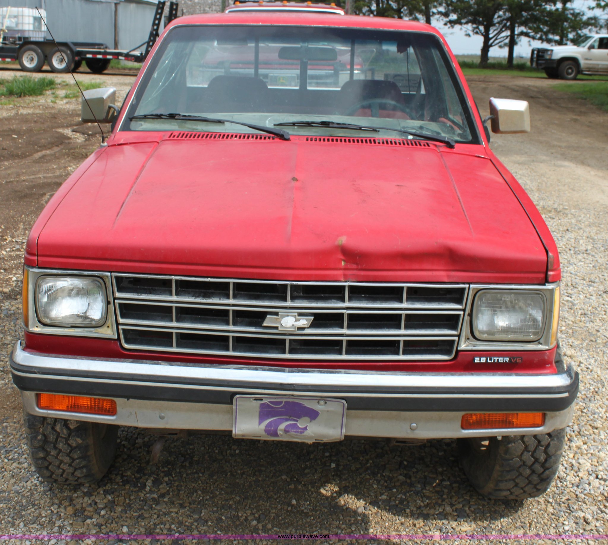Purple Wave is selling a used Passenger Vehicle in Kansas. This item is a 1984 Chevrolet S10 pickup truck with the following: 96,934 miles on odometer, Miles may vary, still in use, 2.8L V6 OHV gas engine, Automatic transmission, Rebuilt within last 5,000 miles, Four wheel drive, Heat, Manual windows and locks, 235/75R16 tires, Recently replaced tie rod ends and drag link, Interior/exterior cosmetic damage, Small oil leak, Four wheel drive linkage needs replaced, Toolbox not included