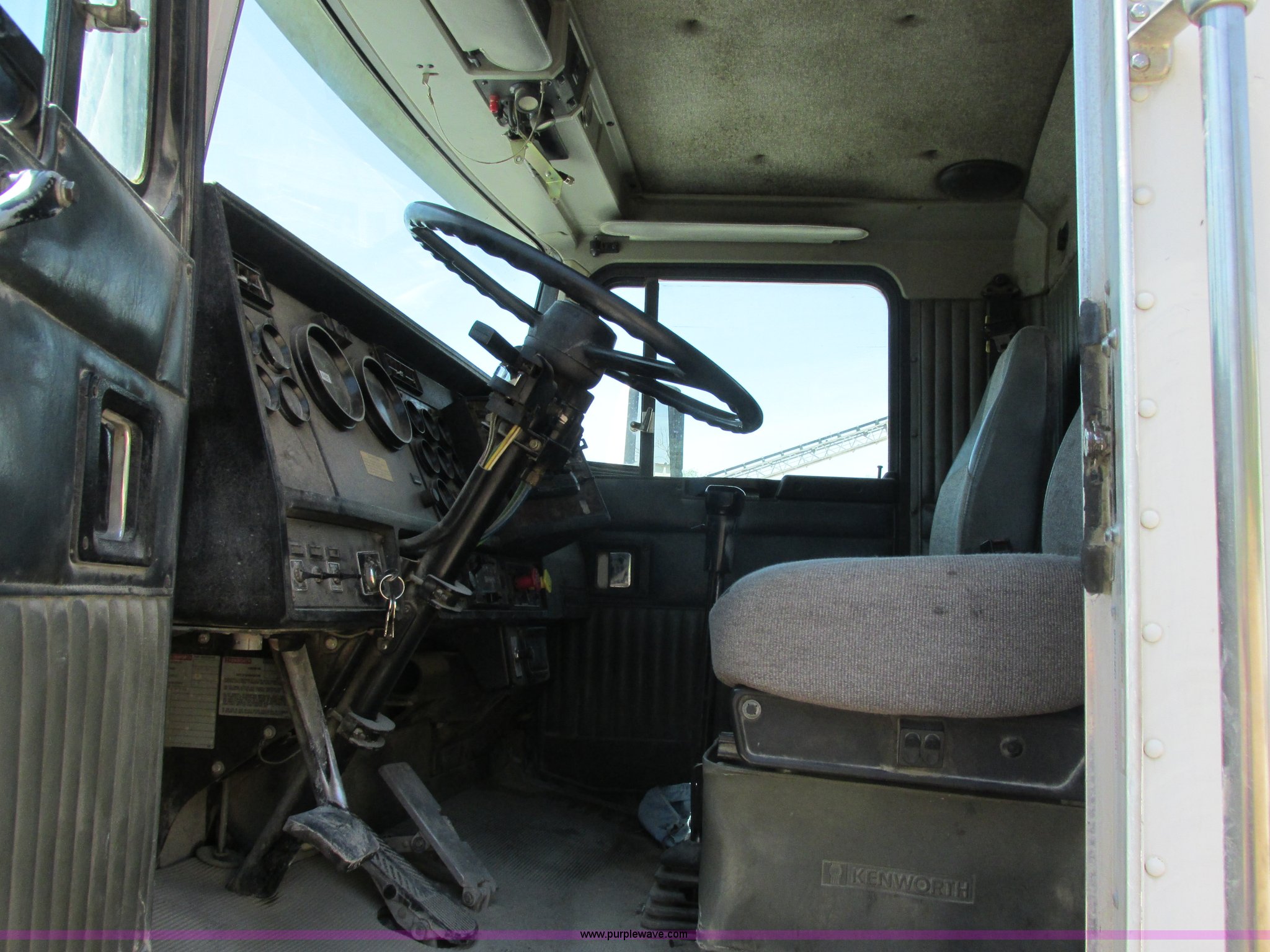 Purple Wave is selling a used Flat Bed Truck in Missouri. This item is a 1997 Kenworth T600 semi truck with the following: 655,842 miles on odometer, Caterpillar C12 12.0L L6 diesel engine, Eaton Fuller 10 speed manual transmission, AC and heat, Cruise, AM/FM/cassette, Power mirrors, Heated mirrors, Air suspension seat, Chelsea PTO, Dump valve, 100 gallon fuel tank, Wet kit, Exterior visor, Hood spot mirrors, Rear work lights, Aluminum deck plate, Fifth wheel plate, Single rear exhaust stack, (8) bag air suspension, 11R22.5 tires, Minor leaks, Last oil samples under company standard, Exterior cosmetic damage