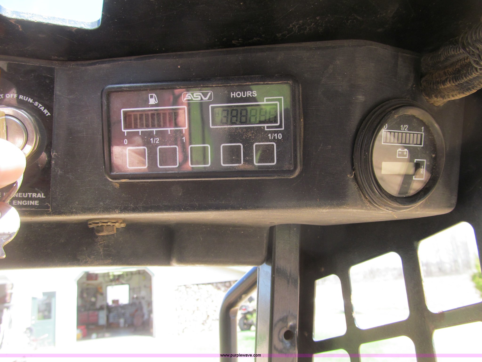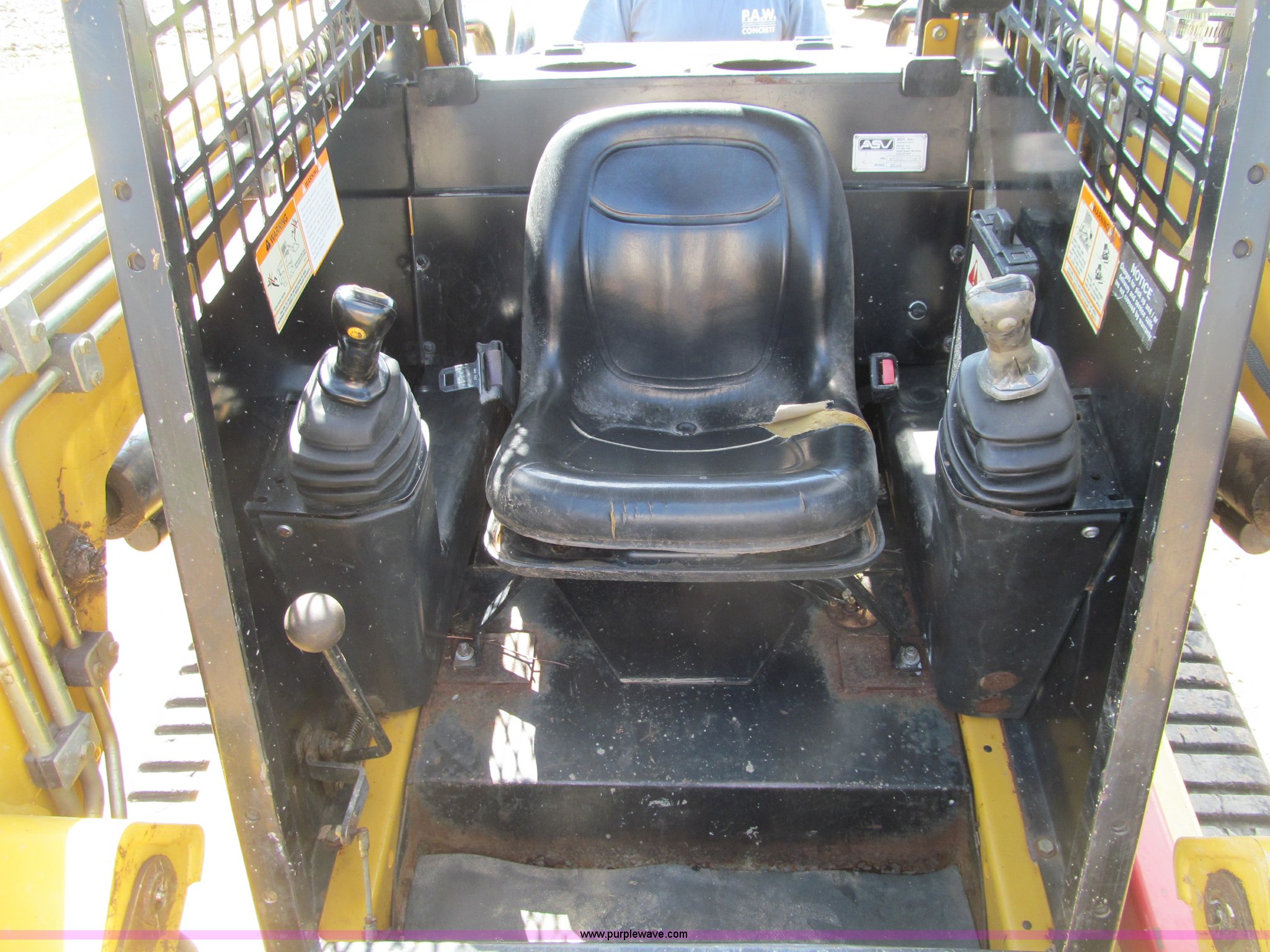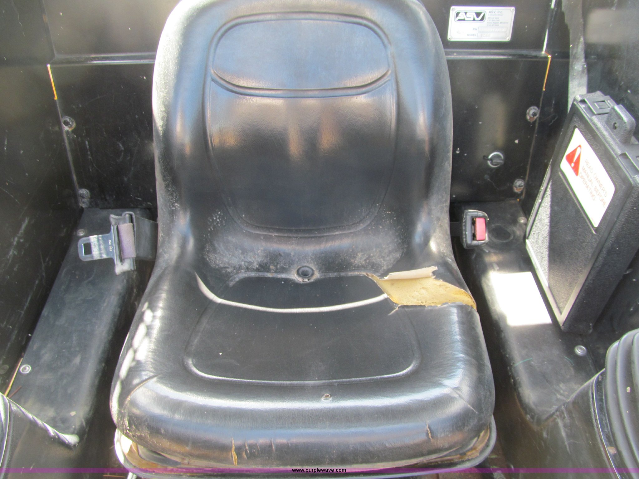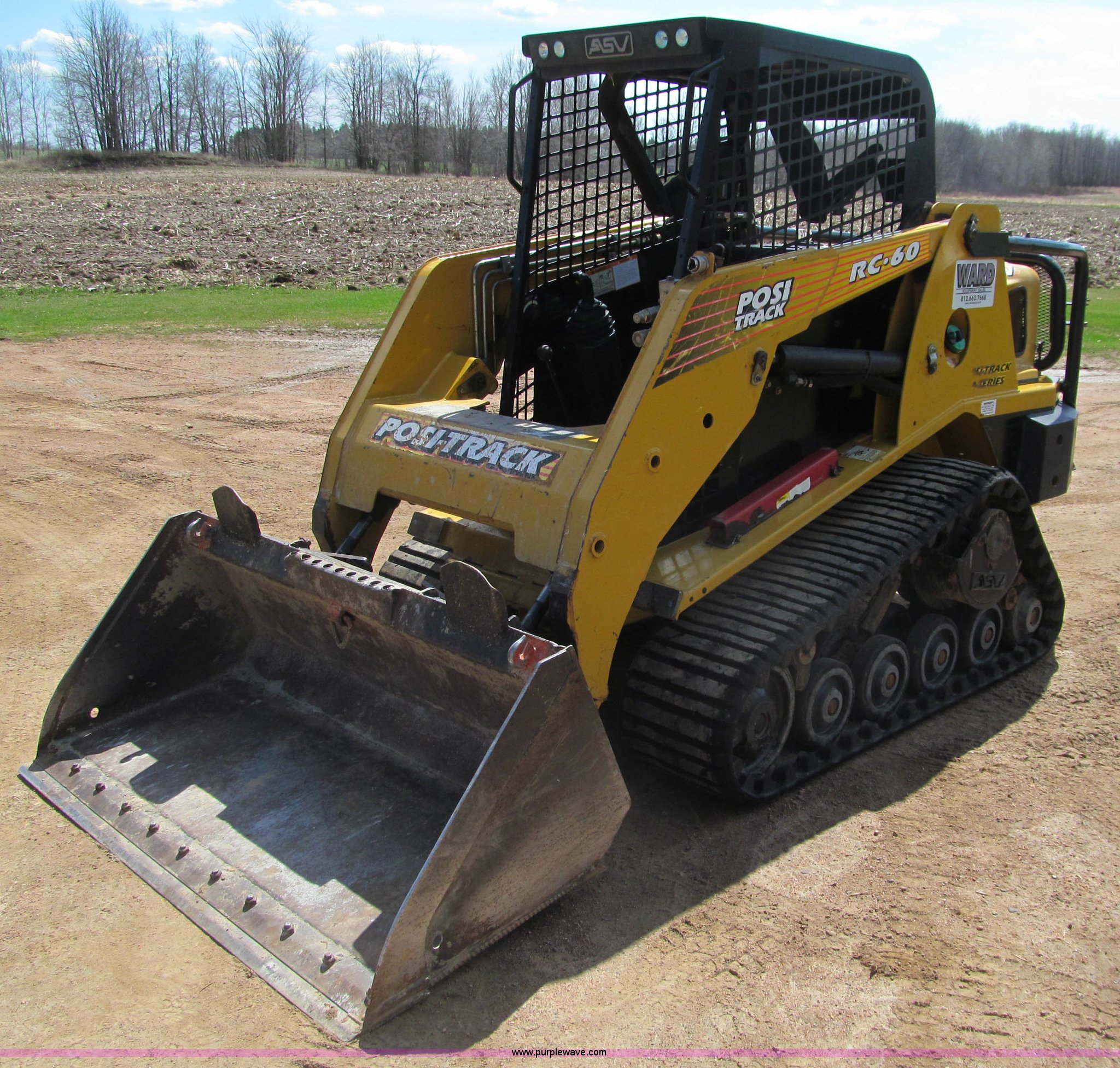 Purple Wave is selling a used Tracked Skid Steer Loader in Wisconsin. This item is a 2006 ASV RC-60 skid steer with the following: 281 hours on meter, Hour meter replaced at approximately 993 hours, Perkins four cylinder diesel engine, 60 HP, Front and rear work lights, Hand controls, Hand and foot throttle, Manual quick attach, Rear brush guard, Electric hook up, Auxiliary hydraulics, Self-leveling bucket control, 63"W bucket, Bolt-on cutting edge, Rear cutting edge, 15"W rubber tracks, Serial RSE01771