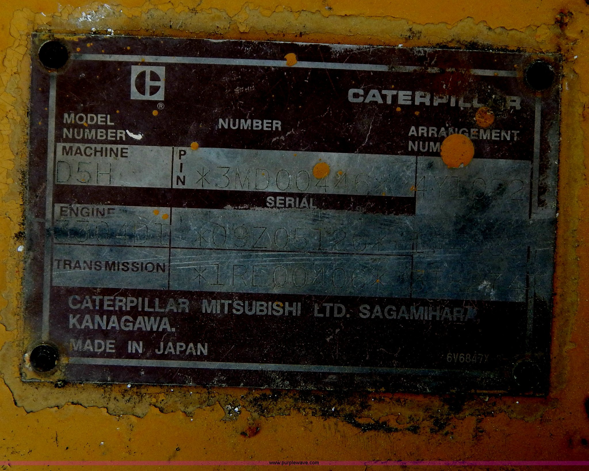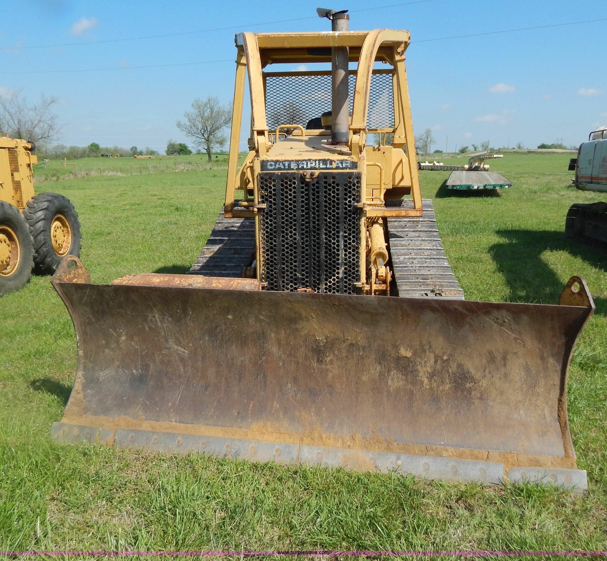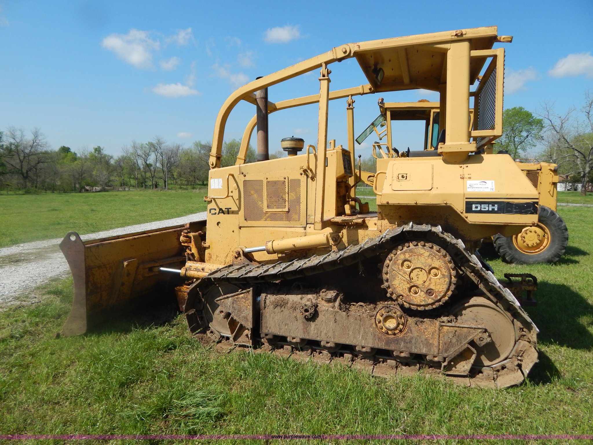Purple Wave is selling a used Crawler Dozer in Oklahoma. This item is a 1986 Caterpillar D5H dozer with the following: 2,022 hours on meter, Caterpillar 3304 DI diesel engine, Serial 09205126, Powershift transmission, 3F-3R gears, Serial 1RE00406, OROPS with sweeps, Joystic blade control, 10.5'W six way blade, Smooth bolt on cutting edge, 20"W track pads, (6) bottom rollers, Rear pin hitch, 26,641 lbs. base operating weight, Serial 3MD00446