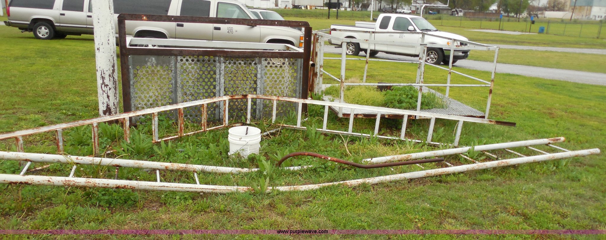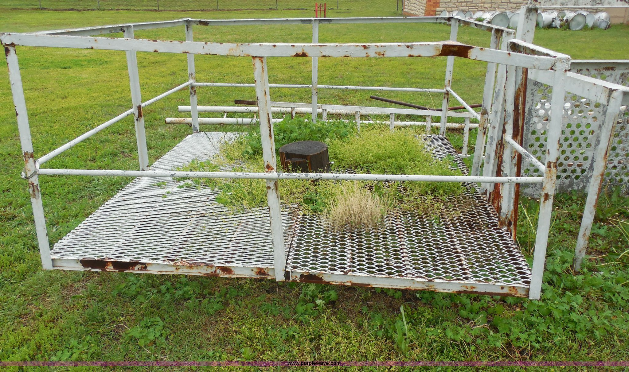 Purple Wave is selling a used Sporting Goods in Kansas. This item is a Dis-assembled metal crows nest with the following: 83" x 76" x 36" platform, 350" ladder