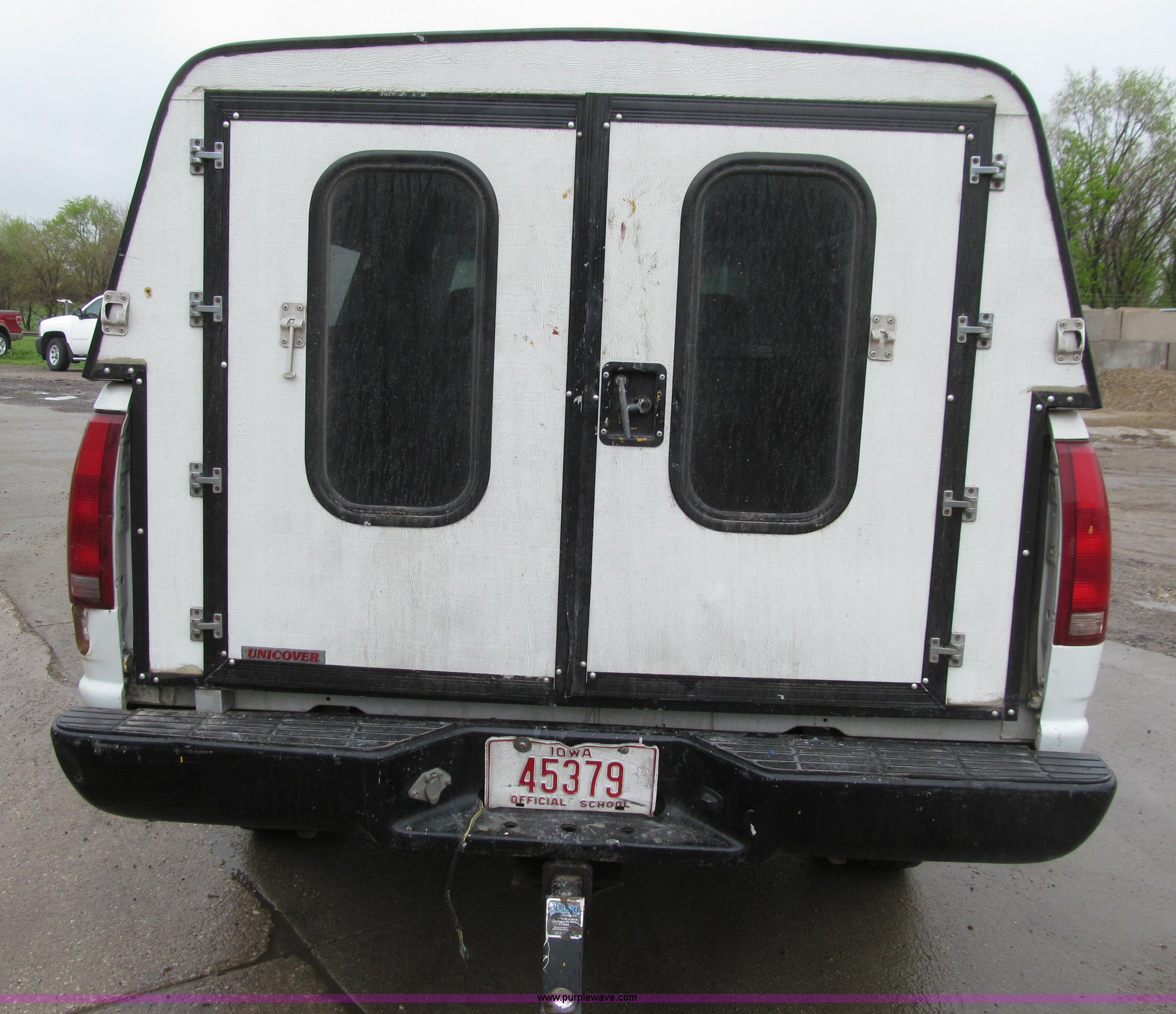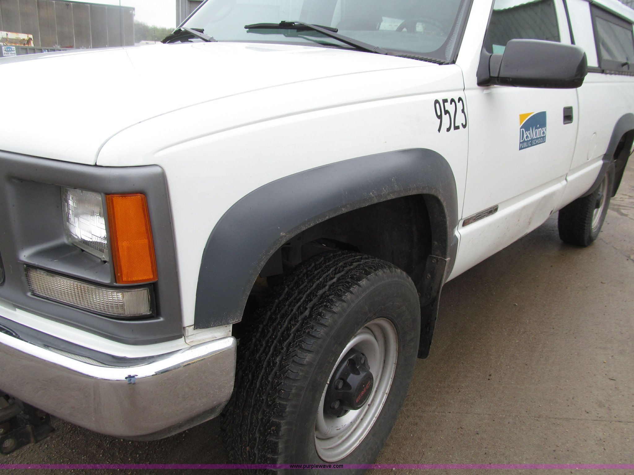 1995 GMC 2500 SL pickup truck. 92,958 miles on odometer, 5.7L V8 gas engine, Automatic transmission, Four wheel drive, Heat, Tilt, Cruise, AM/FM, Manual windows and locks, Vinyl interior, UniCover aluminum topper, Long bed, Receiver hitch, Trailer wiring, LT245/75R16 tires, Interior/exterior cosmetic damage, Front and rear bumper dented, Driver's door dented, Passenger door gouged, Front fender rust, Brake issues, Unit# 9523. Seller is a government entity who will be assigning and distributing the title. Please contact the seller for distribution questions. 1GTGK24K9SZ551588. Shipping quotes available. Des Moines Public Schools. 1917 Dean Avenue. Des Moines, IA 50316