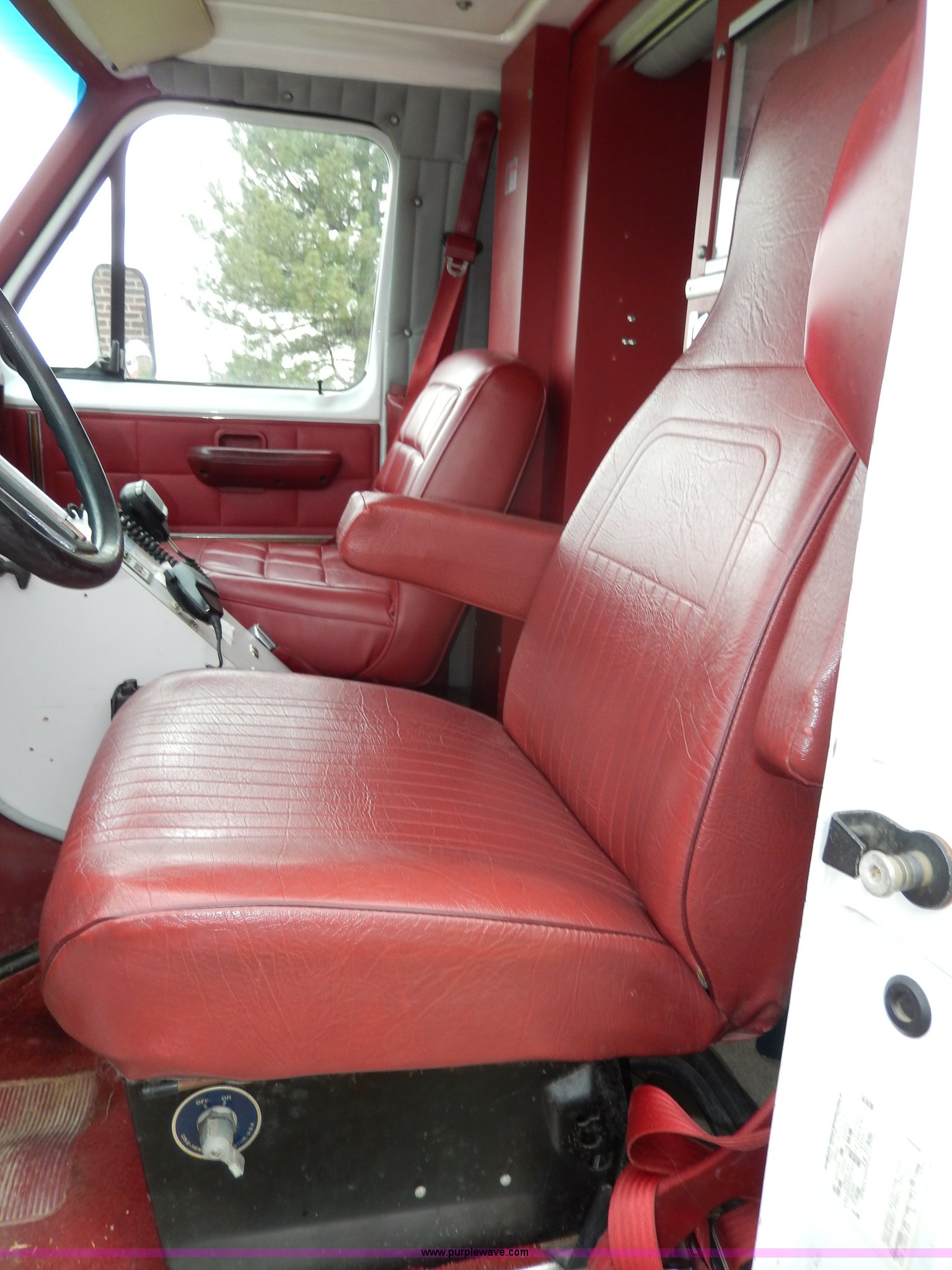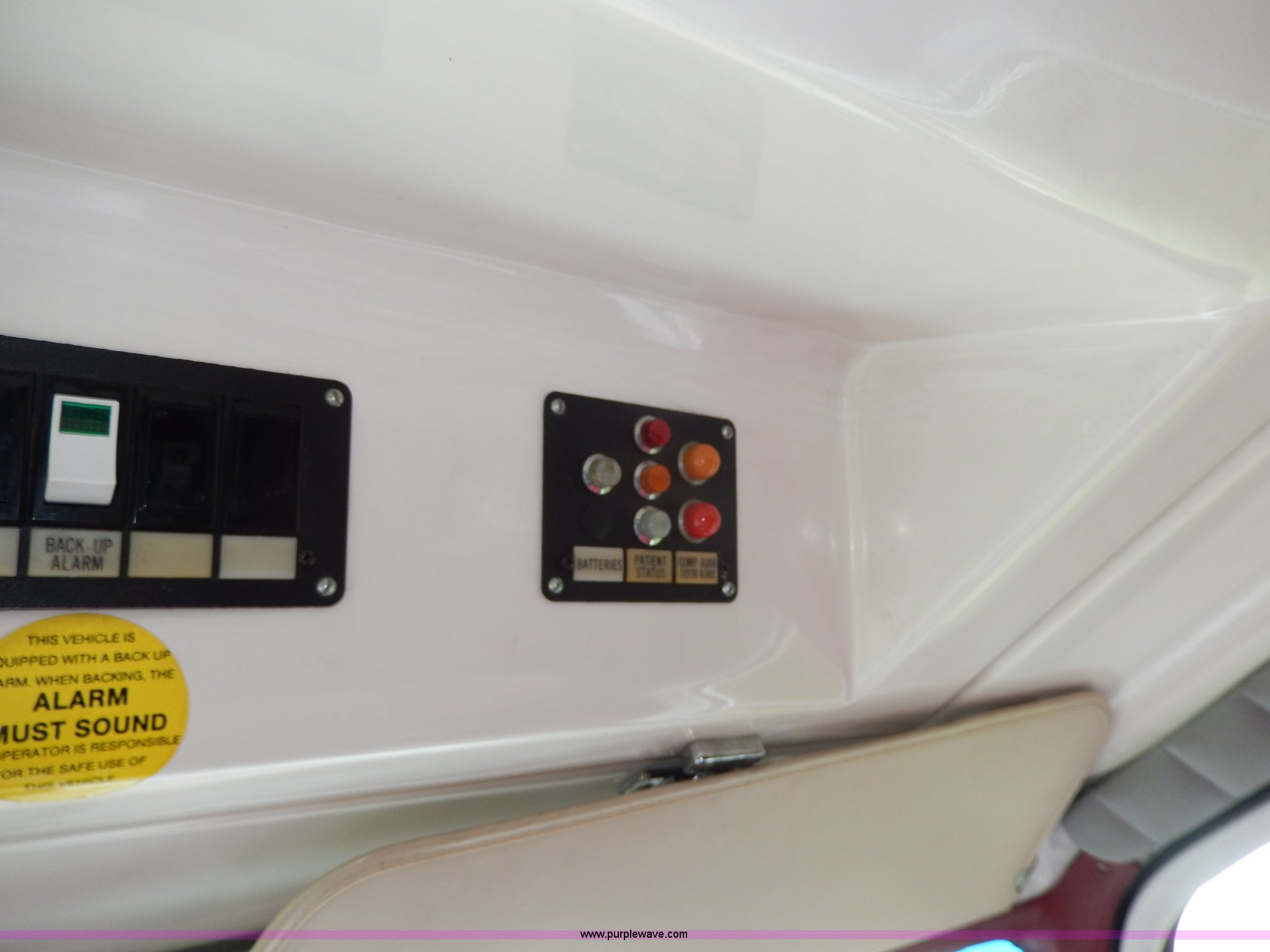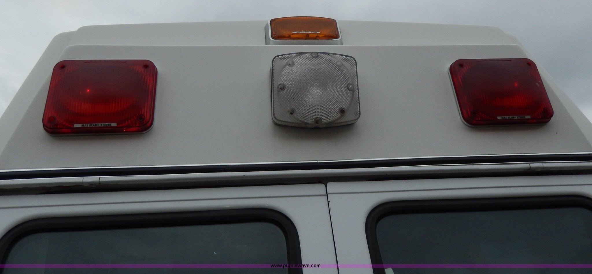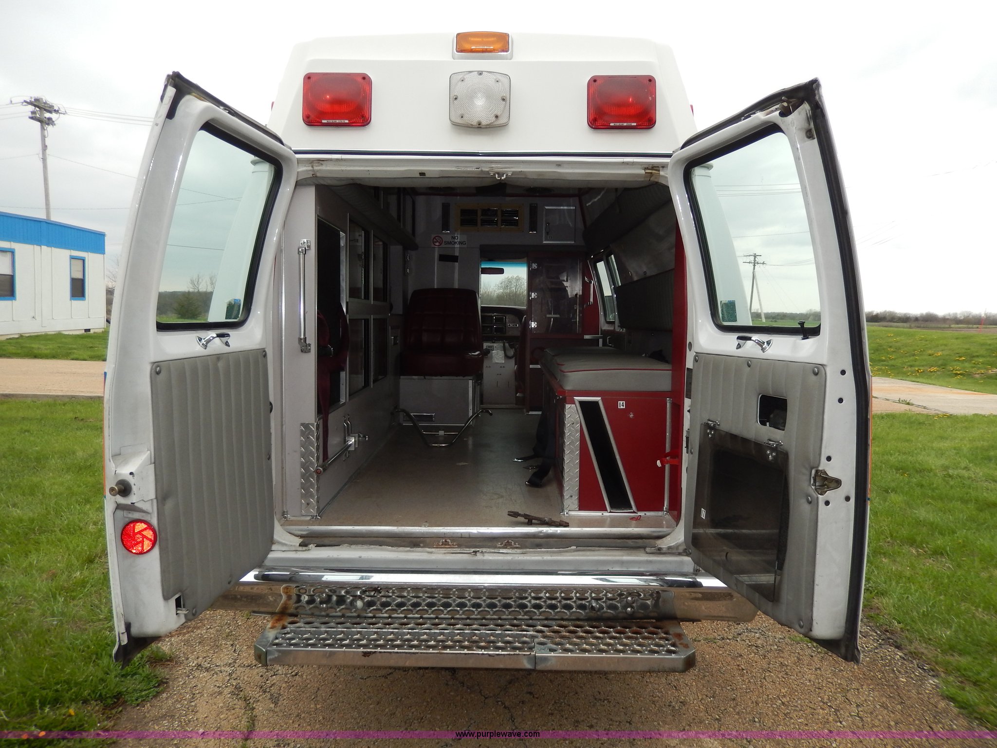 Purple Wave is selling a used Passenger Vehicle in Kansas. This item is a 1989 Ford E350 Econoline XLT ambulance with the following: 27,399 miles on odometer, 7.3L V8 OHV 16V diesel engine, Automatic transmission, AC and heat, Cruise, Inoperable, Manual windows and locks, Vinyl seats, Light/siren control, Power inverter, Interior and exterior power points, Rear vinyl bench, Underside storage, Storage cabinets, Dual temperature controls, Exterior light bar, Vacuum and oxygen hookups, Dual fuel tanks, Block heater, 245/75R16 tires, Interior/exterior cosmetic damage, Weak battery, Left front brake caliper stuck, Vehicle must be towed