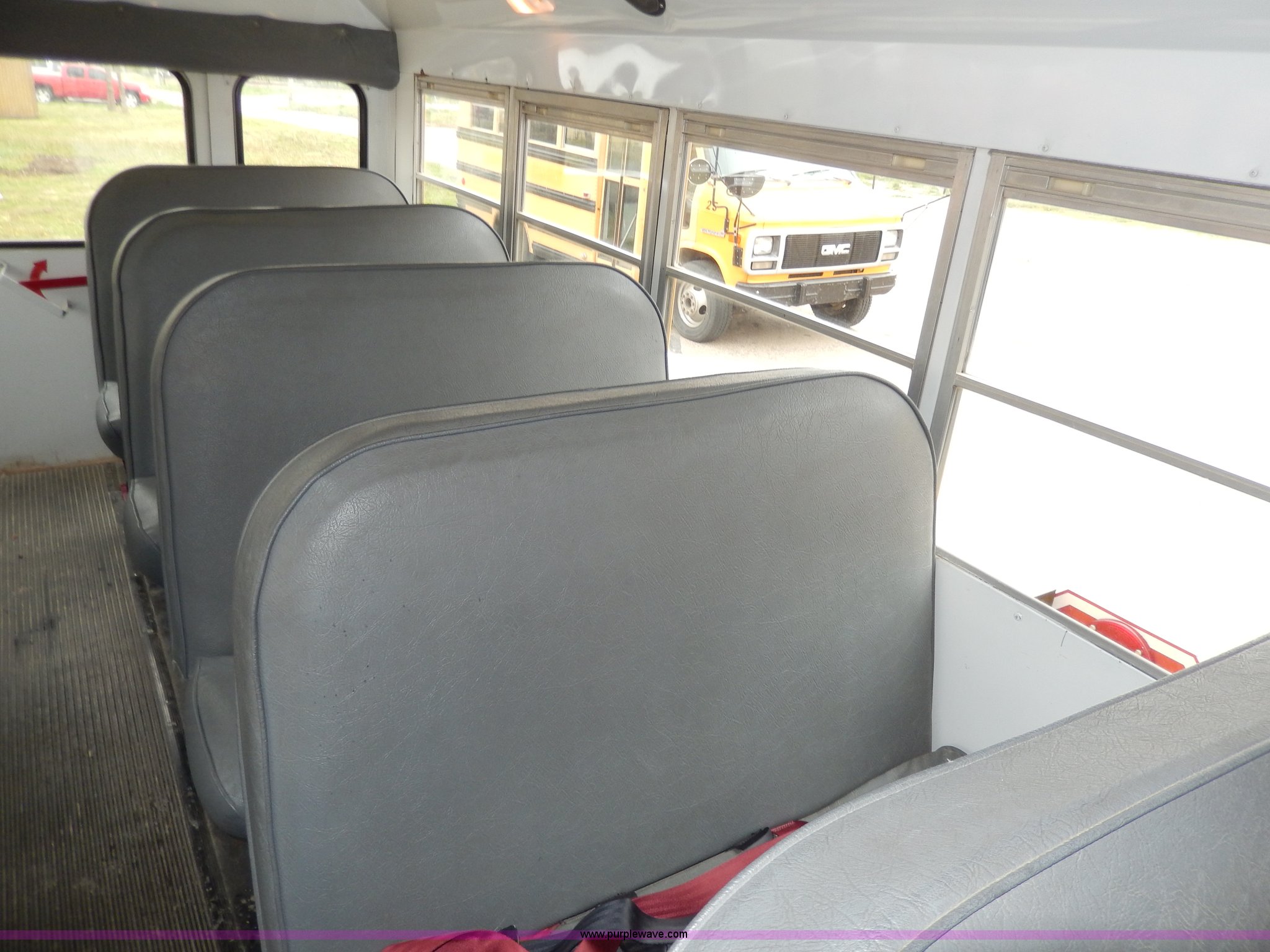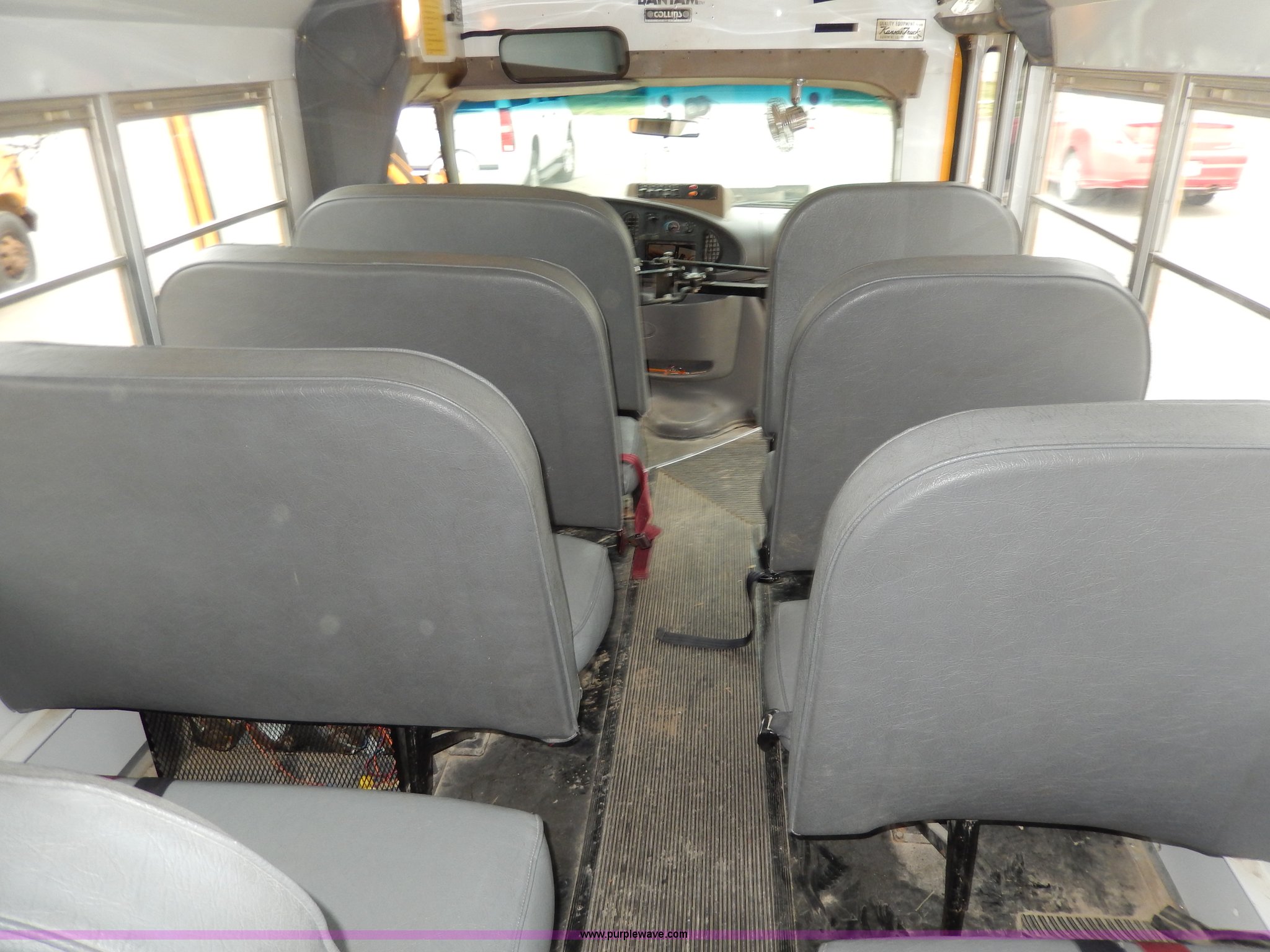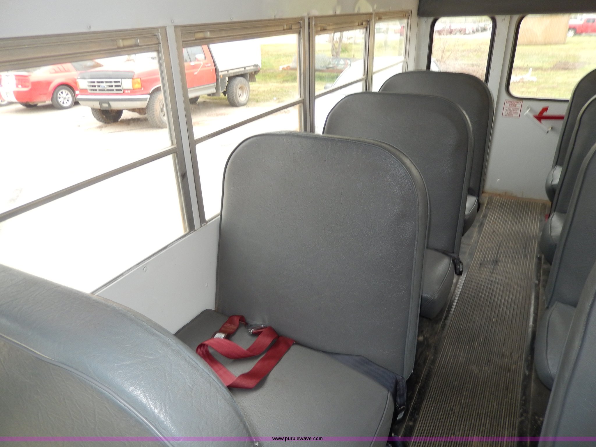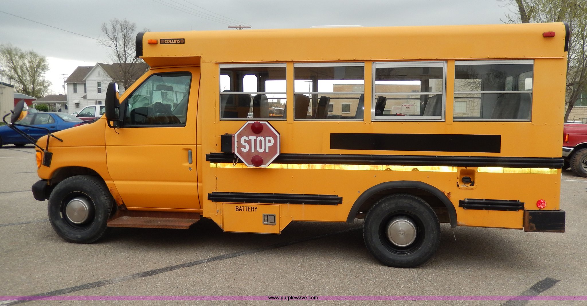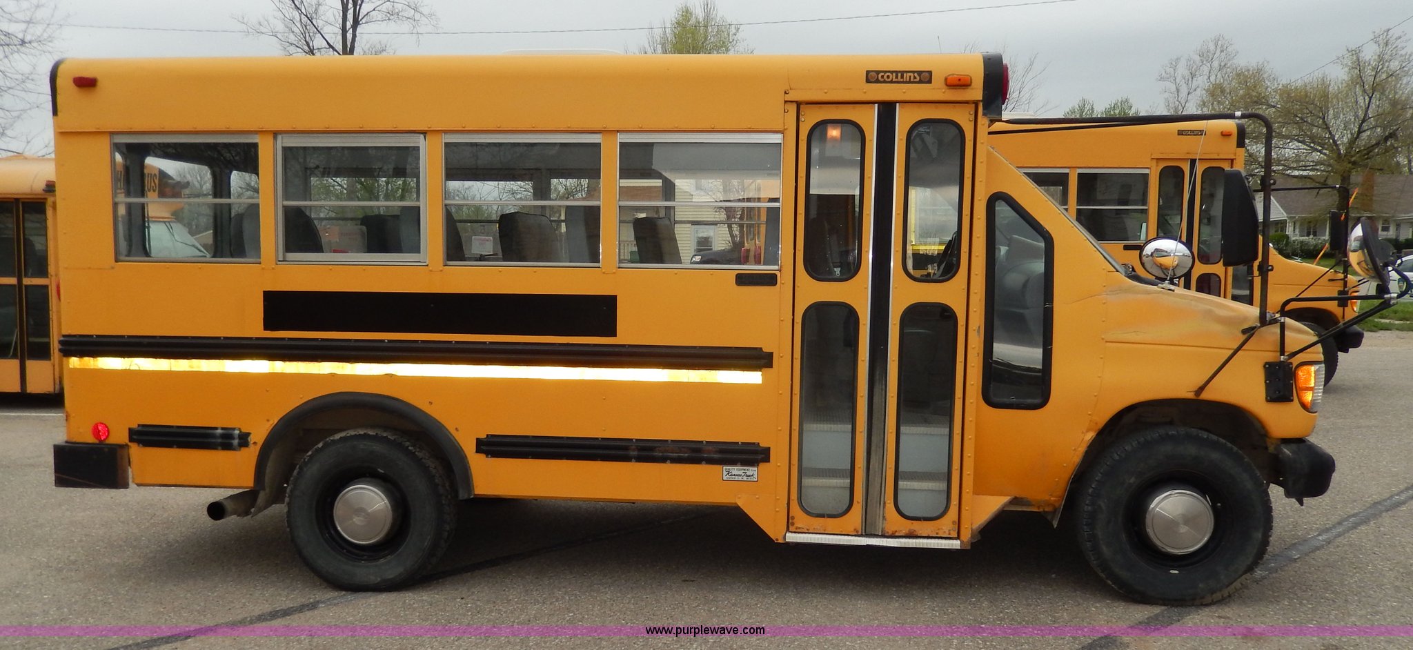 Purple Wave is selling a used Bus in Kansas. This item is a 1997 Ford Collins school bus with the following: 166,002 miles on odometer, 18 passenger, 7.3L V8 diesel engine, Automatic transmission, Heat, Manual windows and locks, Vinyl seats, Heated mirrors, Seat belts, Block heater, 245/75R16 tires, GVWR 9,600 lbs, Exterior cosmetic damage, Dents and scratches, Body rust, Stereo missing, Unit# 27