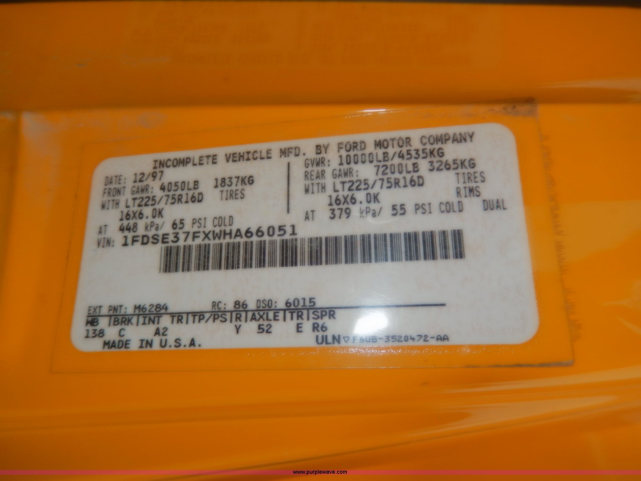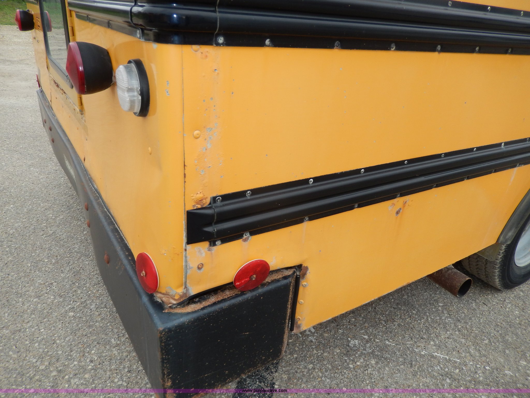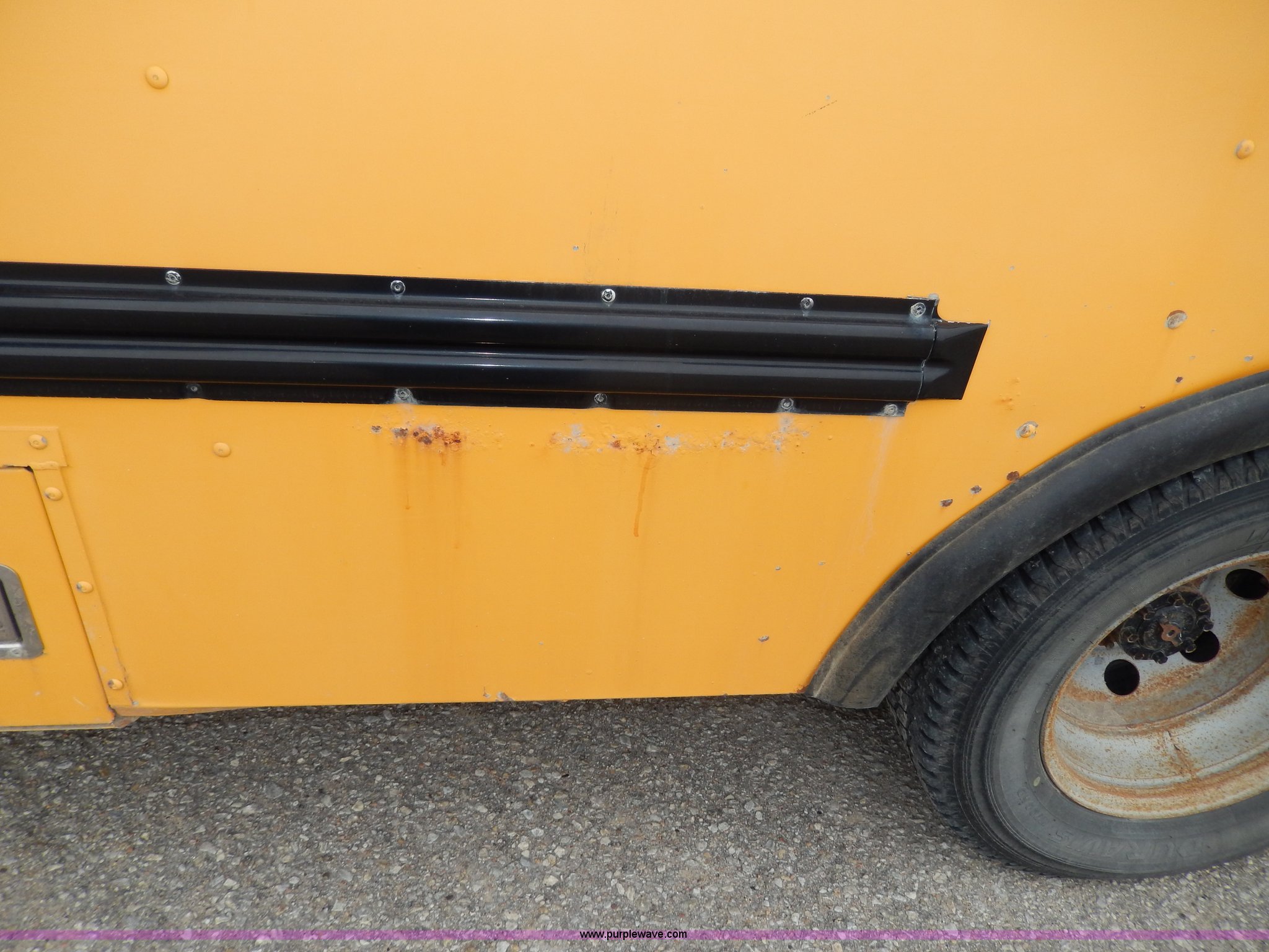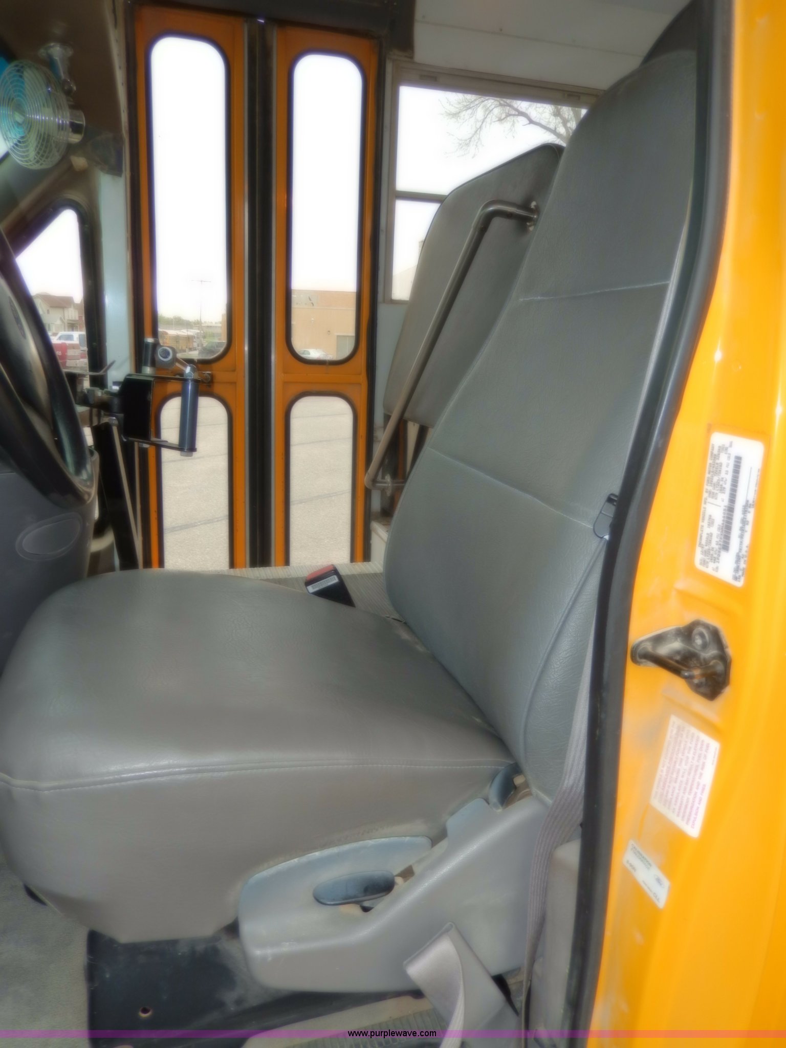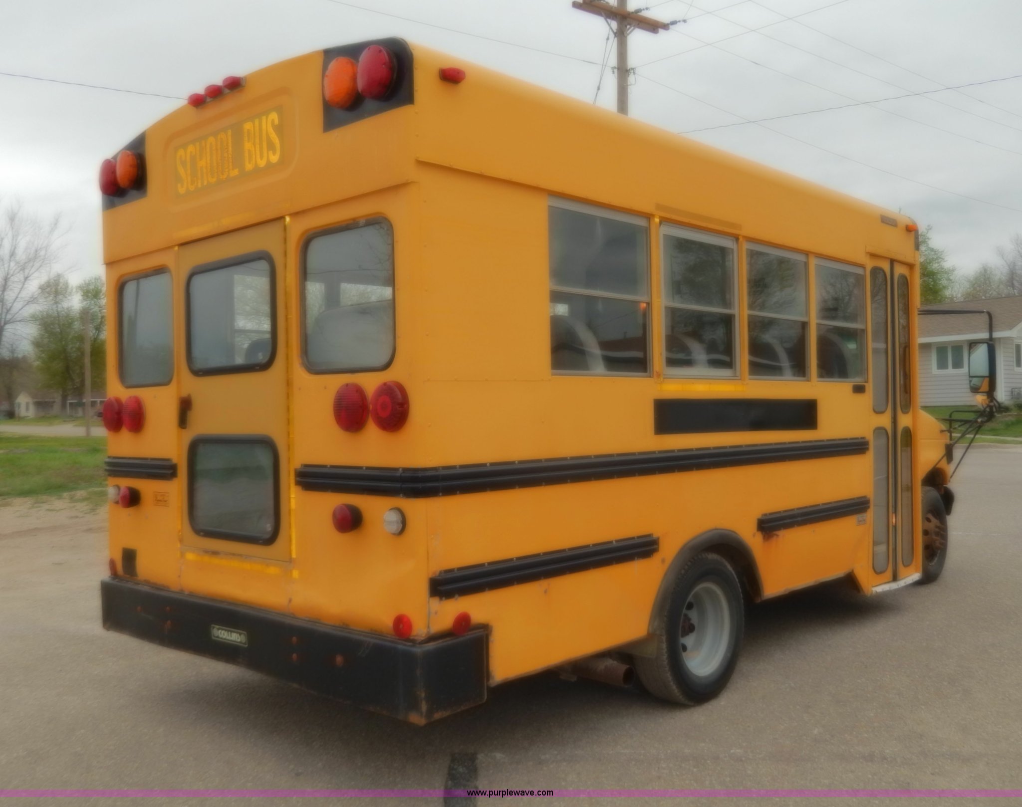 Purple Wave is selling a used Bus in Kansas. This item is a 1998 Ford Collins school bus with the following: 160,880 miles on odometer, 23 passenger, 7.3L V8 OHV 16V turbo diesel engine, Automatic transmission, Heat, AM/FM, Manual windows and locks, Vinyl seats, Block heater, Seat belts, Heated mirrors, 225/75R16 tires, GVWR 11,500 lbs, Exterior cosmetic damage, Body rust, Dents and scratches, Needs front end work, Unit# 37