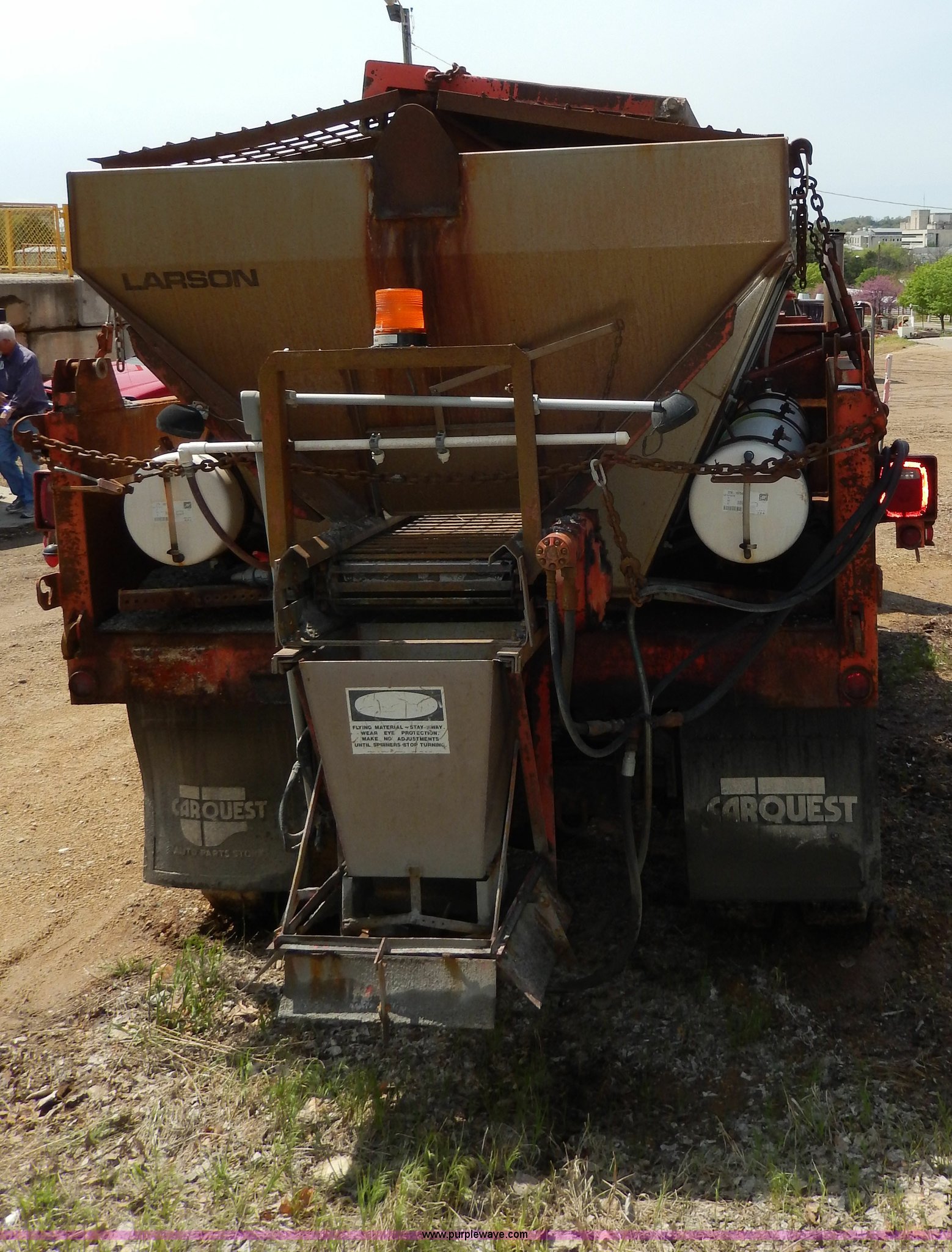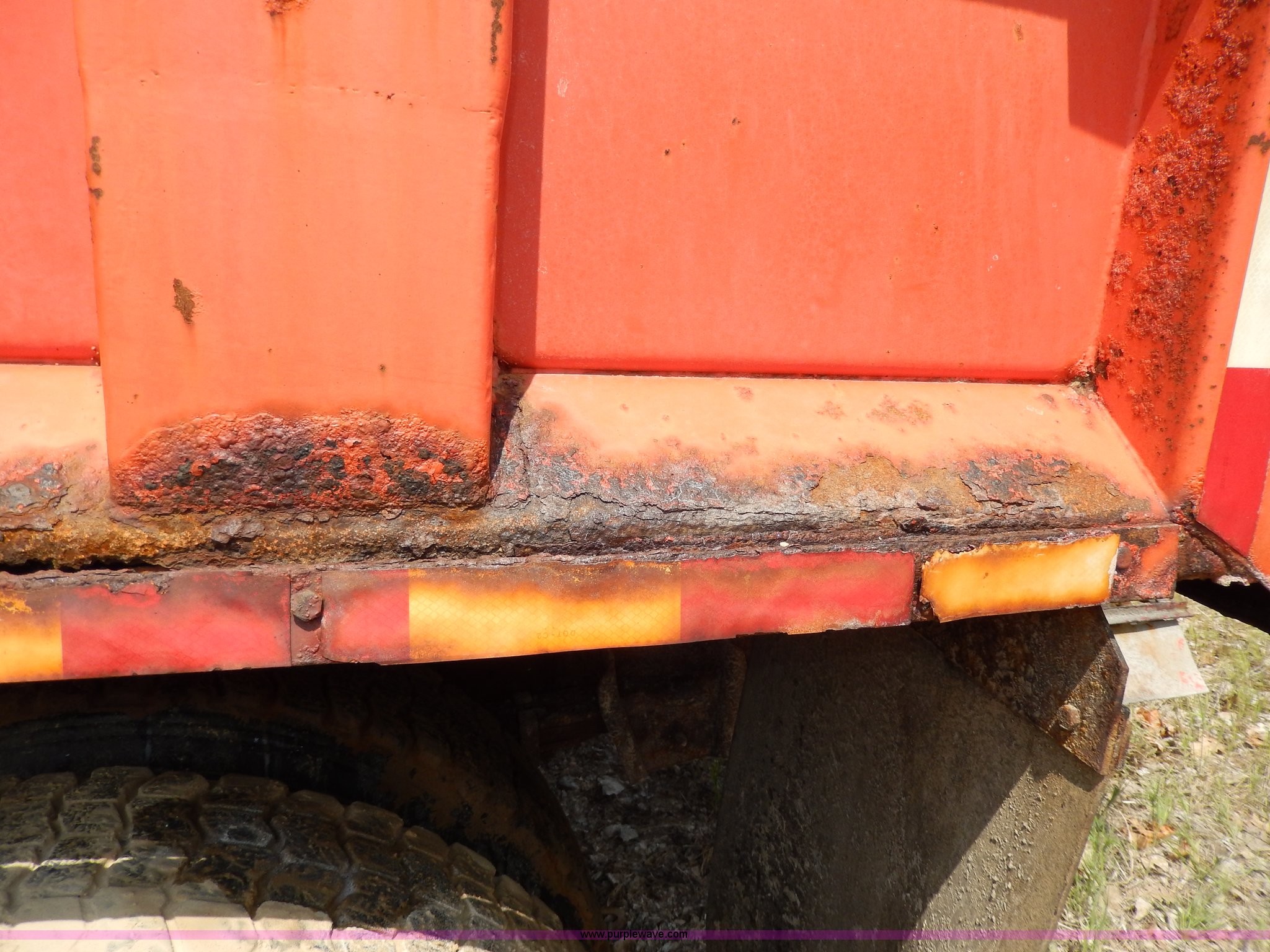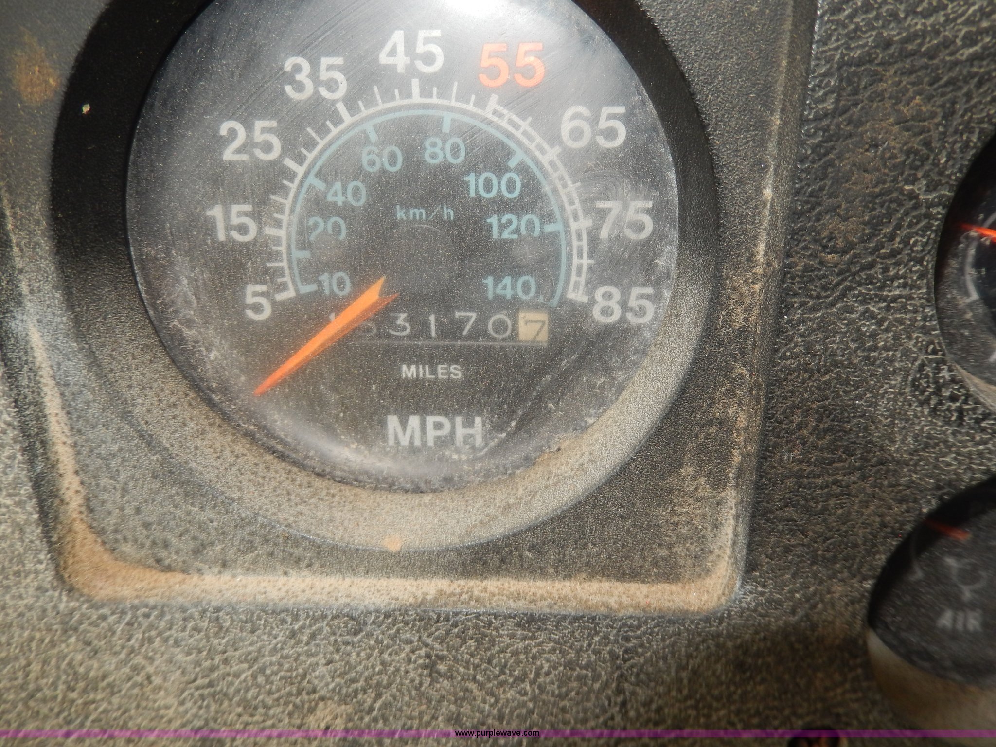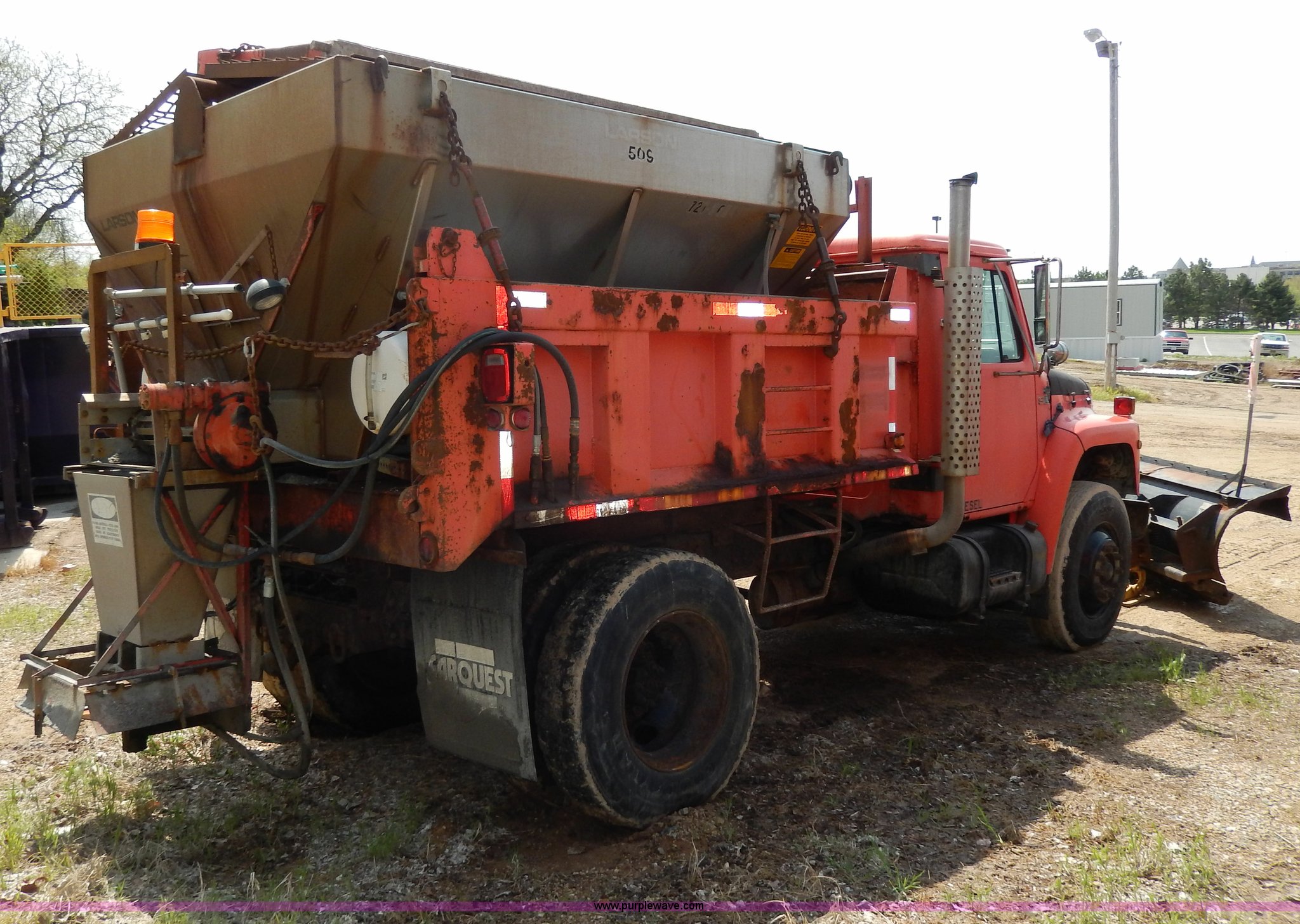 Purple Wave is selling a used Construction Dump Truck in Kansas. This item is a 1984 International 1754 dump truck with the following: 153,171 miles on odometer, 1,225 hours on meter, Diesel engine, Automatic transmission, Heat, Spreader and plow controls, Vinyl seat, Smith 9' x 8' bed, Baker 459CS plow, 11'W, Larson 509 spreader, 9' x 8', 50 gallon fuel tank, Air brakes, Air brake hookups, 11R22.5 tires, GVWR 30,000 lbs, Cracked windshield, Stereo missing, Body rust