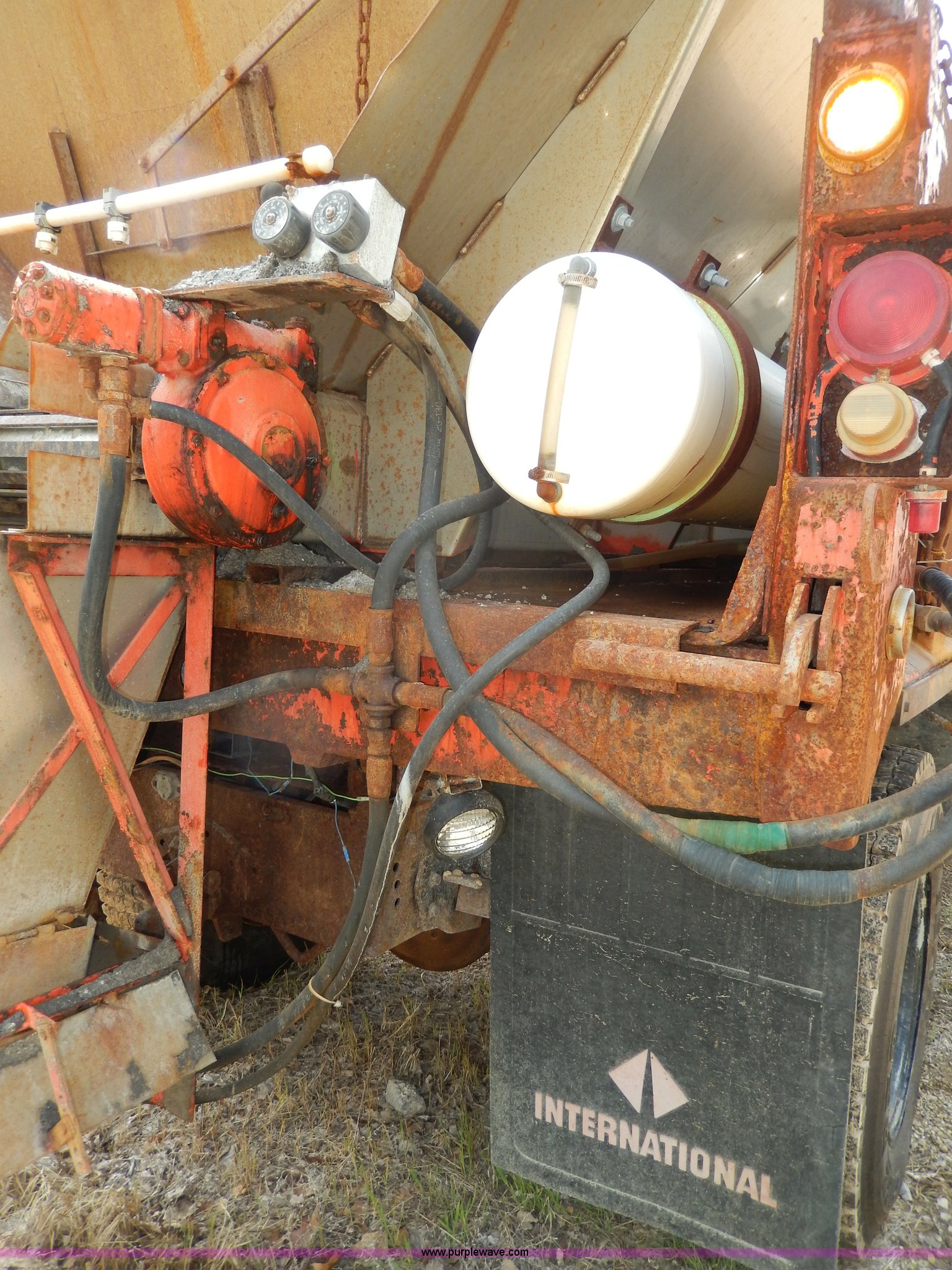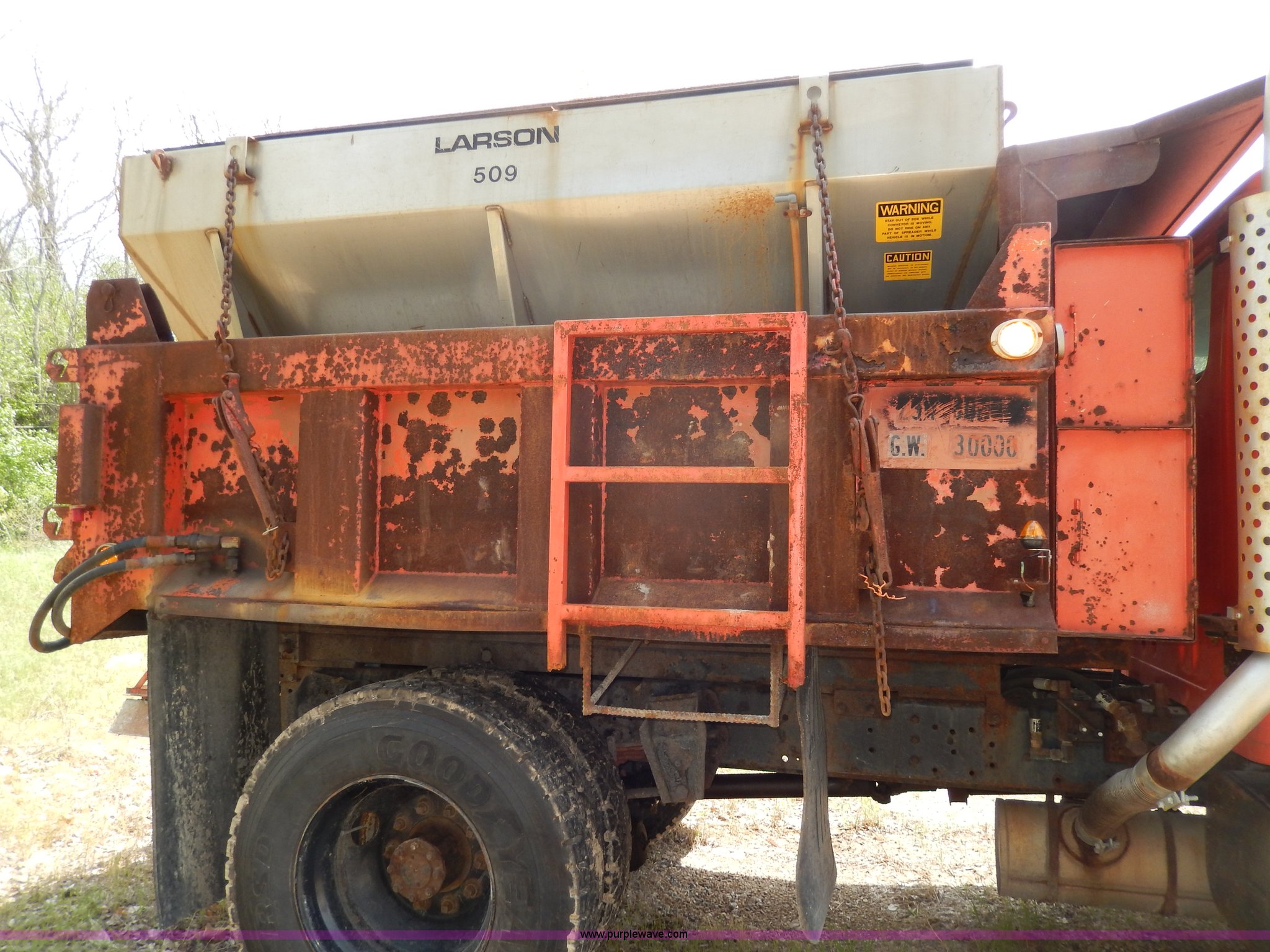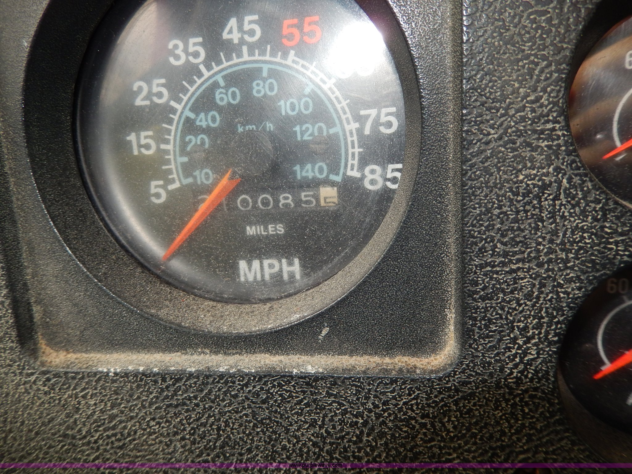 Purple Wave is selling a used Construction Dump Truck in Kansas. This item is a 1985 International 1754 dump truck with the following: 210,085 miles on odometer, 1,499 hours on meter, International DV550 9.0L V8 diesel engine, Automatic transmission, Heat, Spreader and plow controls, Vinyl seats, Smith 9' x 8' bed, Baker 459CS plow, 11'W, Larson 509 spreader, 9' x 8', Block heater, Pintle hitch, 50 gallon fuel tank, 11R22.5 tires, GVWR 30,000 lbs, Body rust