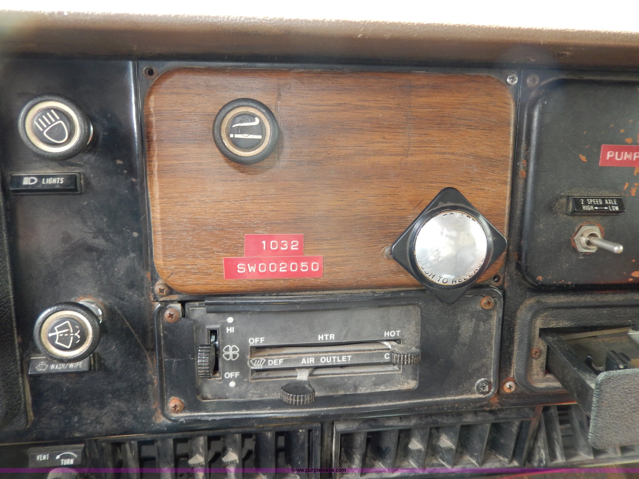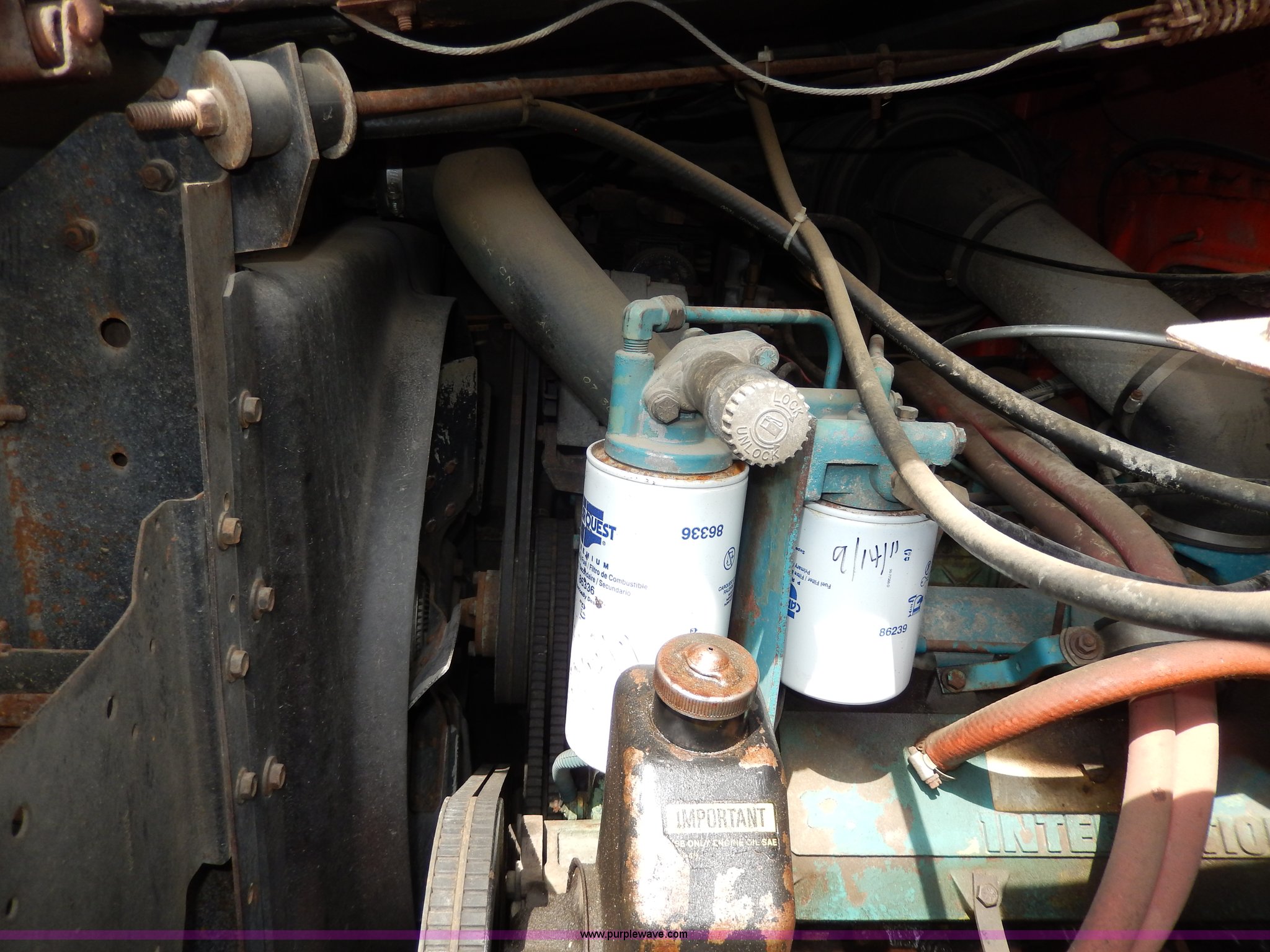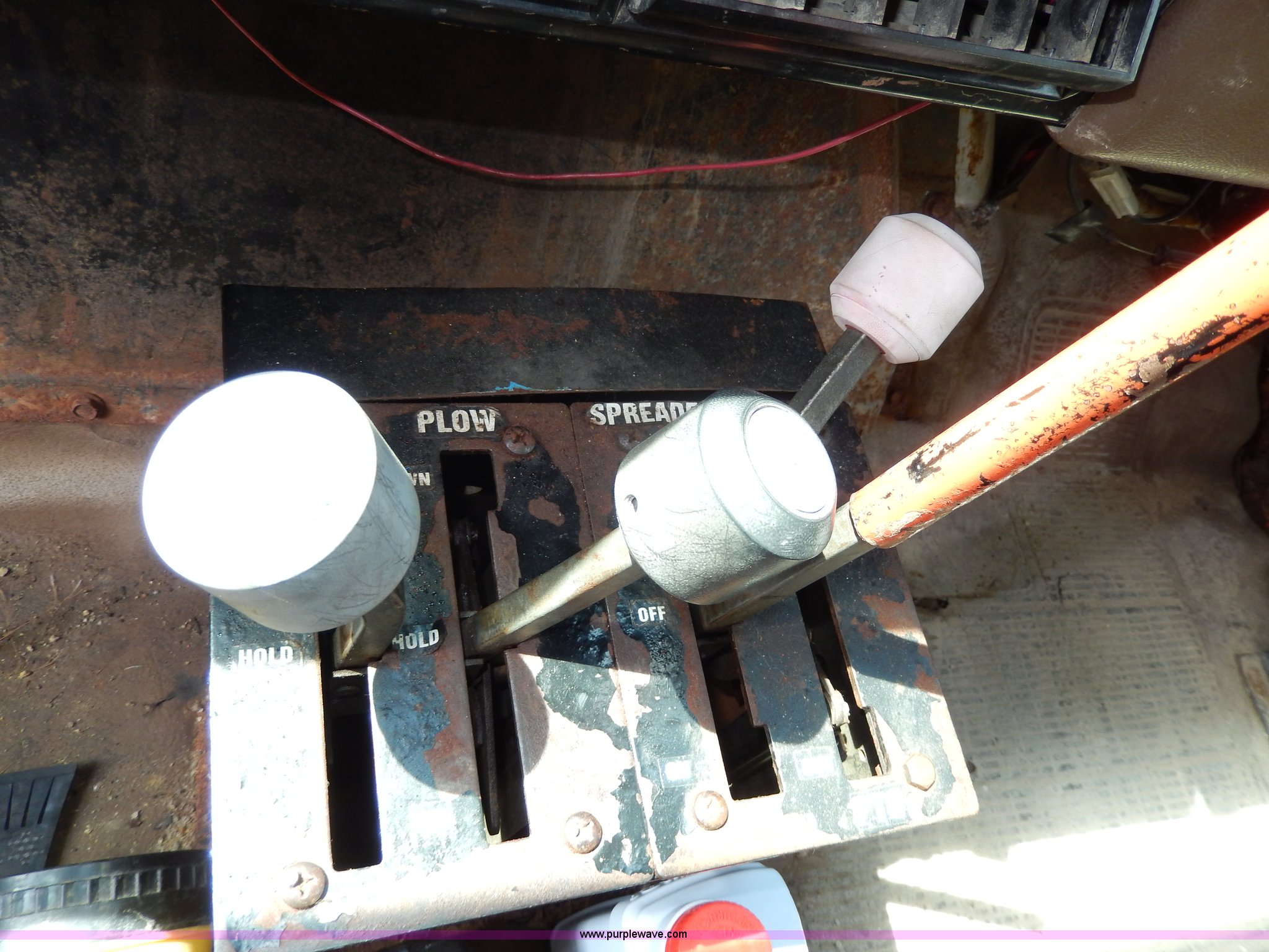 Purple Wave is selling a used Construction Dump Truck in Kansas. This item is a 1985 International 1754 dump truck with the following: 210,085 miles on odometer, 1,499 hours on meter, International DV550 9.0L V8 diesel engine, Automatic transmission, Heat, Spreader and plow controls, Vinyl seats, Smith 9' x 8' bed, Baker 459CS plow, 11'W, Larson 509 spreader, 9' x 8', Block heater, Pintle hitch, 50 gallon fuel tank, 11R22.5 tires, GVWR 30,000 lbs, Body rust