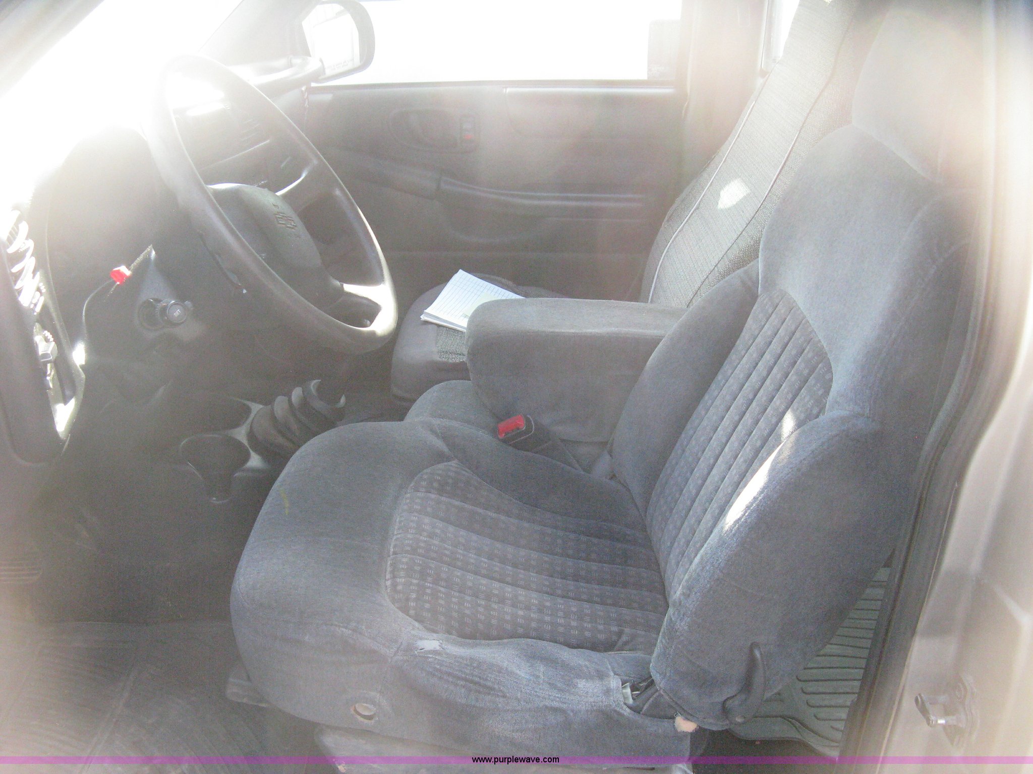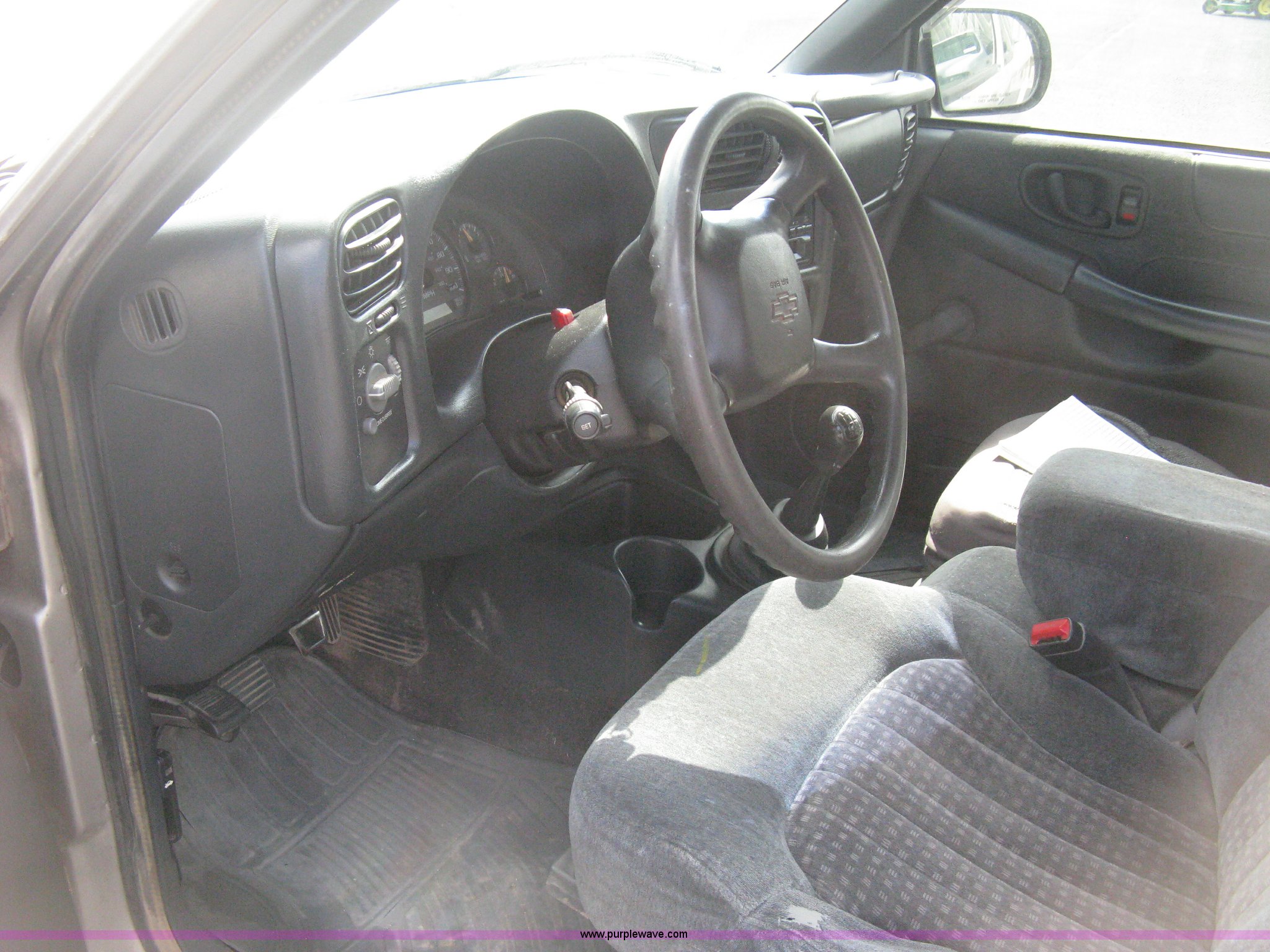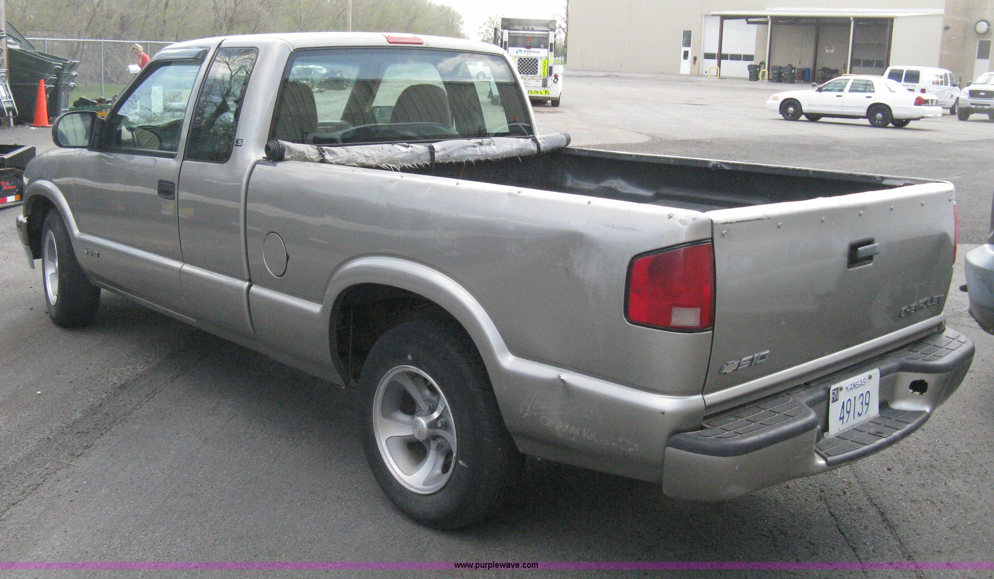Purple Wave is selling a used Passenger Vehicle in Kansas. This item is a 1999 Chevrolet S10 Extended Cab pickup truck with the following: 75,502 miles on odometer, 2.2L L4 OHV 8V gas engine, Five speed manual transmission, AC and heat, Tilt, Cruise, AM/FM/cassette, Manual windows and locks, Cloth interior, Spray-in bed liner, Rollover canvas bed cover, P205/75R15 tires, Exterior body damage, Rust, Unit# 139