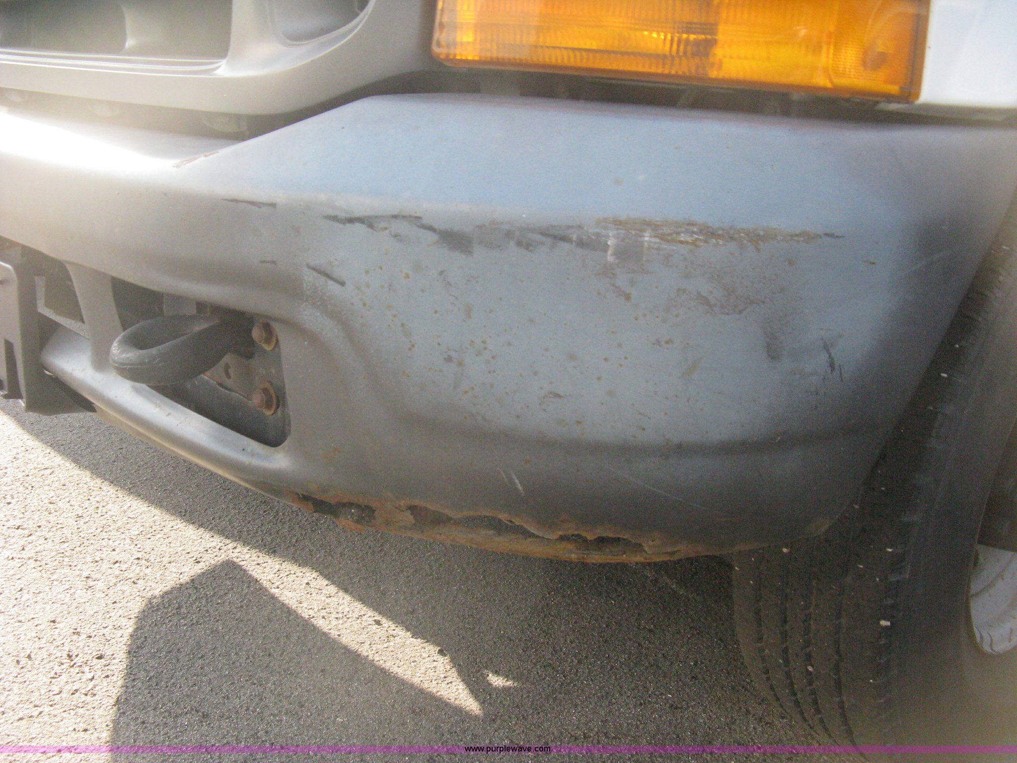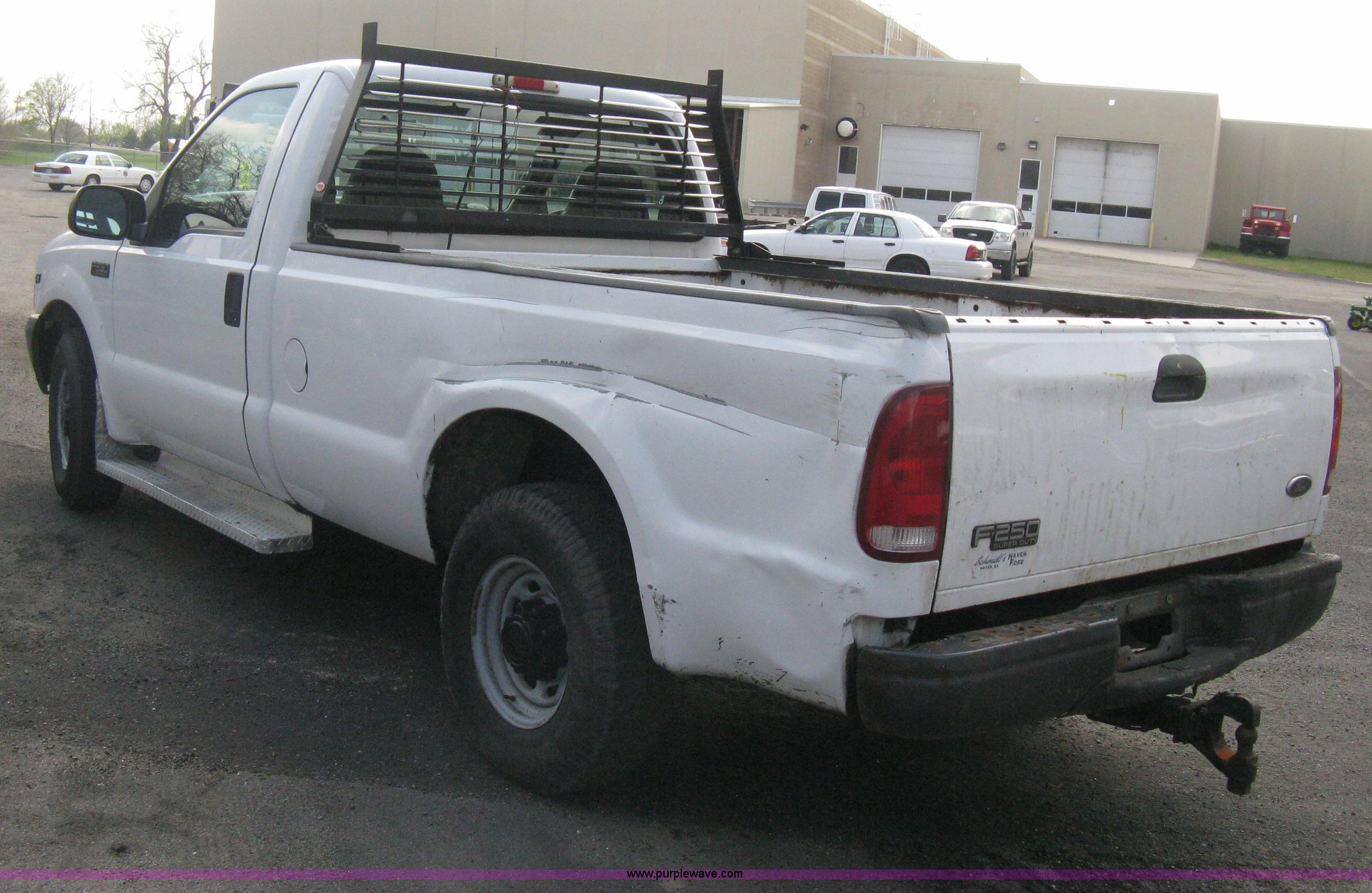 Purple Wave is selling a used Passenger Vehicle in Kansas. This item is a 2000 Ford F250 XLT Super Duty pickup truck with the following: 131,448 miles on odometer, 5.4L V8 SOHC 16V gas engine, Automatic transmission, AC and heat, AM/FM, Manual windows and locks, Vinyl interior, Trailer brake controller, RKI headache rack, Long bed, Pintle stinger, Trailer wiring, LT235/85R16 tires, Body damage, Rust, Unit# 3