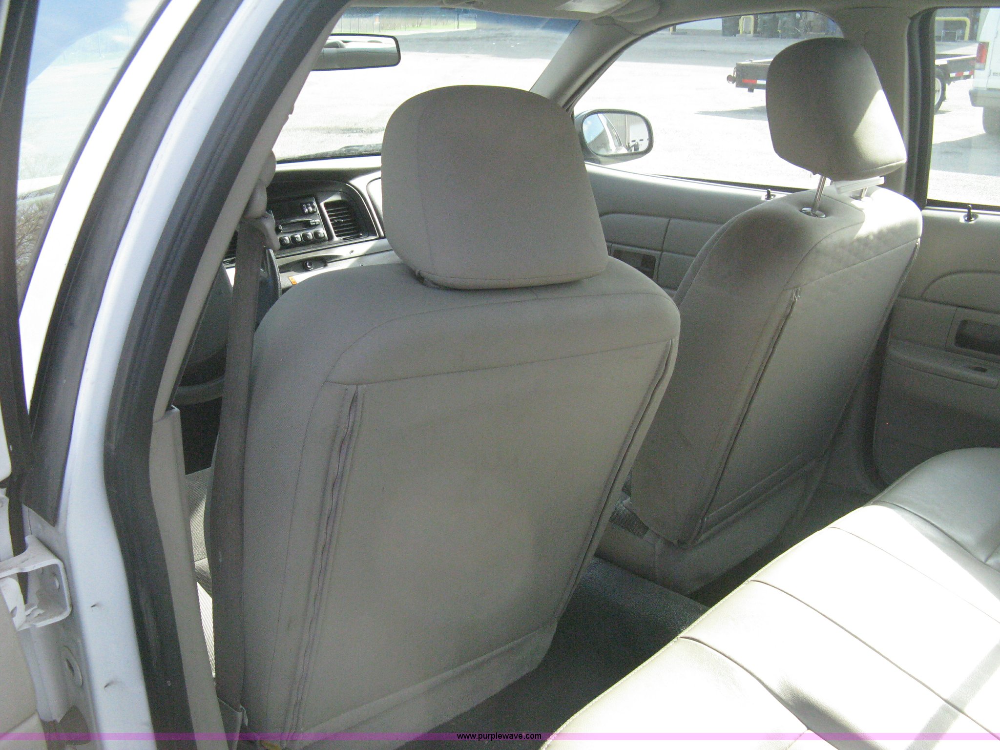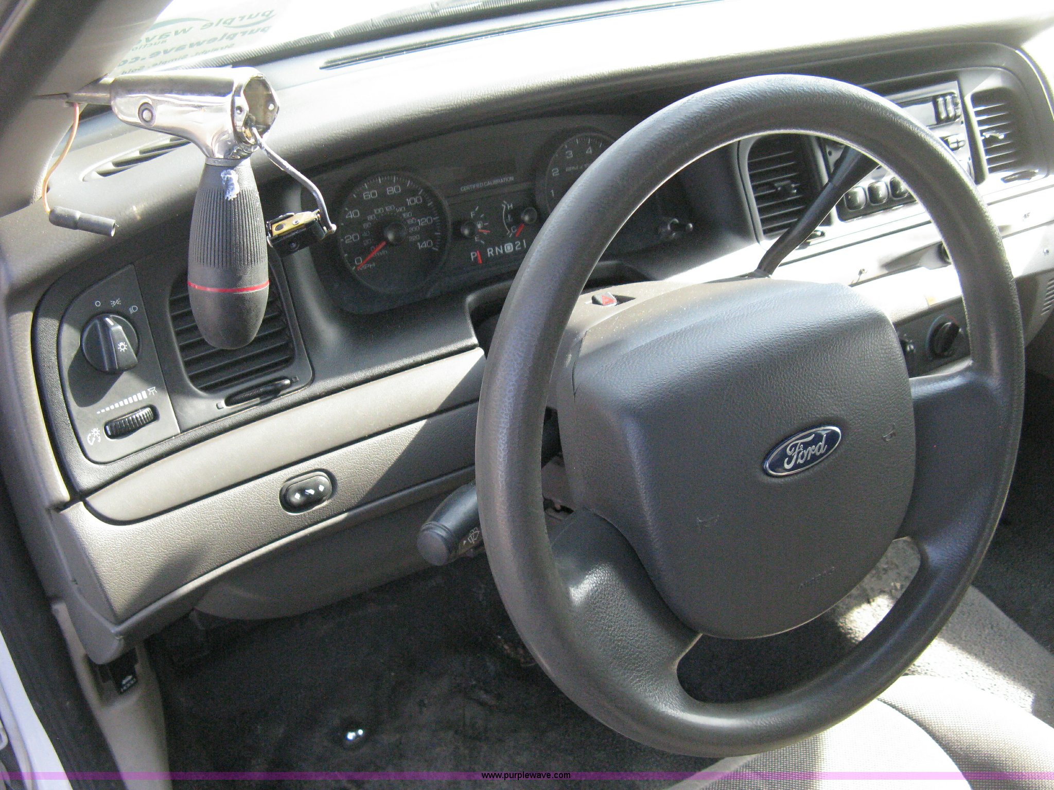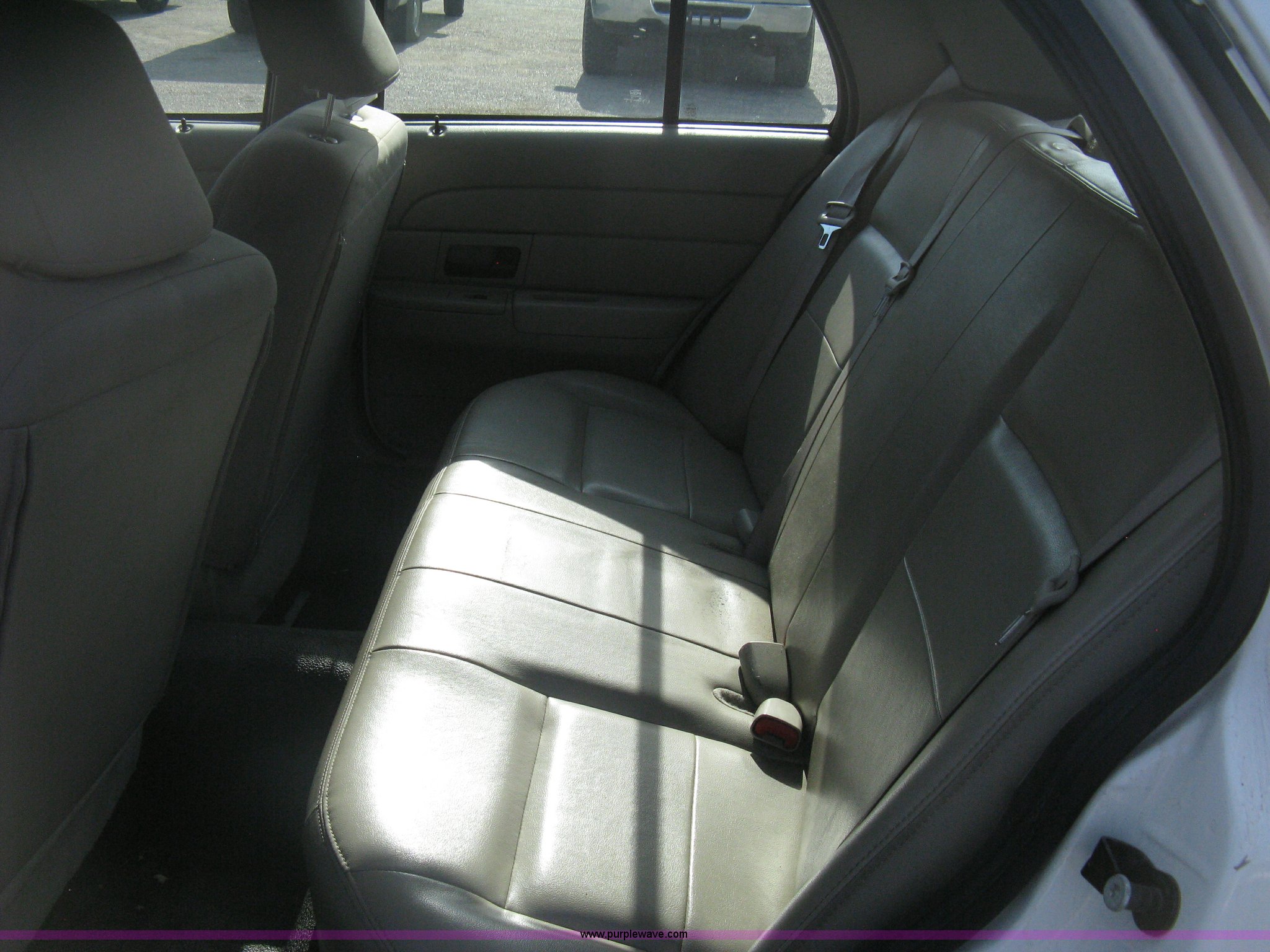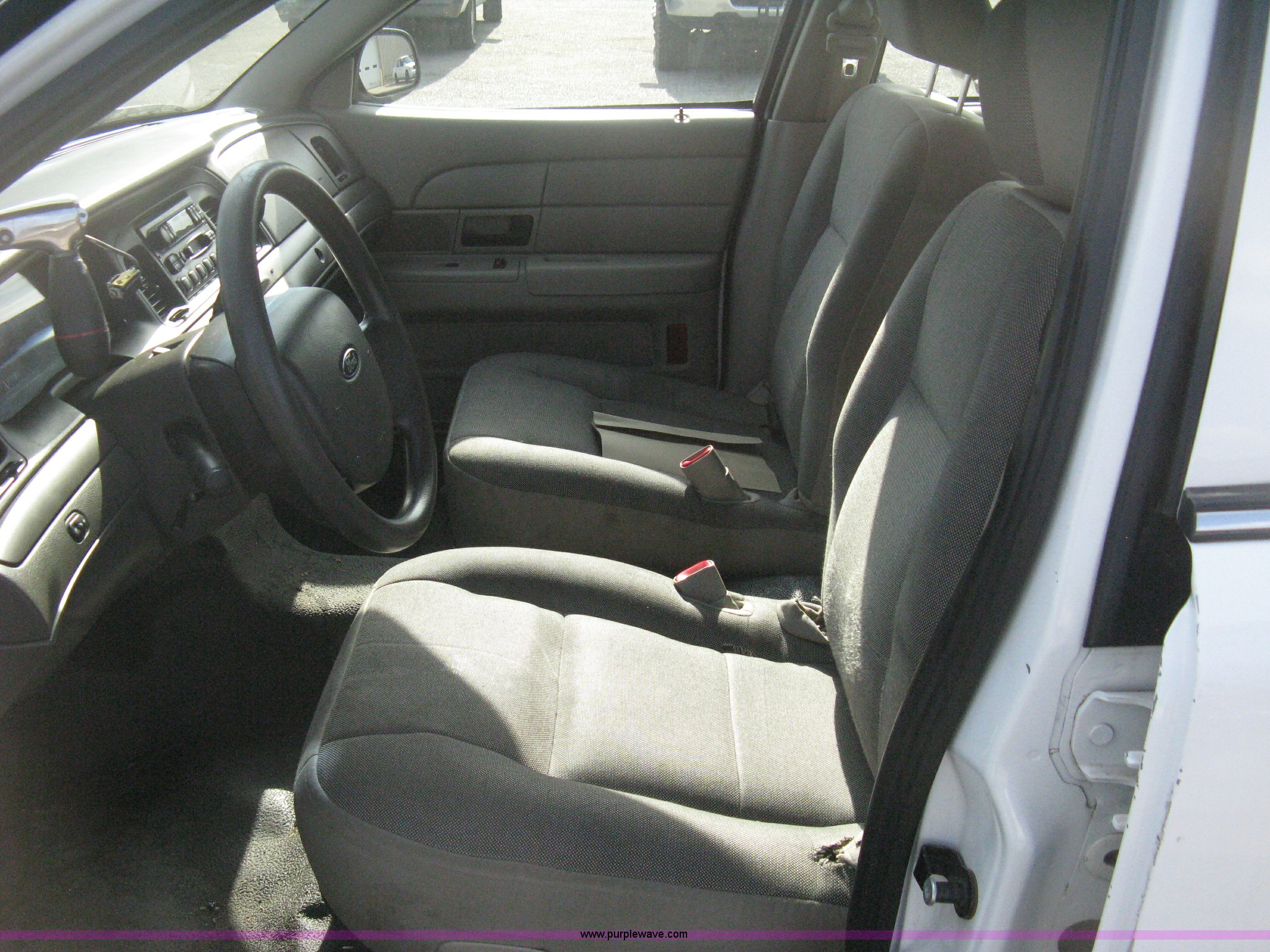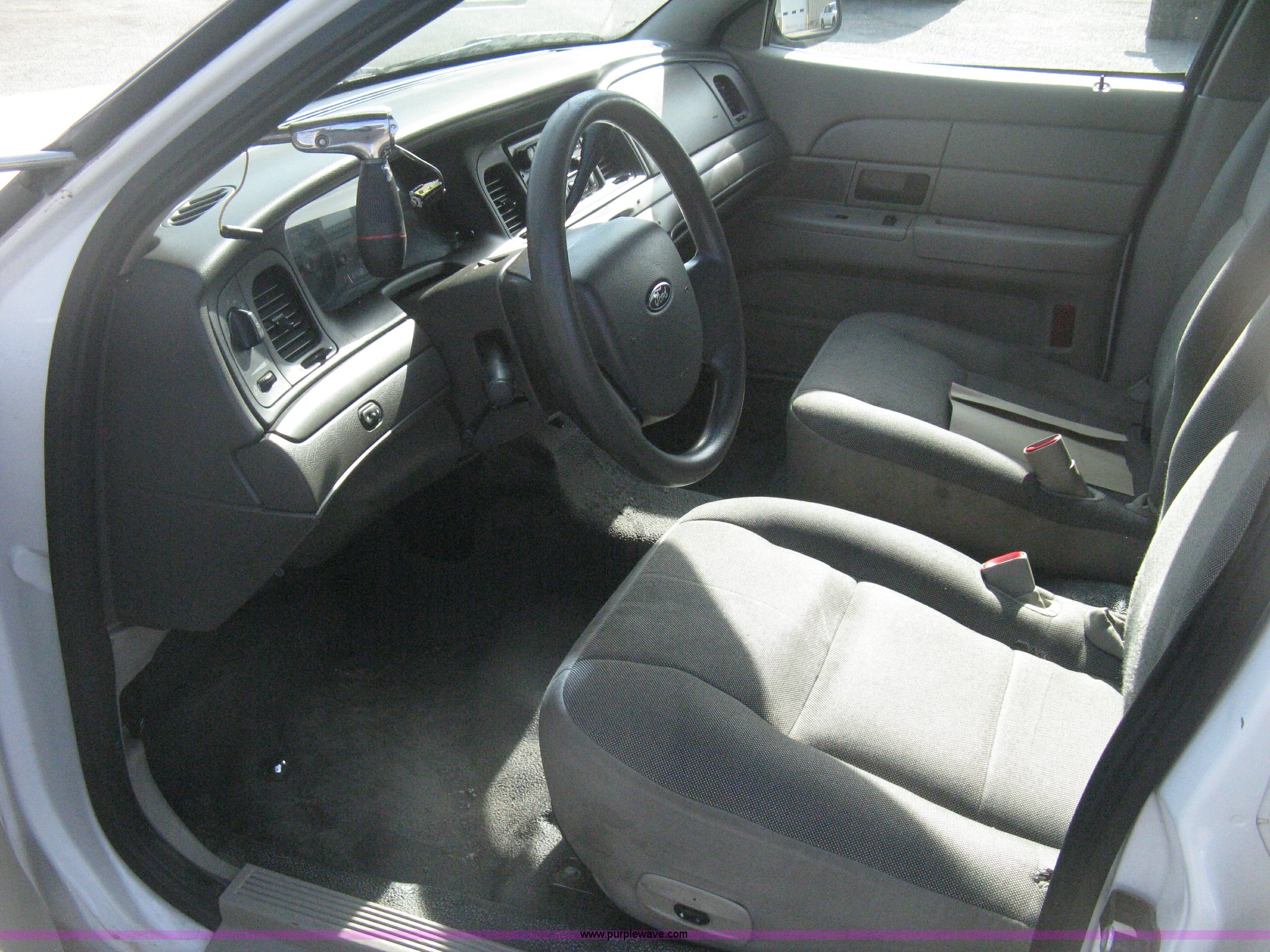 Purple Wave is selling a used Passenger Vehicle in Kansas. This item is a 2009 Ford Crown Victoria Police Interceptor with the following: 81,690 miles on odometer, 4.6L V8 SOHC 16V FFV gas engine, Automatic transmission, AC and heat, Tilt, AM/FM/cassette, Power windows, locks, mirrors, and seats, Cloth front interior, Vinyl rear interior, P235/55R17 tires, Battery dead, Engine inoperable, Interior damage, Exterior port holes plugged, Unit# 222