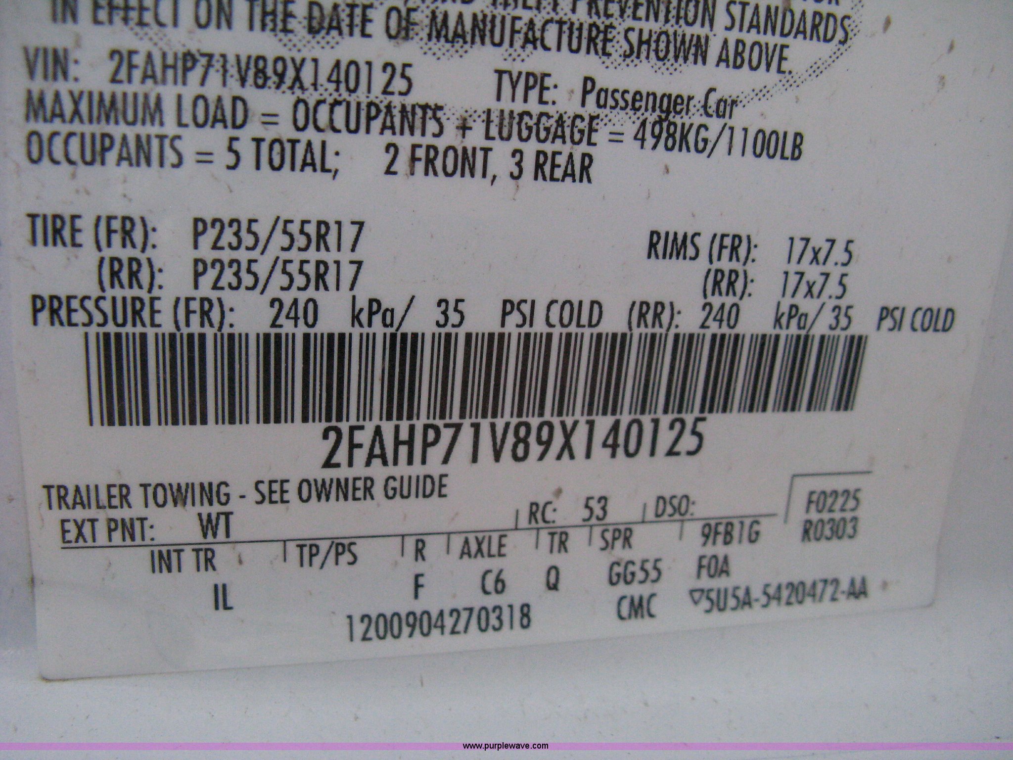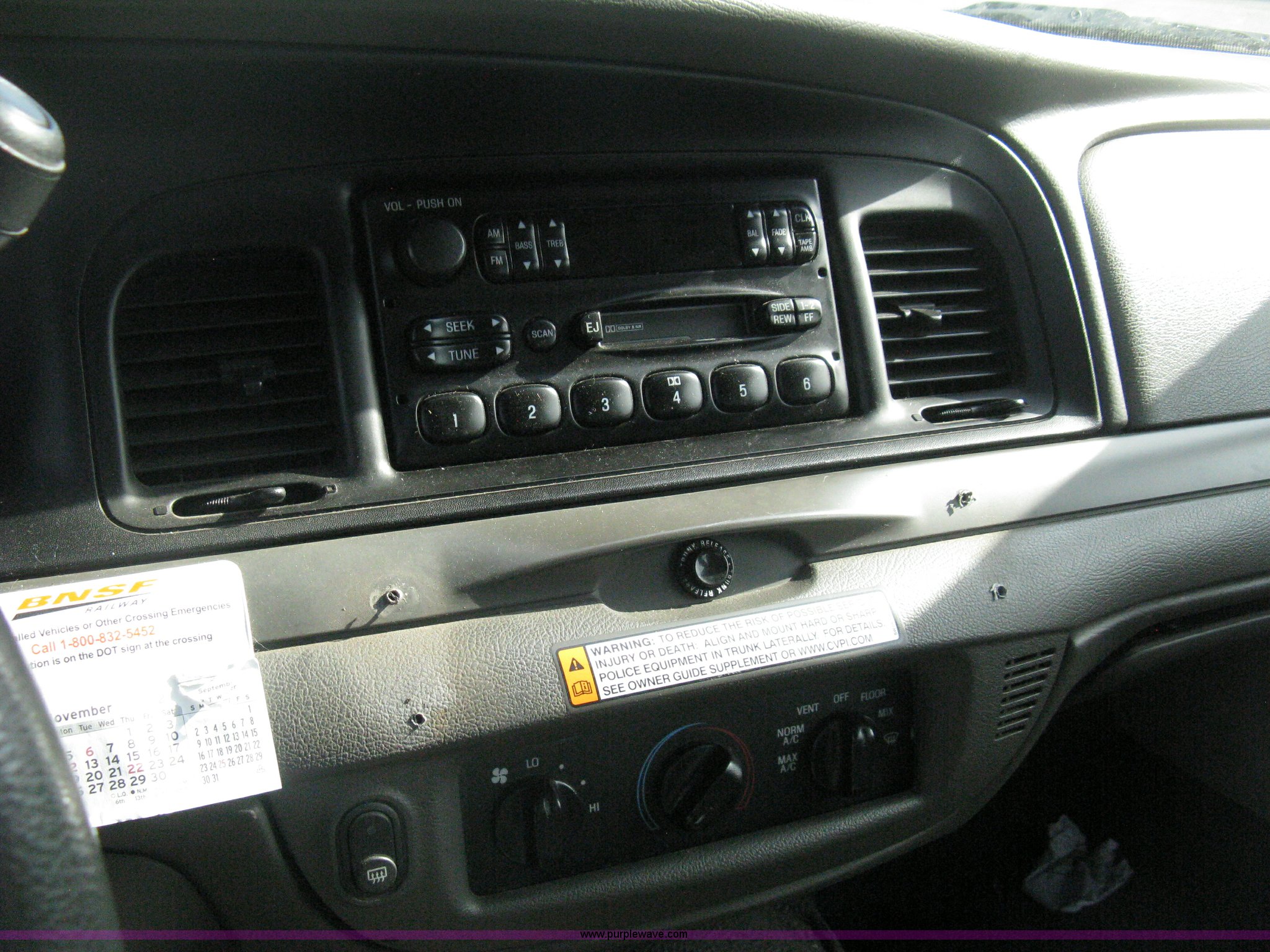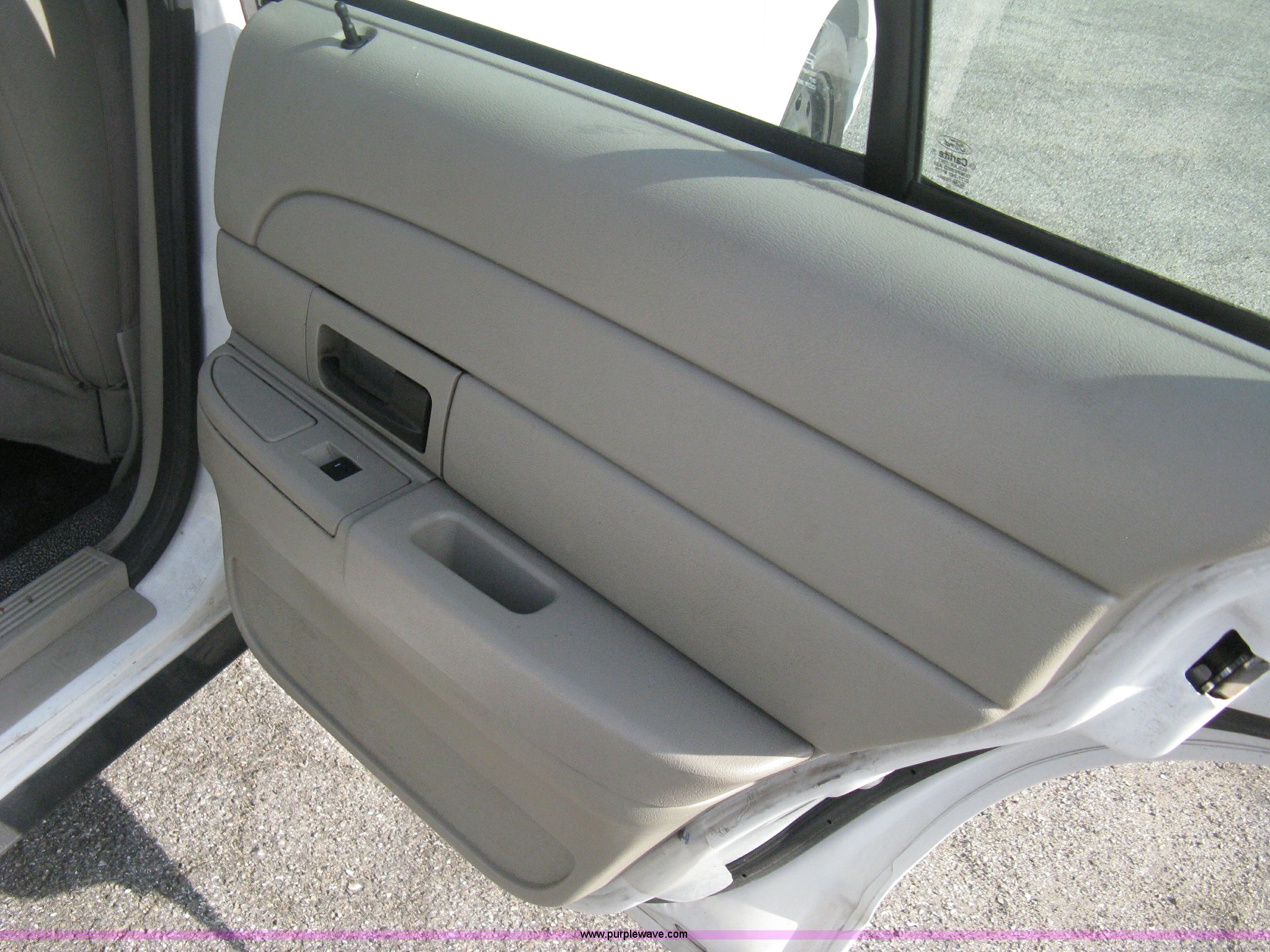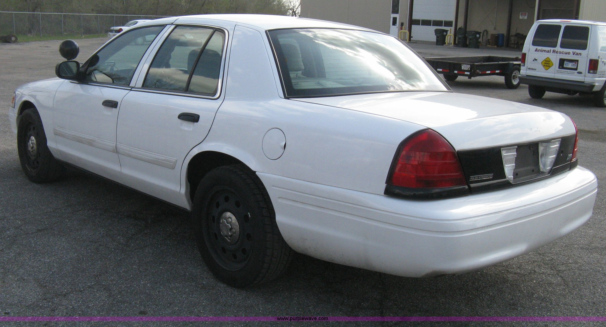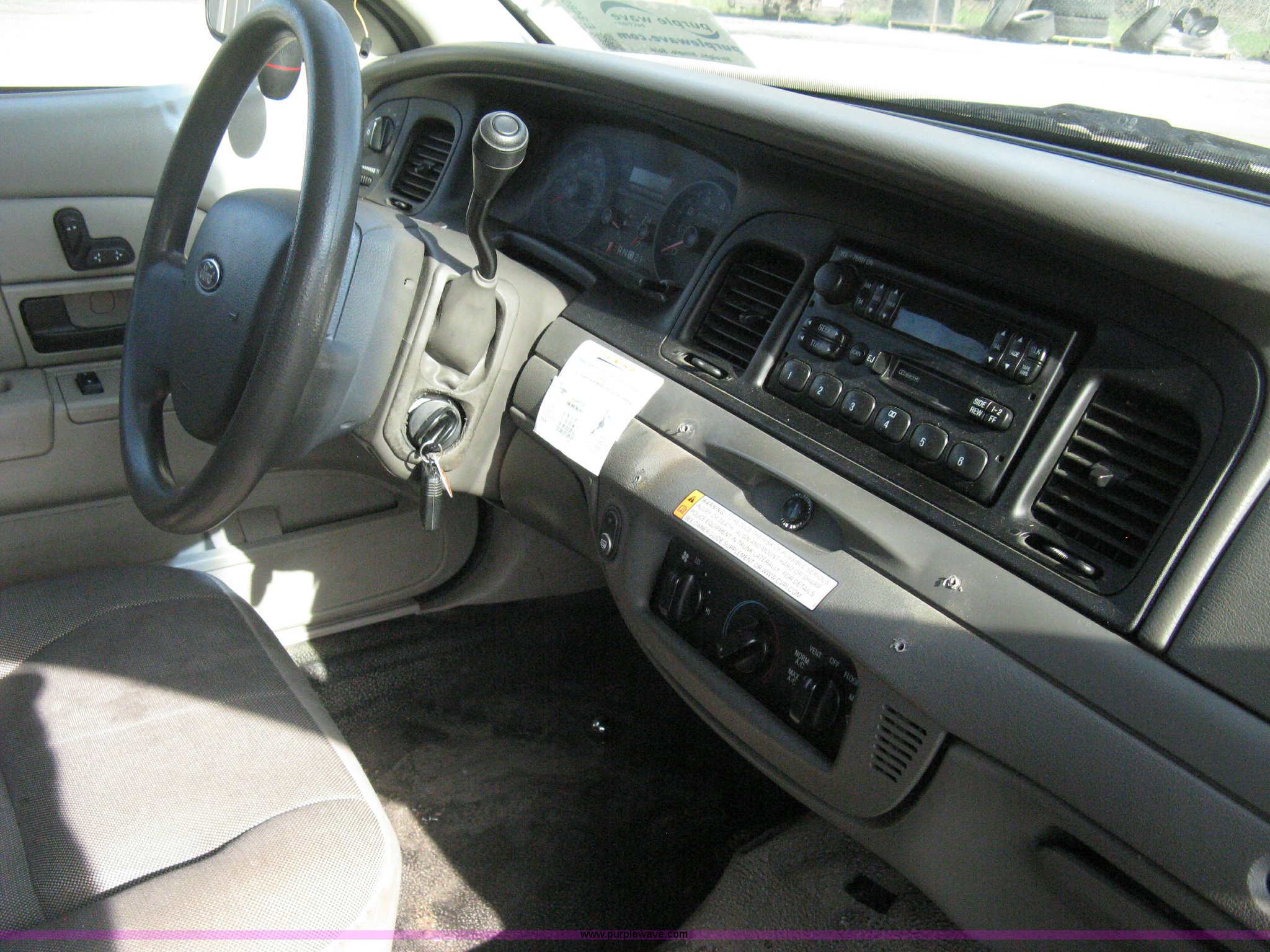 Purple Wave is selling a used Passenger Vehicle in Kansas. This item is a 2009 Ford Crown Victoria Police Interceptor with the following: 81,690 miles on odometer, 4.6L V8 SOHC 16V FFV gas engine, Automatic transmission, AC and heat, Tilt, AM/FM/cassette, Power windows, locks, mirrors, and seats, Cloth front interior, Vinyl rear interior, P235/55R17 tires, Battery dead, Engine inoperable, Interior damage, Exterior port holes plugged, Unit# 222