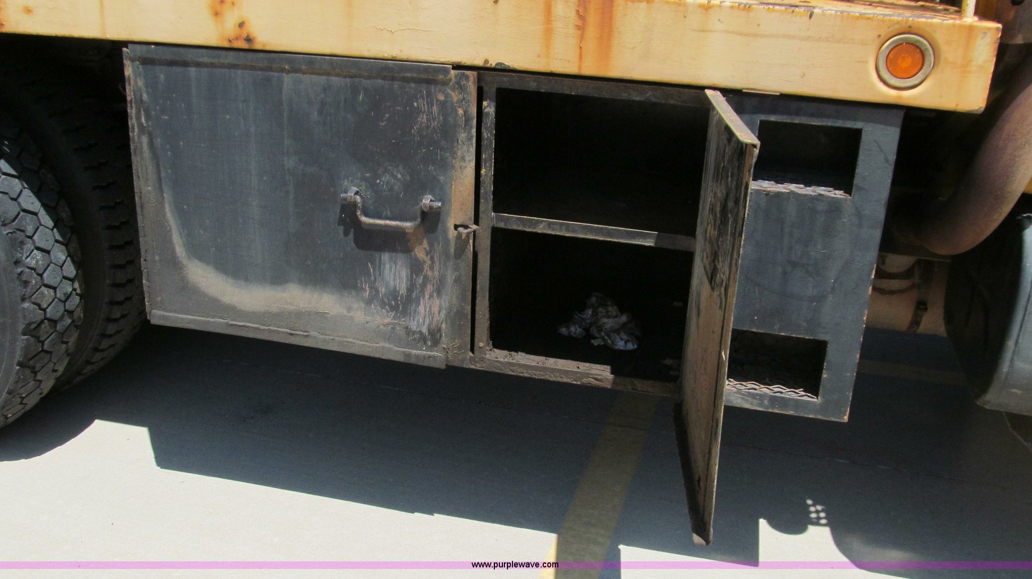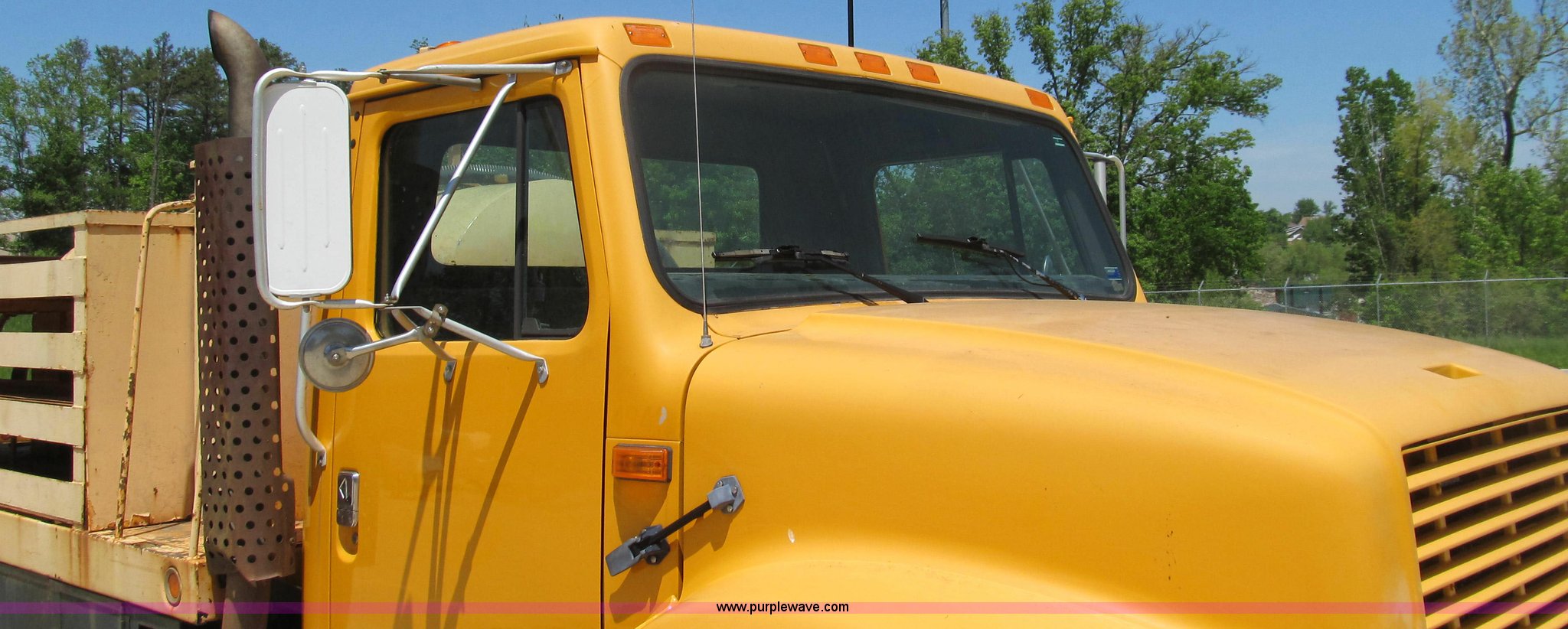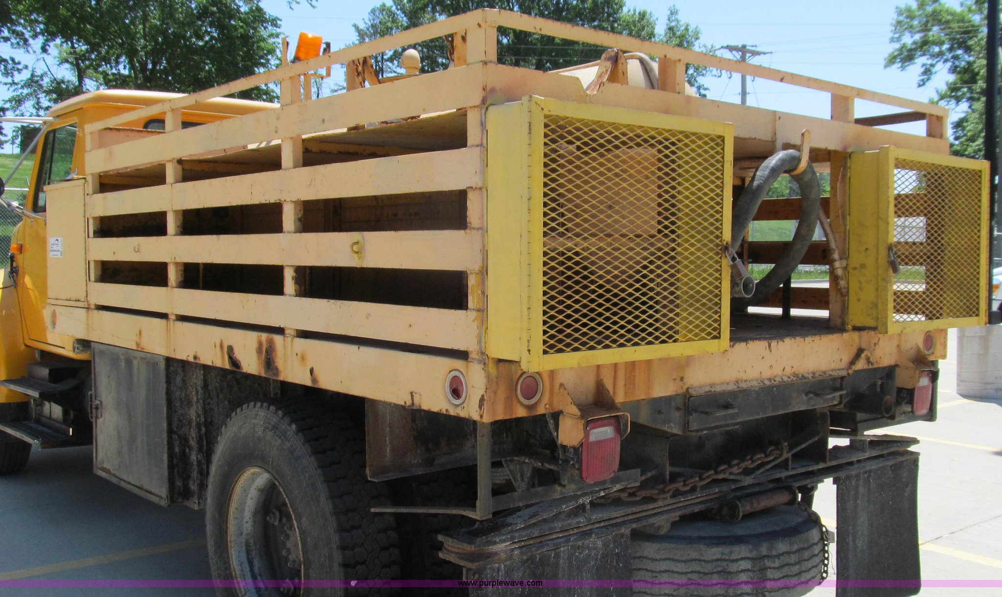 Purple Wave is selling a used Flat Bed Truck in Missouri. This item is a 1993 International 4900 flatbed truck water truck with the following: 105,435 miles on odometer, 1,866 hours on meter, International DT466 7.6L L6 diesel engine, Spicer seven speed manual transmission, AM/FM, Knapheide 12'L Valve Master bed, Water tank, Briggs & Stratton 3 HP gas engine, Under bed storage boxes, Side mounted hose racks, Rear access doors, 50 gallon fuel tank, PTO, Single exhaust stack, Air brakes, 170" wheelbase, 11R22.5 tires, MoDOT ID 4942