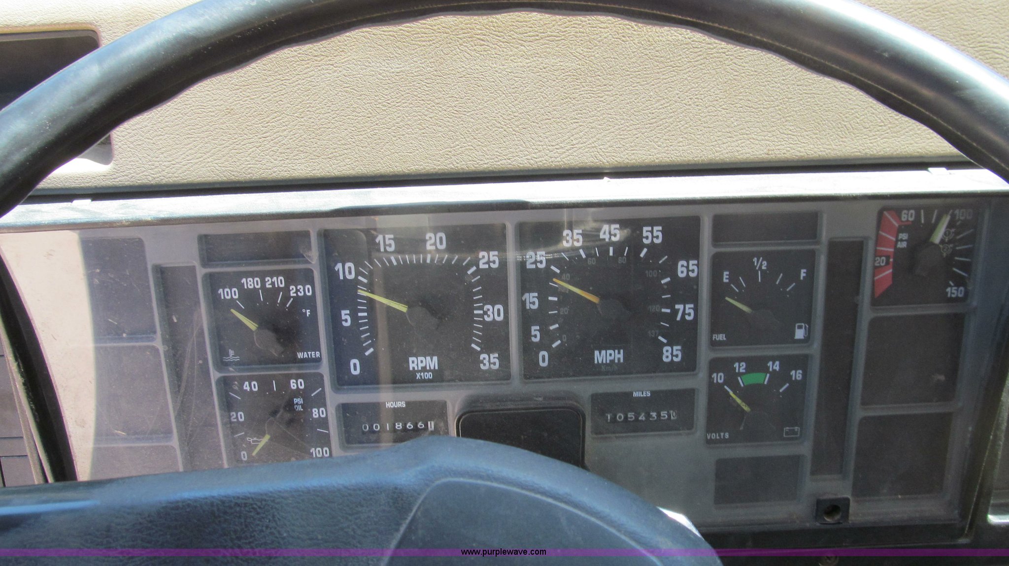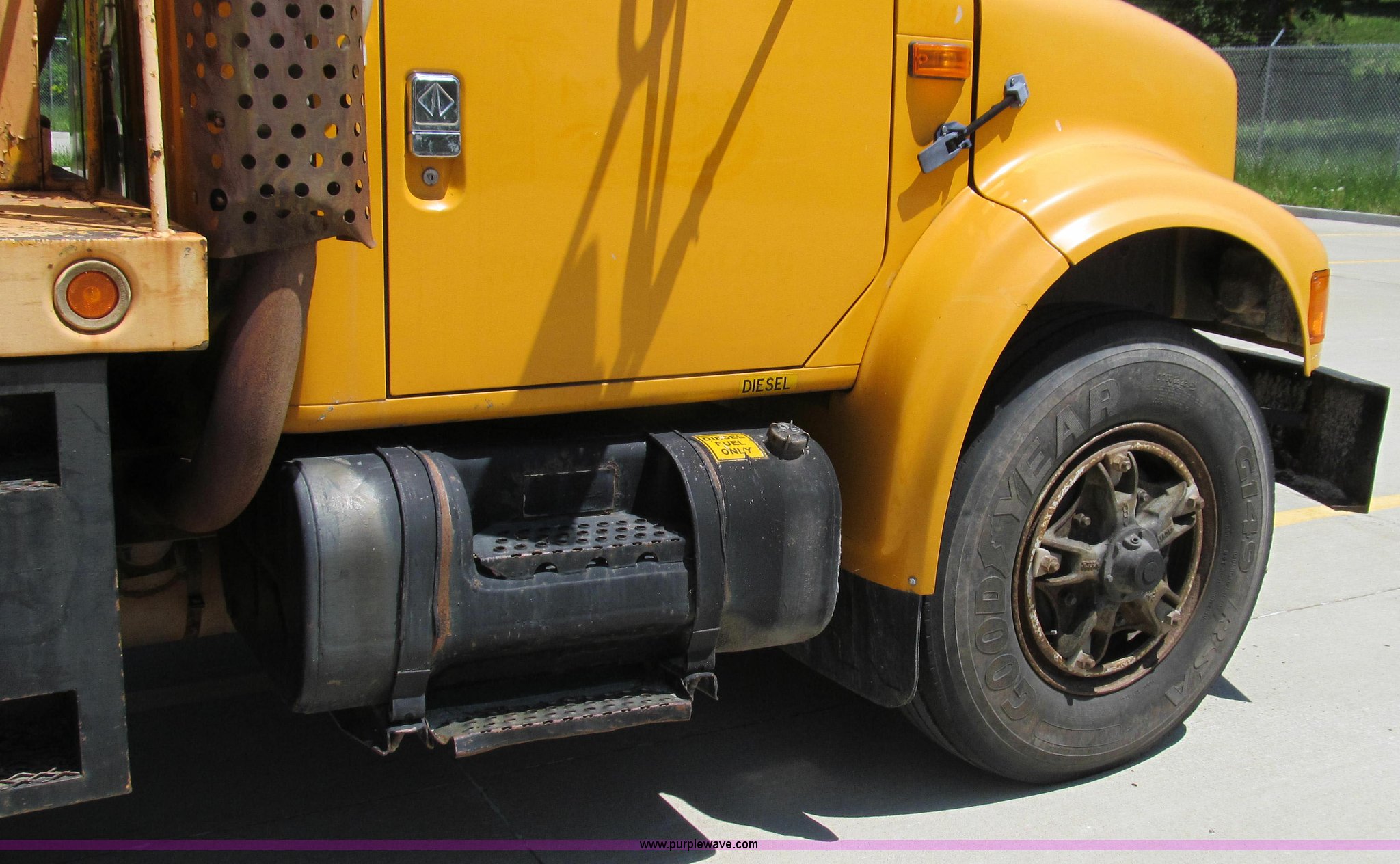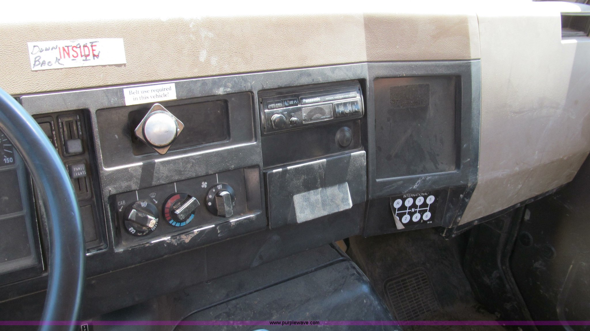 Purple Wave is selling a used Flat Bed Truck in Missouri. This item is a 1993 International 4900 flatbed truck water truck with the following: 105,435 miles on odometer, 1,866 hours on meter, International DT466 7.6L L6 diesel engine, Spicer seven speed manual transmission, AM/FM, Knapheide 12'L Valve Master bed, Water tank, Briggs & Stratton 3 HP gas engine, Under bed storage boxes, Side mounted hose racks, Rear access doors, 50 gallon fuel tank, PTO, Single exhaust stack, Air brakes, 170" wheelbase, 11R22.5 tires, MoDOT ID 4942
