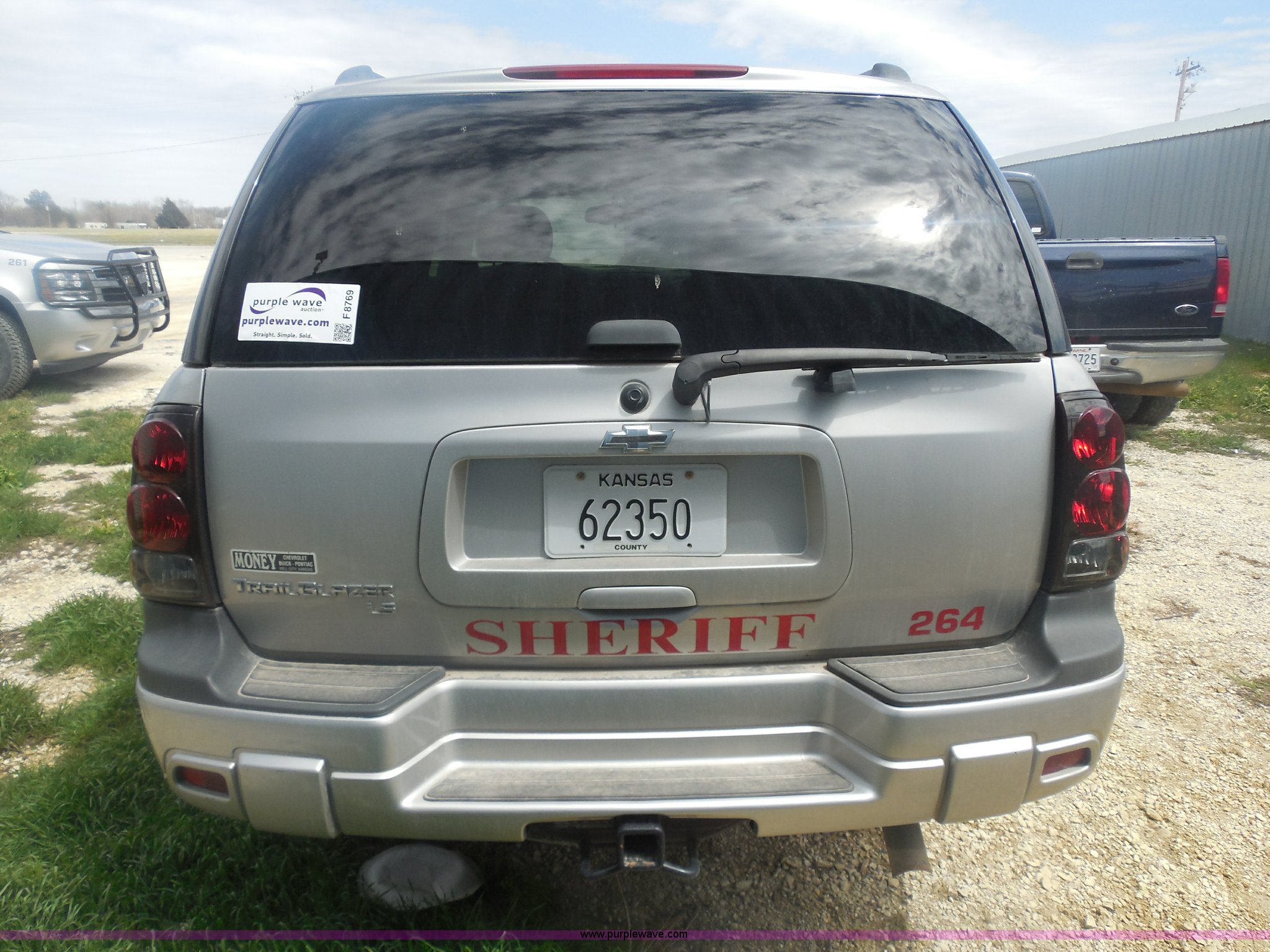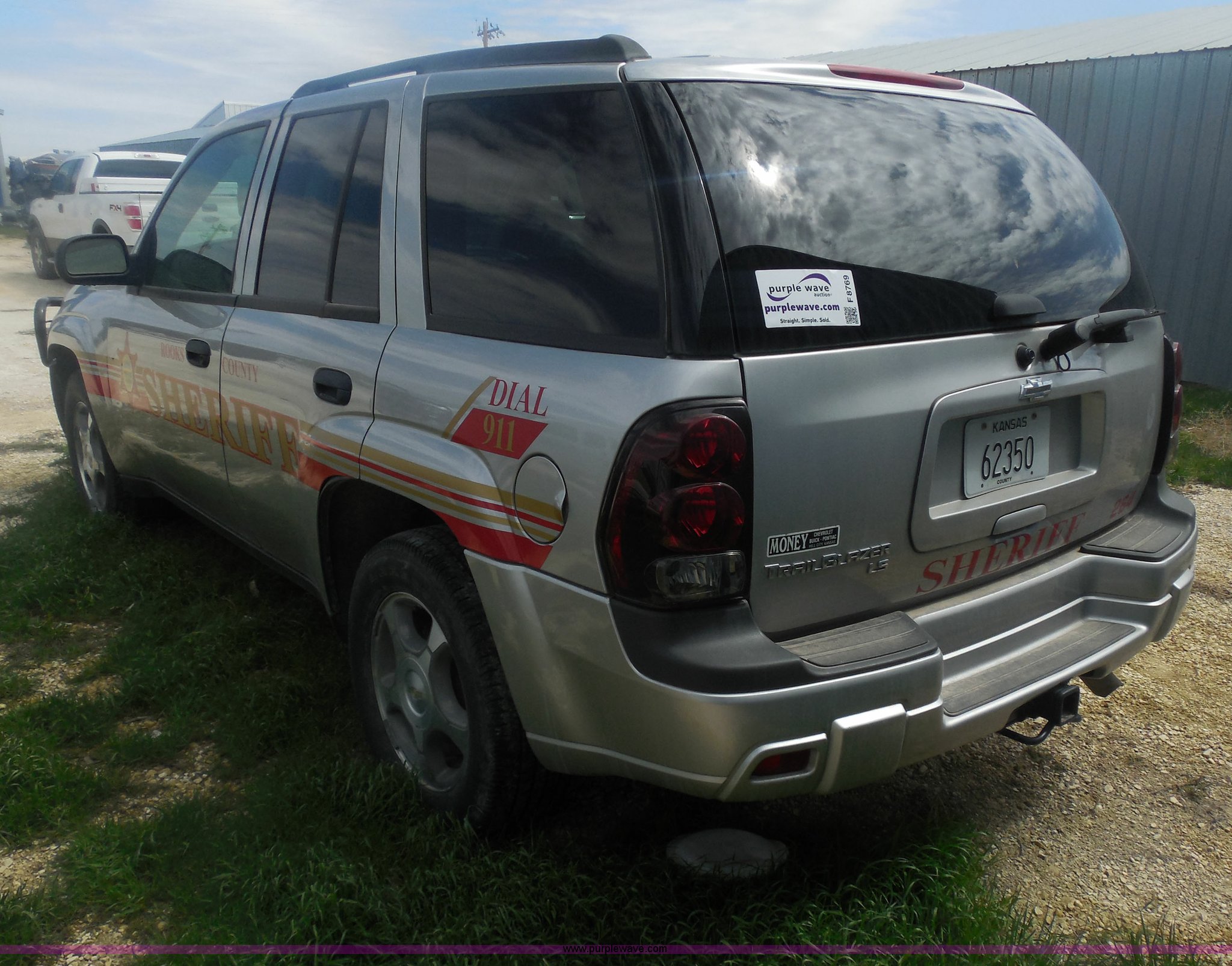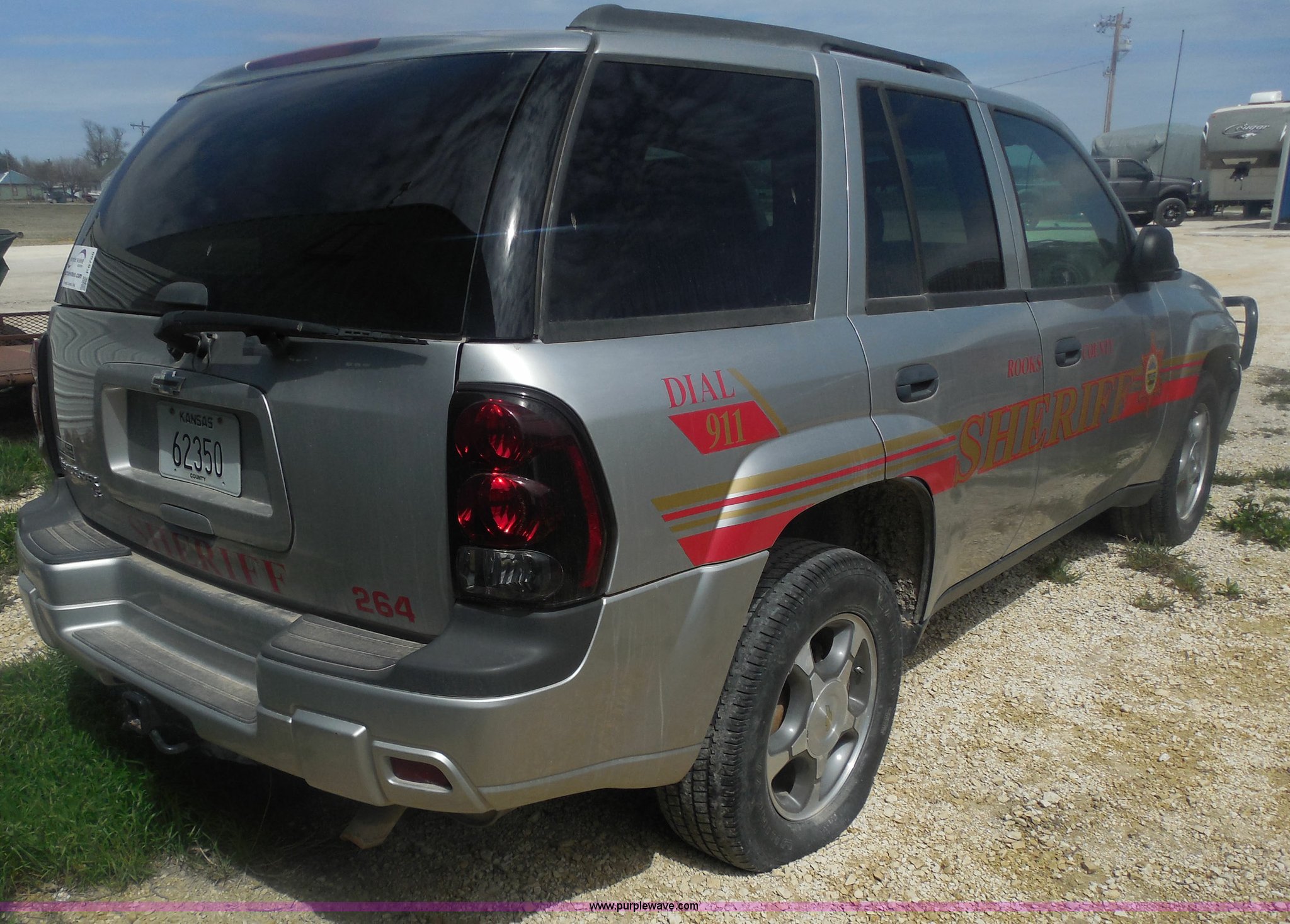 2007 Chevrolet Trailblazer LS SUV. 134,823 miles on odometer, 5.3L V8 OHV 16V gas engine, Automatic transmission, Four wheel drive, AC and heat, Tilt, Cruise, AM/FM/CD, Power windows and locks, Cloth interior, P245/65R17 tires, Dead battery, No radio or personal property included, Interior/exterior cosmetic damage, Bumper guard is not included, Decals will be removed prior to auction, Unit may have decal residue, Unknown running condition. Seller is a government entity who will be assigning and distributing the title. Please contact the seller for distribution questions. 1GNET13M572150578. Shipping quotes available. Rooks County Sheriff Office. 115 N Walnut Street. Stockton, KS 67669