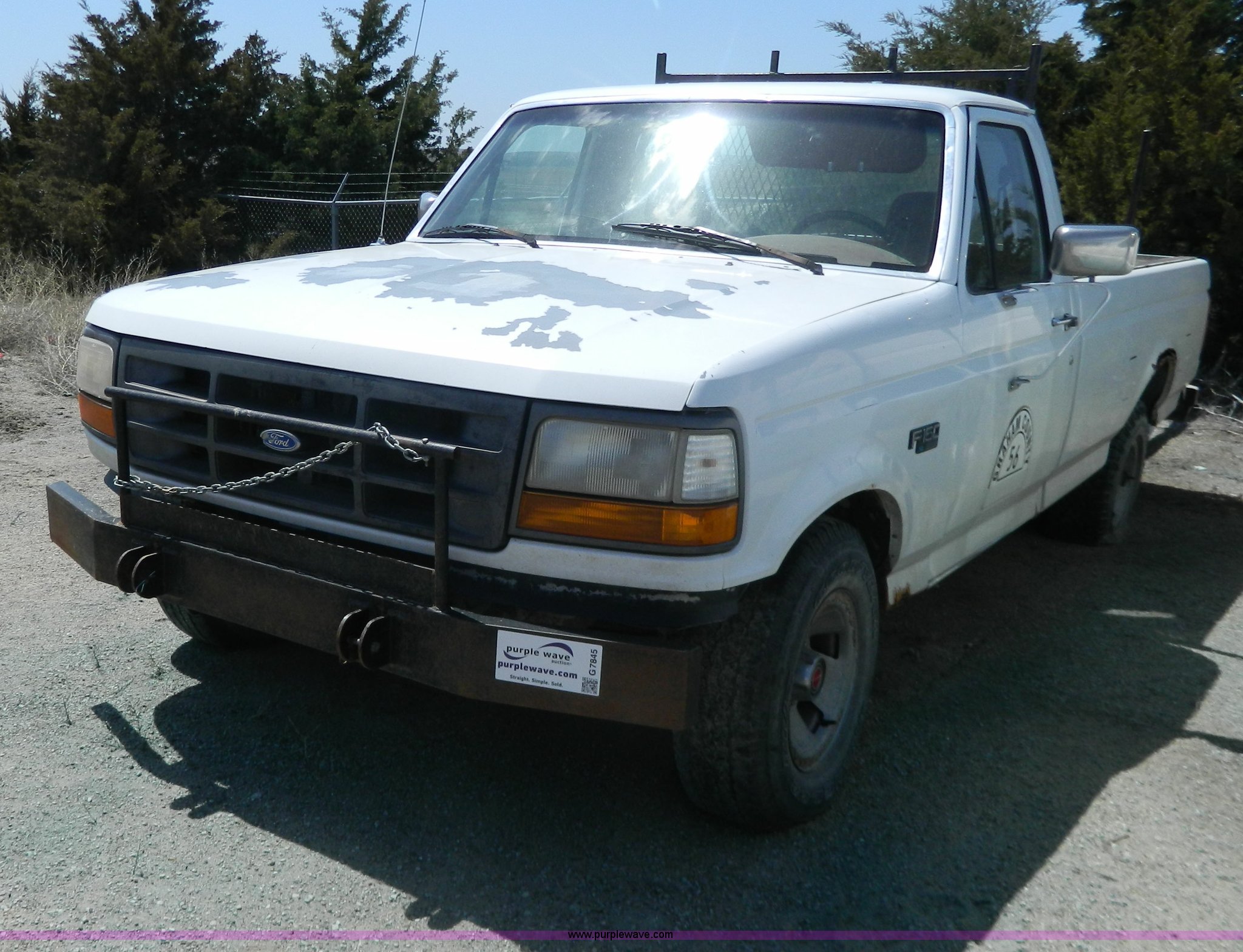 Purple Wave is selling a used Passenger Vehicle in Kansas. This item is a 1993 Ford F150 XL pickup truck with the following: 182,550 miles on odometer, 4.9L L6 OHV 12V gas engine, Automatic transmission, AC and heat, AM/FM, Manual windows and locks, Long bed, P235/75R15 tires, Interior/exterior cosmetic damage, Rust, Dents, Paint overspray, Weak battery, Windshield cracked, Transmission issues, Vehicle will need to be towed