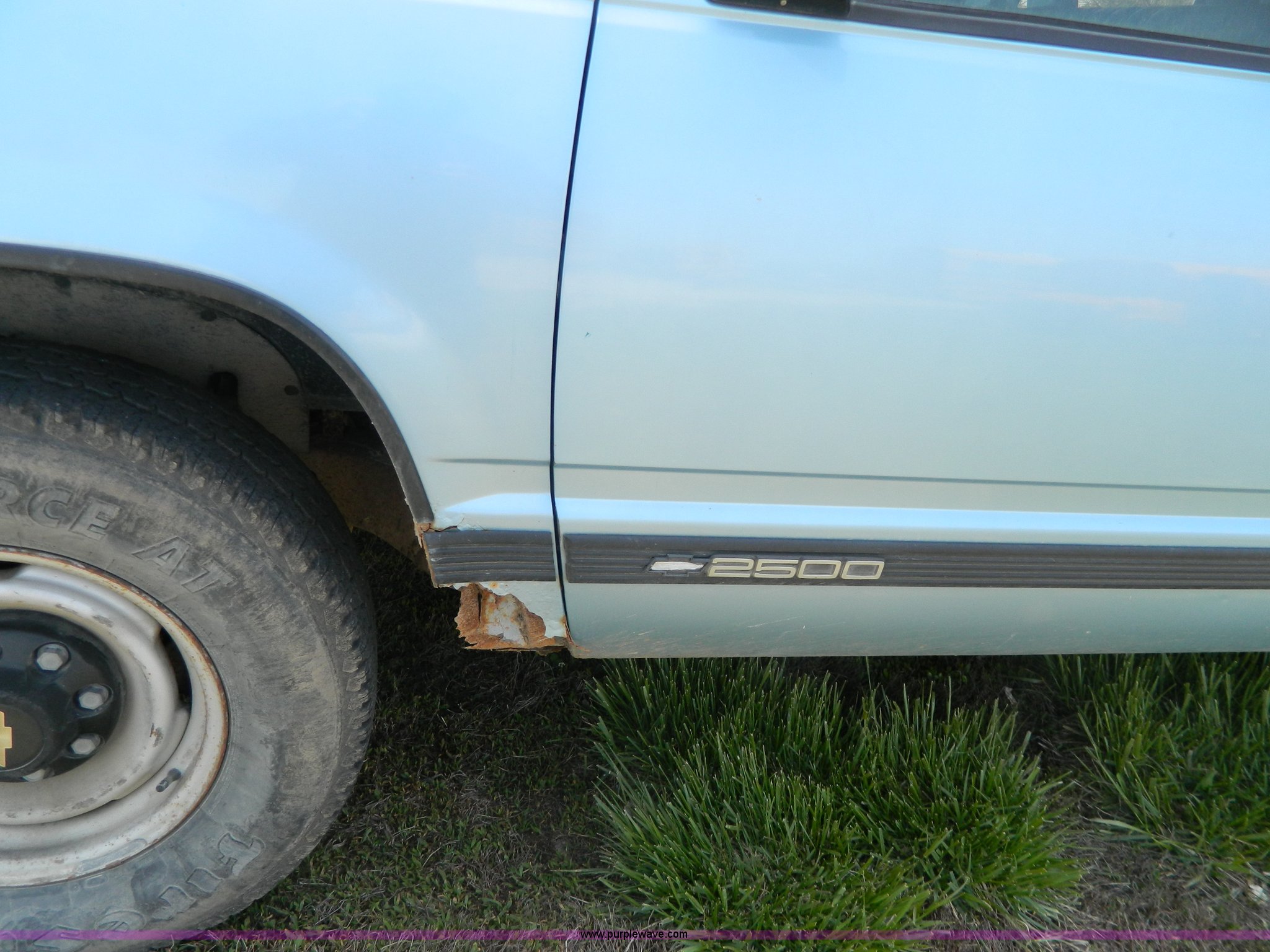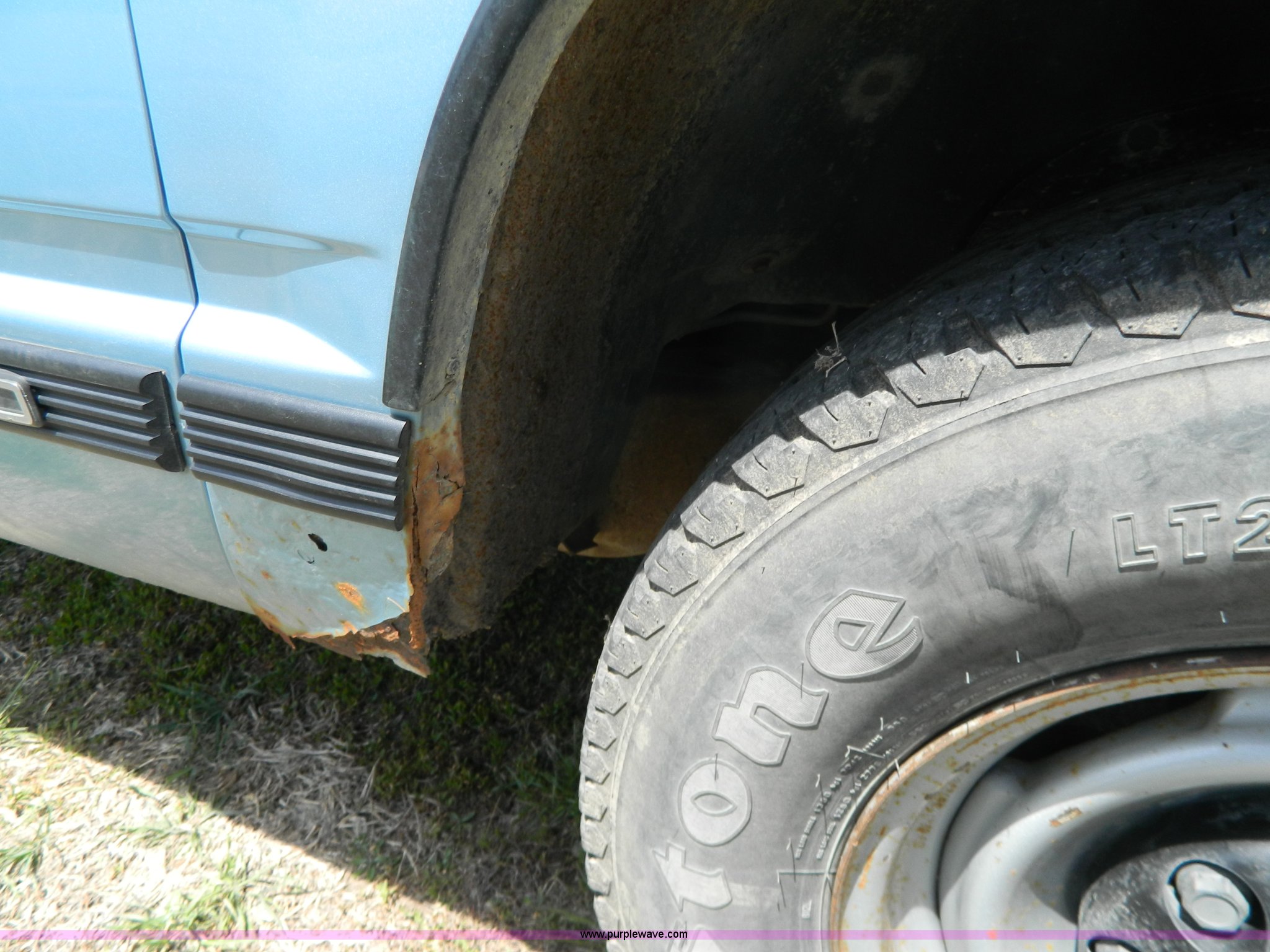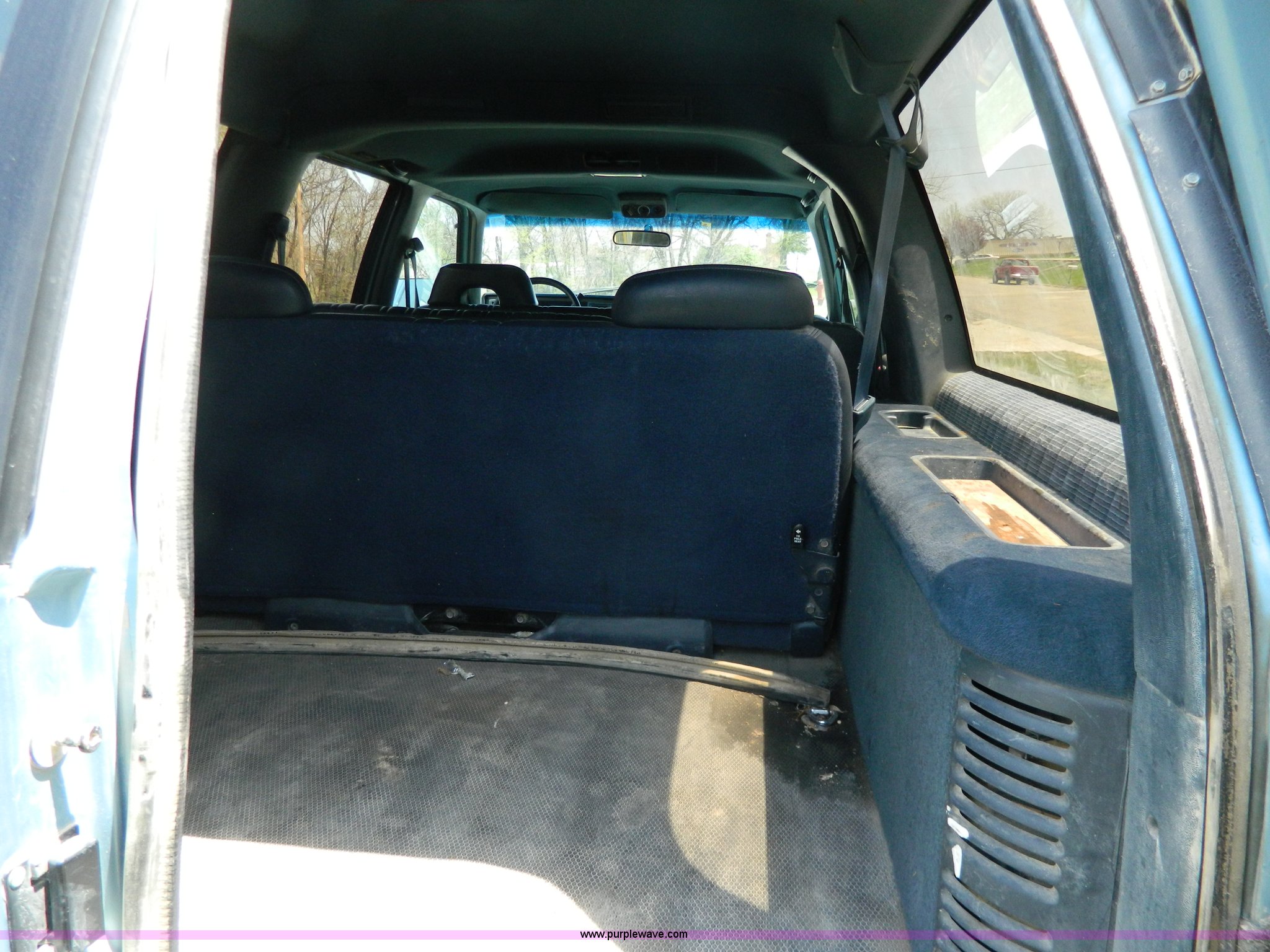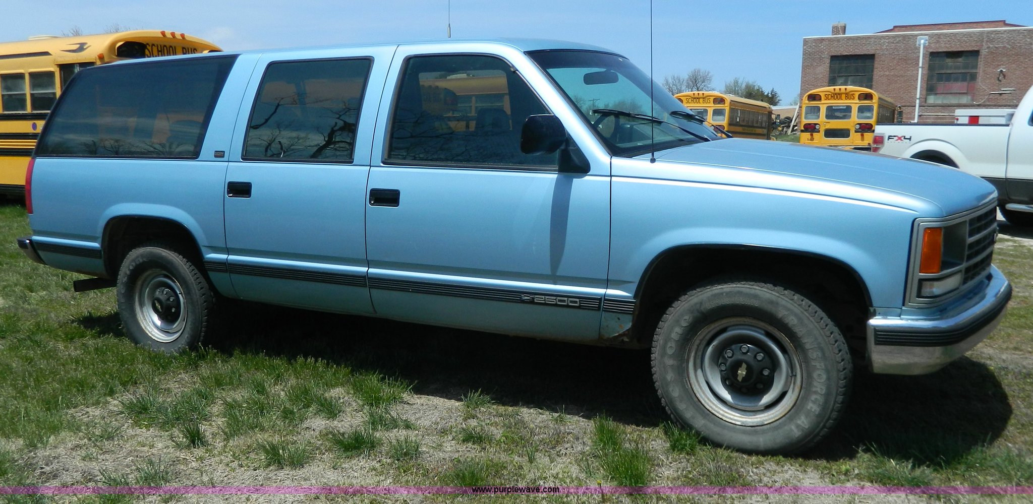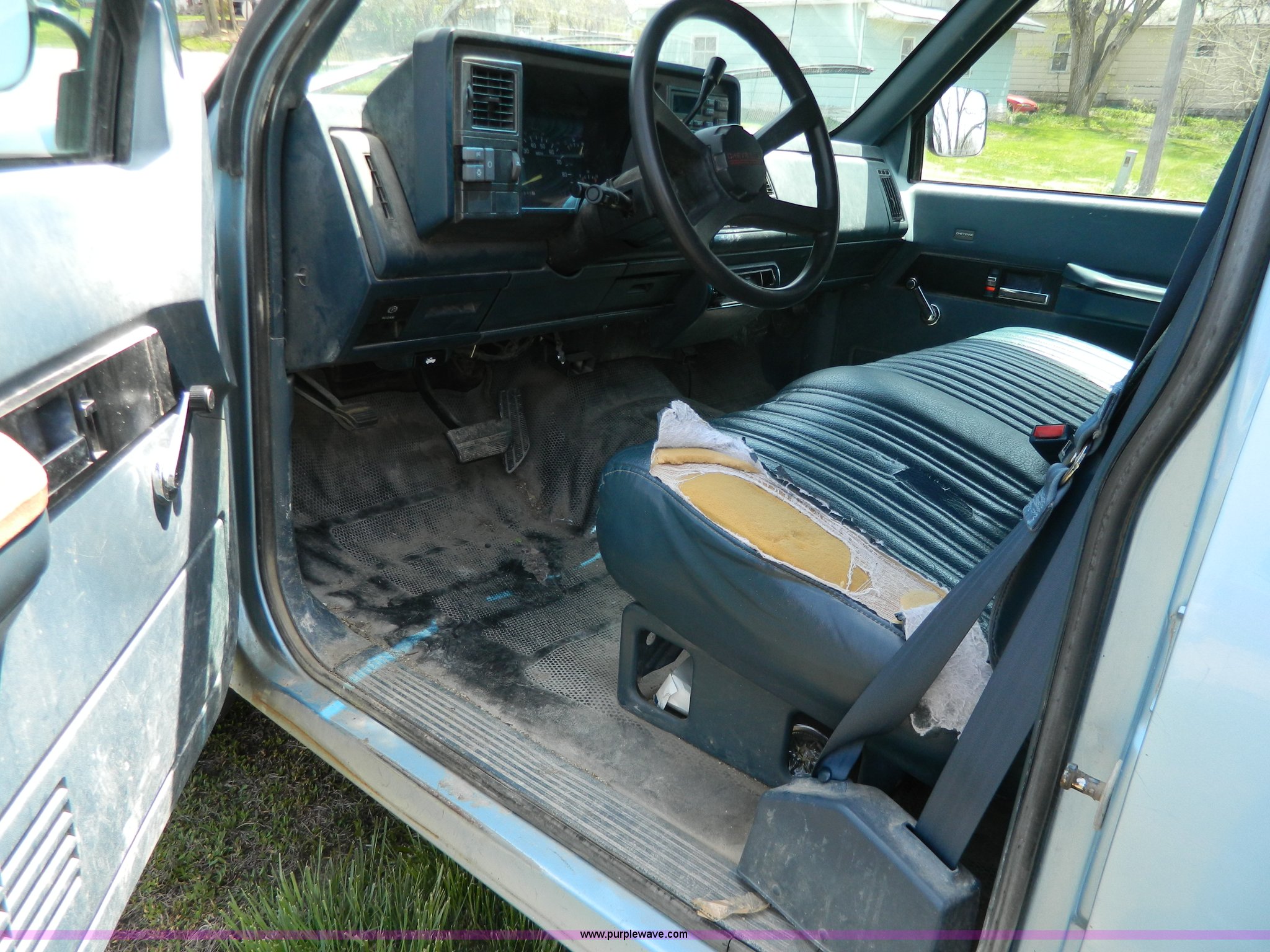 Purple Wave is selling a used Passenger Vehicle in Kansas. This item is a 1993 Chevrolet Suburban 2500 SUV with the following: 293,949 miles on odometer, Miles may vary, still in use, 5.7L V8 OHV 16V gas engine, Automatic transmission, AC and heat, AC inoperable, Tilt, Cruise, AM/FM/cassette, Manual windows and locks, Vinyl interior, LT245/75R16 tires, Rust, Interior/exterior cosmetic damage, Seat torn, Door handle modified, Control knobs missing for rear AC