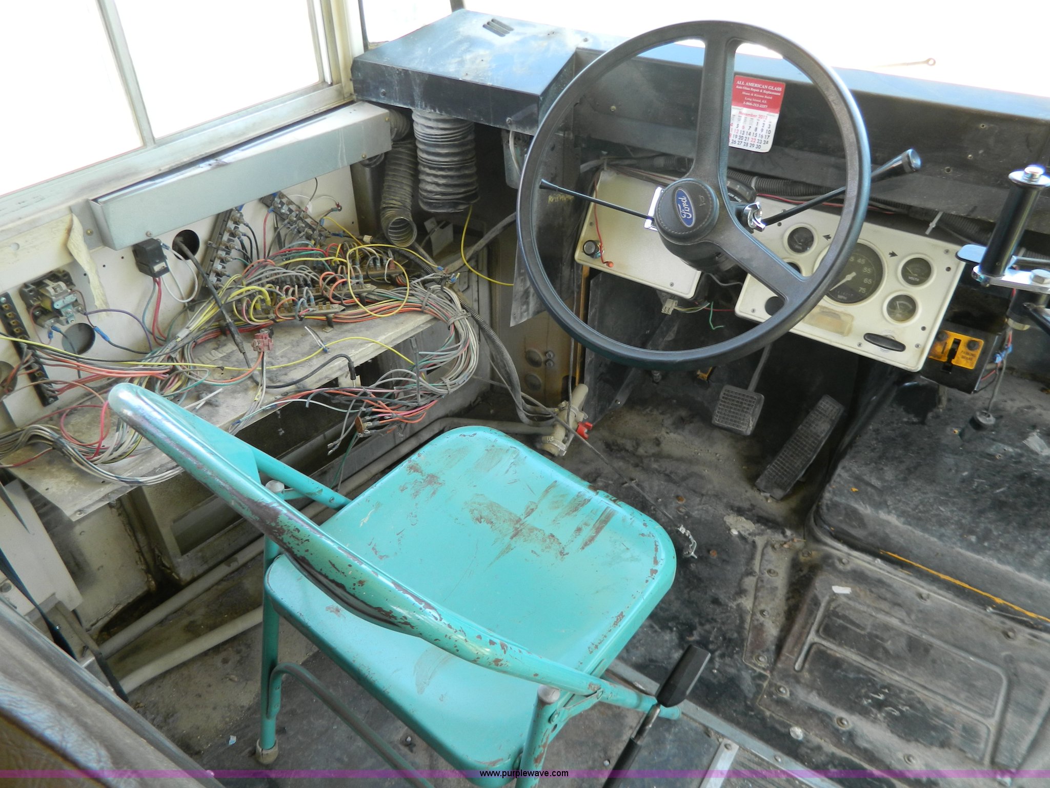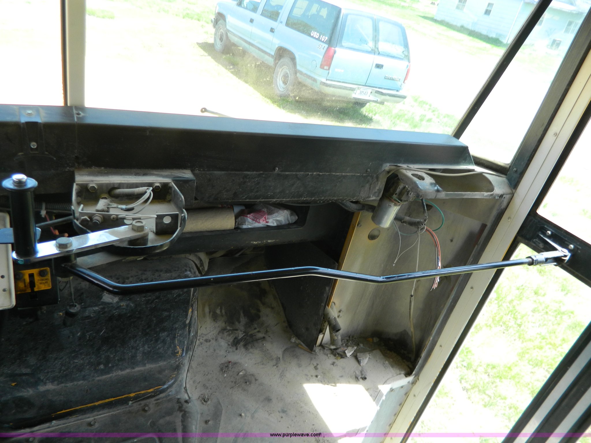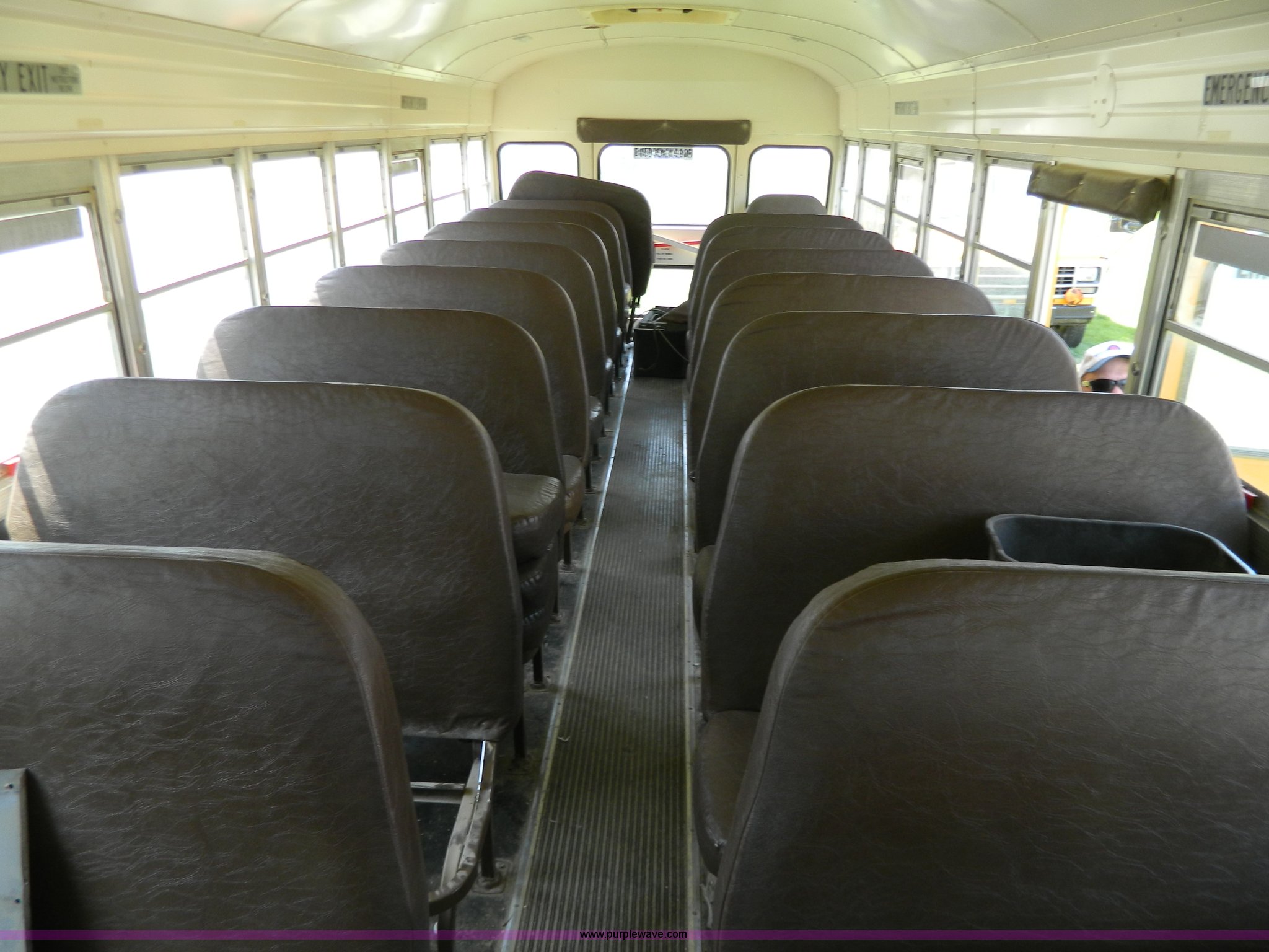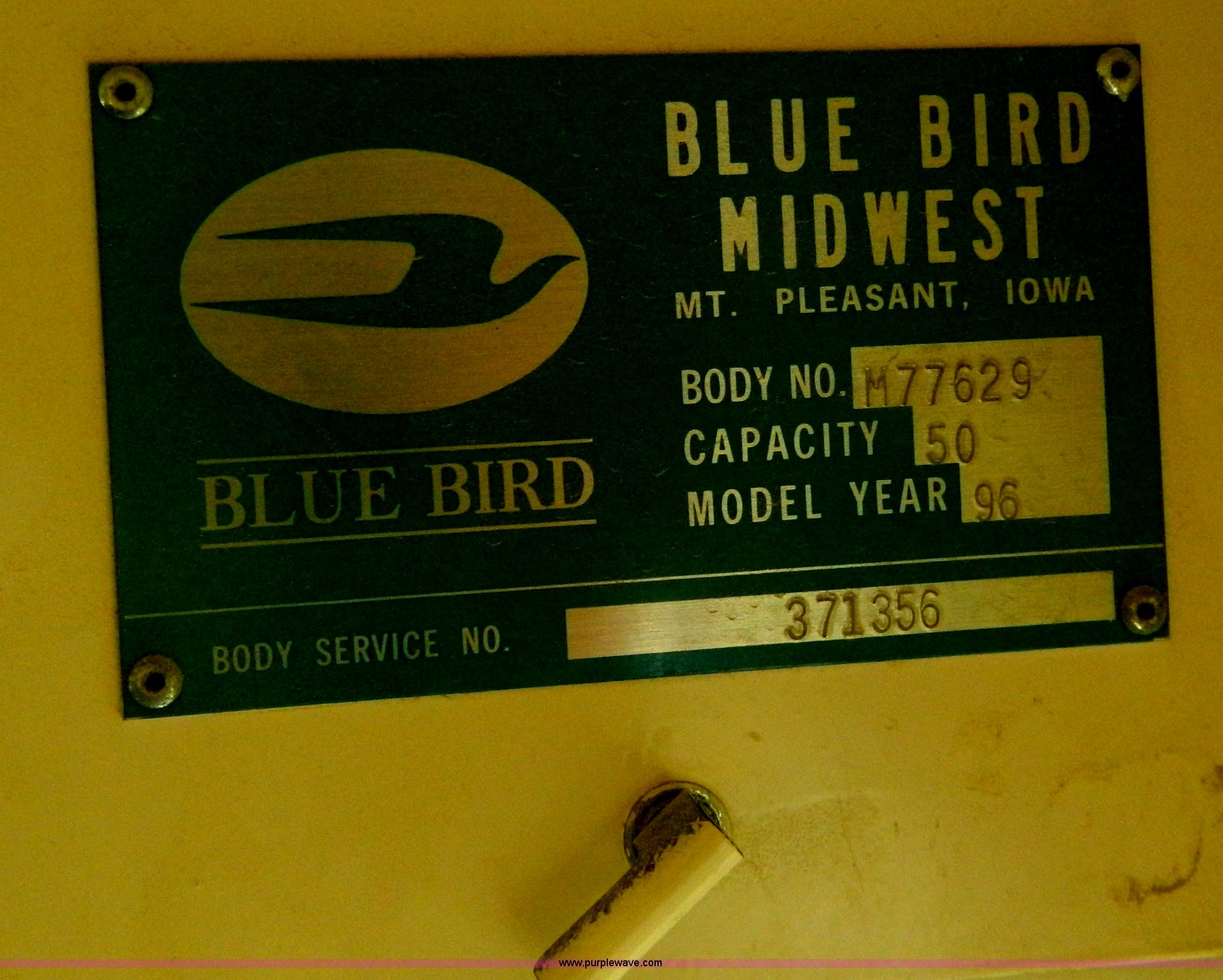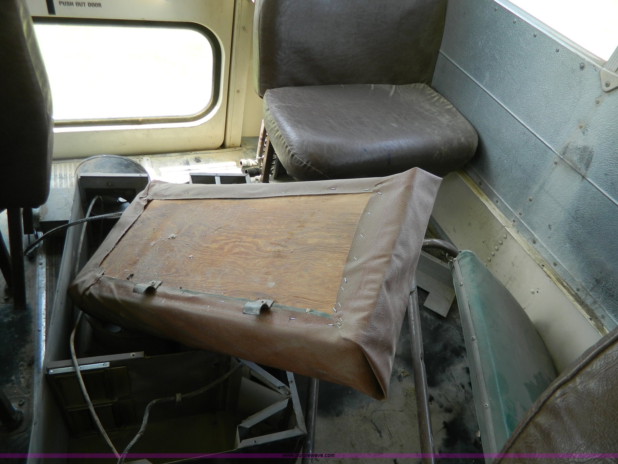 Purple Wave is selling a used Bus in Kansas. This item is a 1996 Ford Blue Bird school bus with the following: 187,421 miles on odometer, 50 passenger, 5.9L L6 diesel engine, Hole in engine block, Automatic transmission, 10R22.5 tires, GVWR 17,500 lbs, Parts have been removed, Frame has been cut, Rear tires missing, Unit will need to be towed