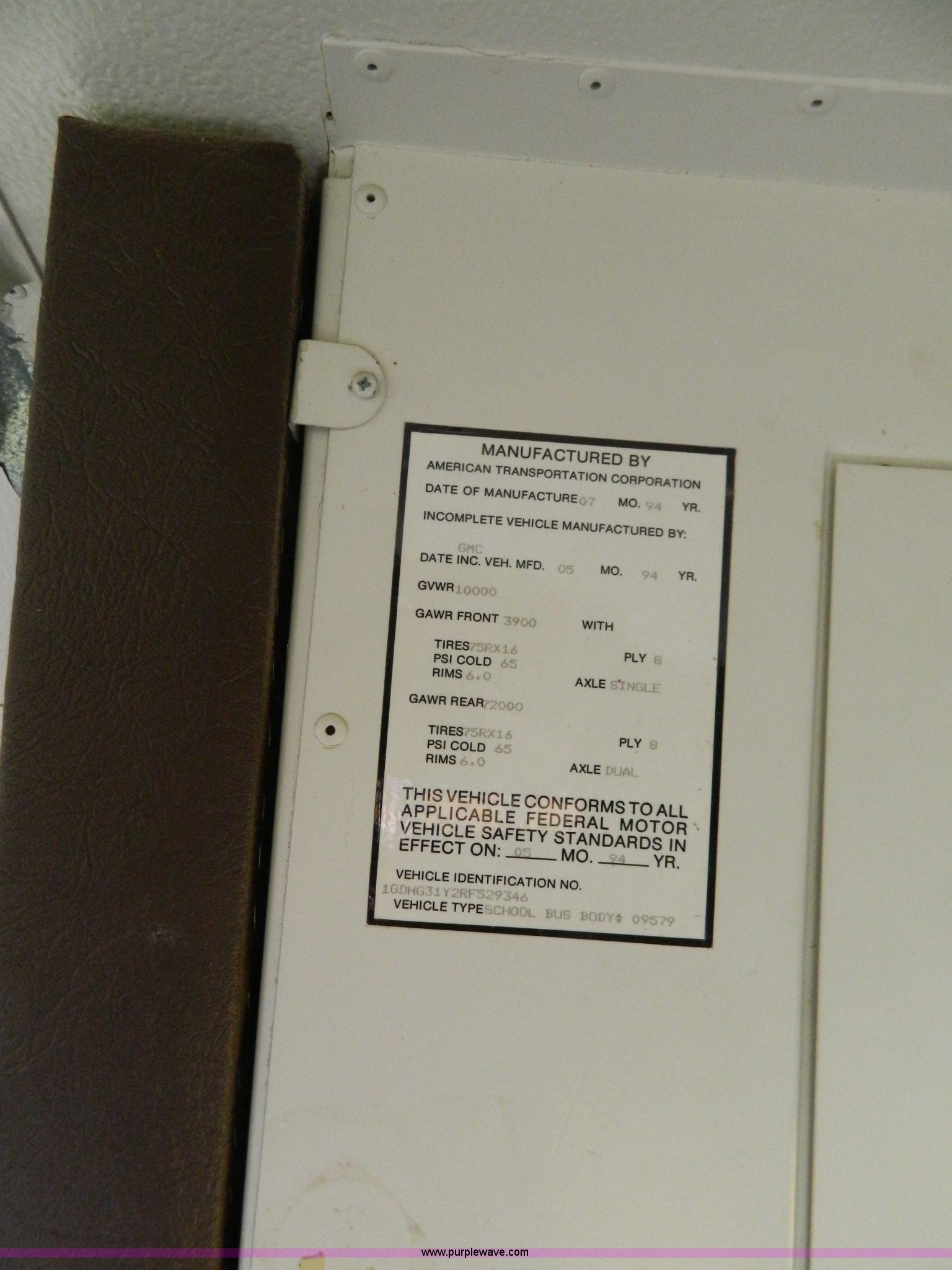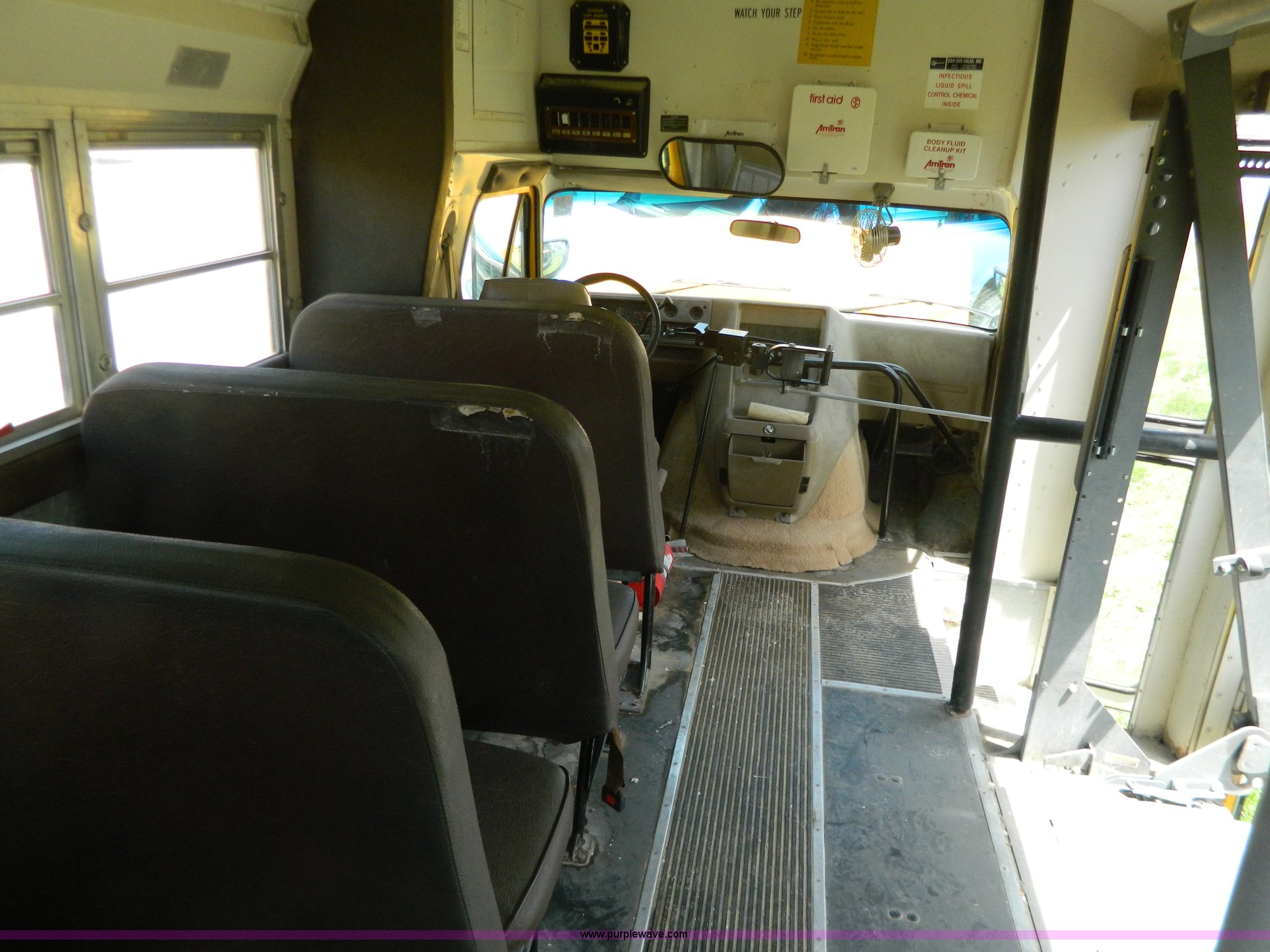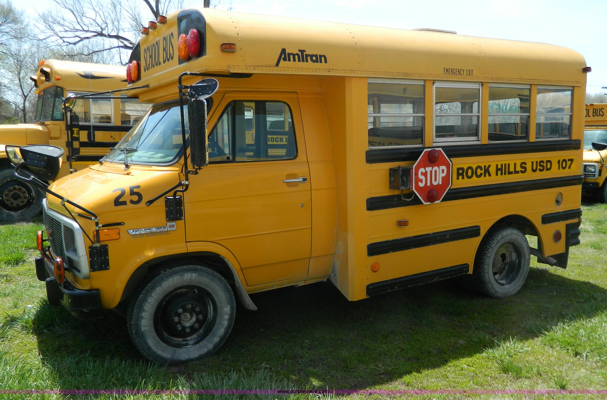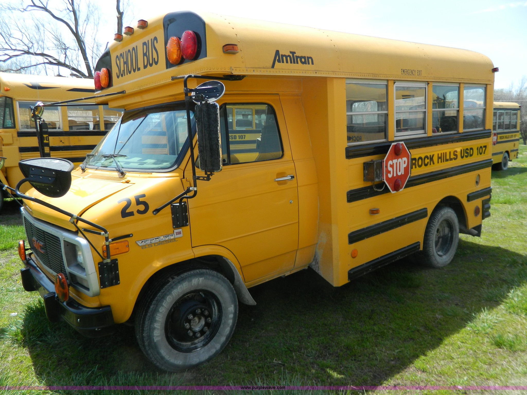 Purple Wave is selling a used Bus in Kansas. This item is a 1994 GMC 3500 school bus with the following: 125,806 miles on odometer, 10 passenger, 6.5L V8 diesel engine, Automatic transmission, Heat, Wheel chair lift, LT225/75R16 tires, Interior/exterior cosmetic damage