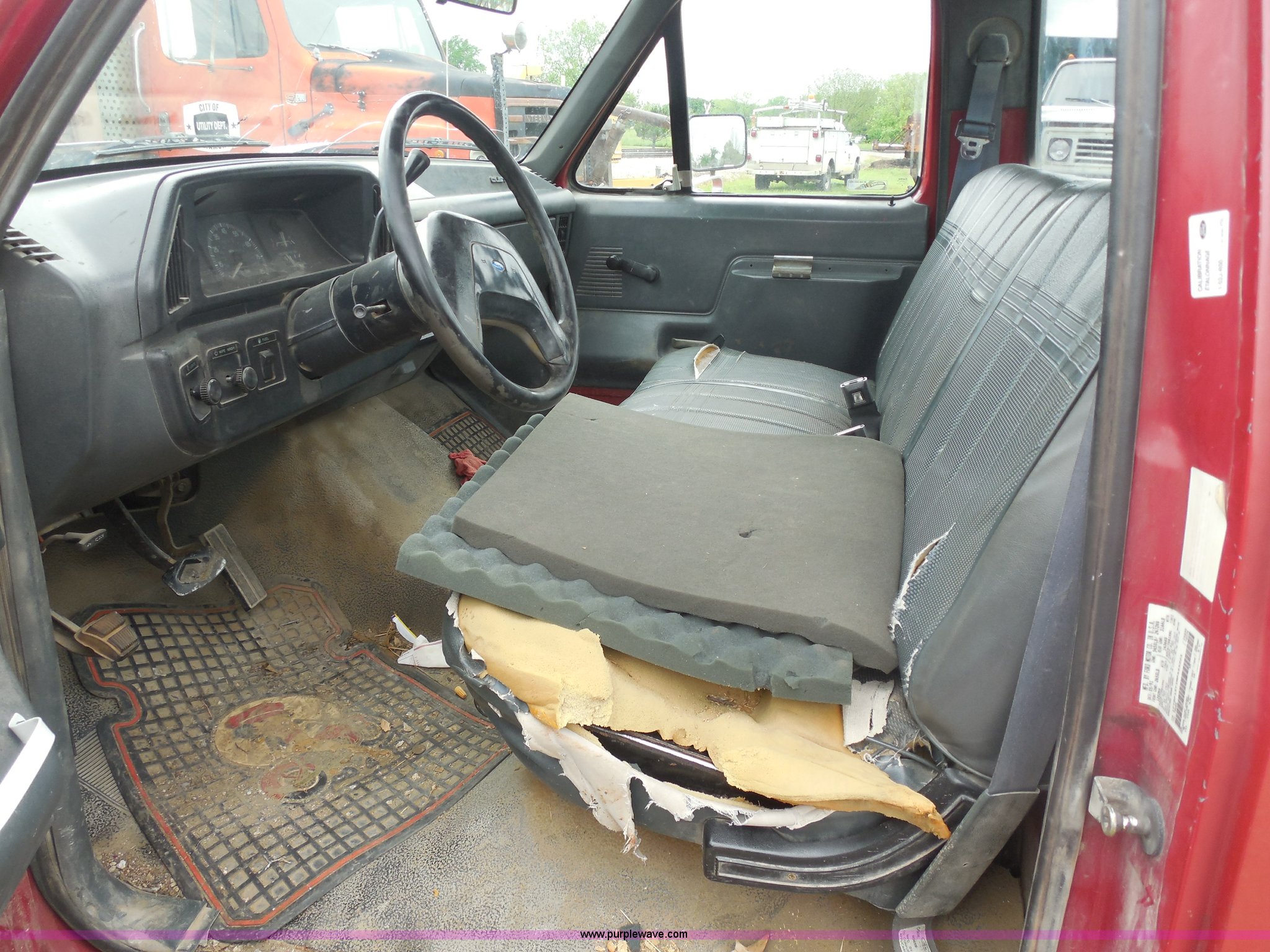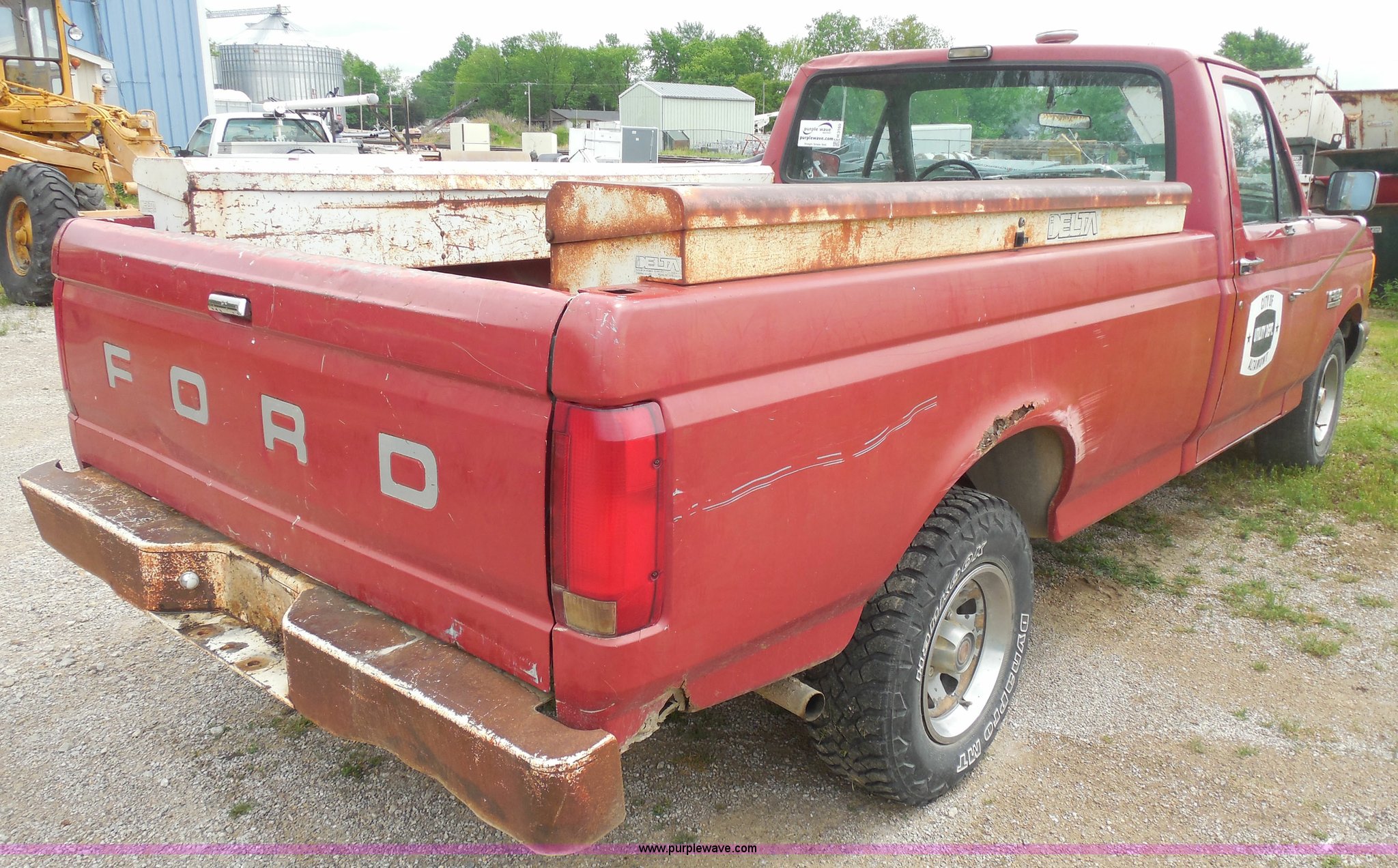 Purple Wave is selling a used Passenger Vehicle in Kansas. This item is a 1991 Ford F150 Custom pickup truck with the following: 96,203 miles on odometer, 4.9L L6 OHV 12V gas engine, Automatic transmission, Heat, AM/FM, Manual windows, Vinyl interior, (2) 86" toolboxes, LT235/75R15 tires, Interior/exterior cosmetic damage, Rust, Cracked windshield