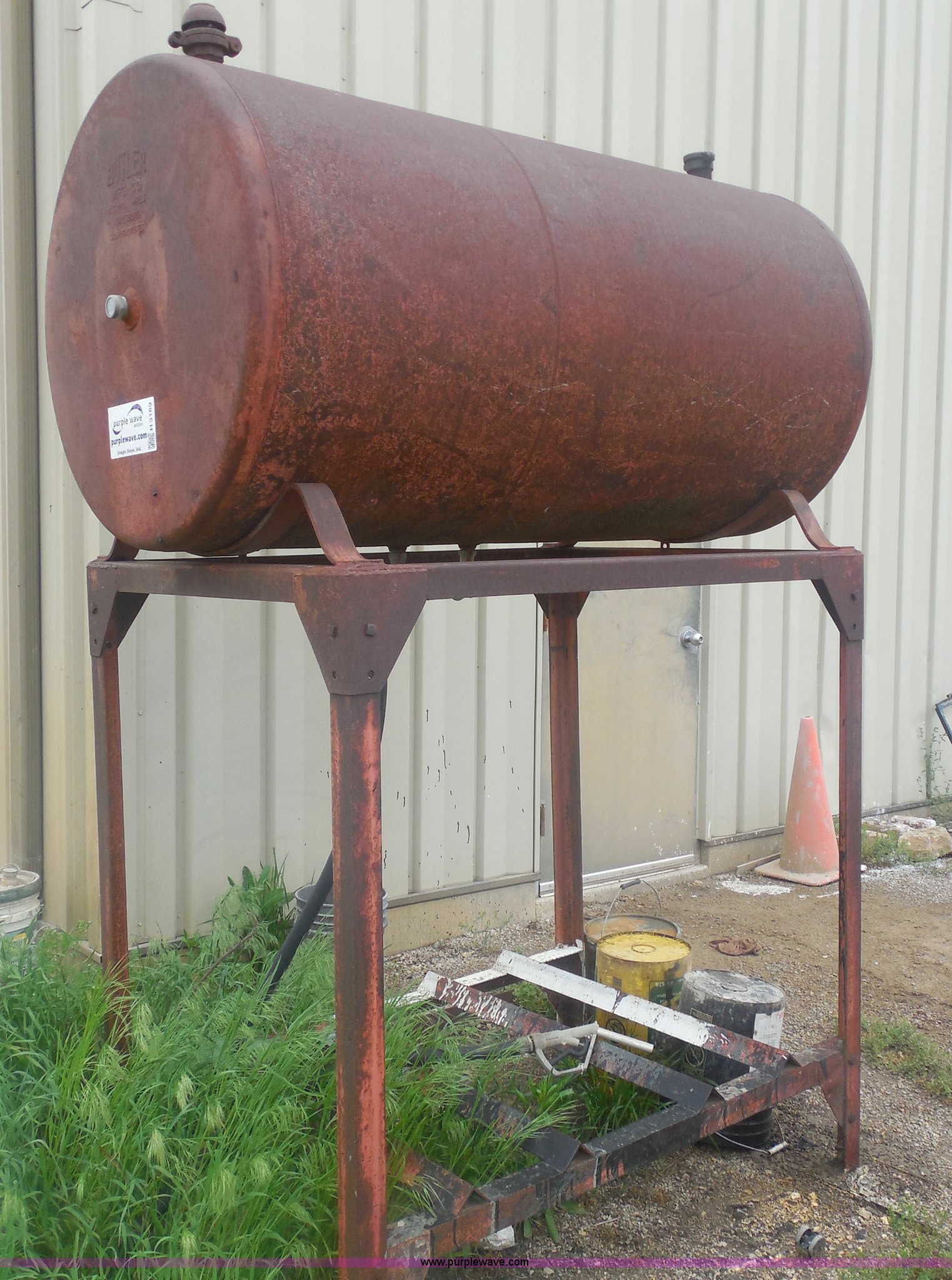 Purple Wave is selling a used Fuel and Lube in Kansas. This item is a S.D. Co. 1946 300 gallon fuel tank with the following: 58" x 42" base, 8'H, Serial 35470