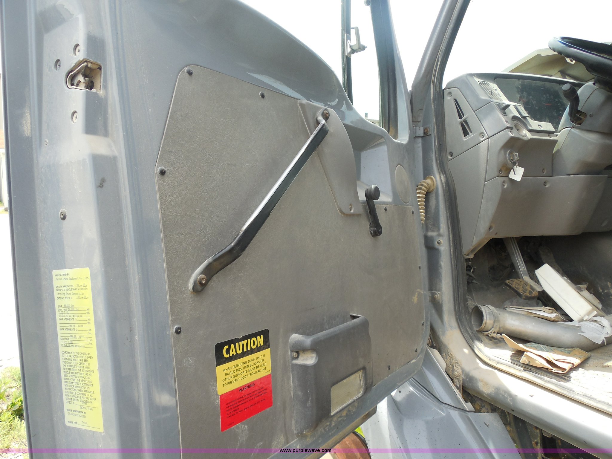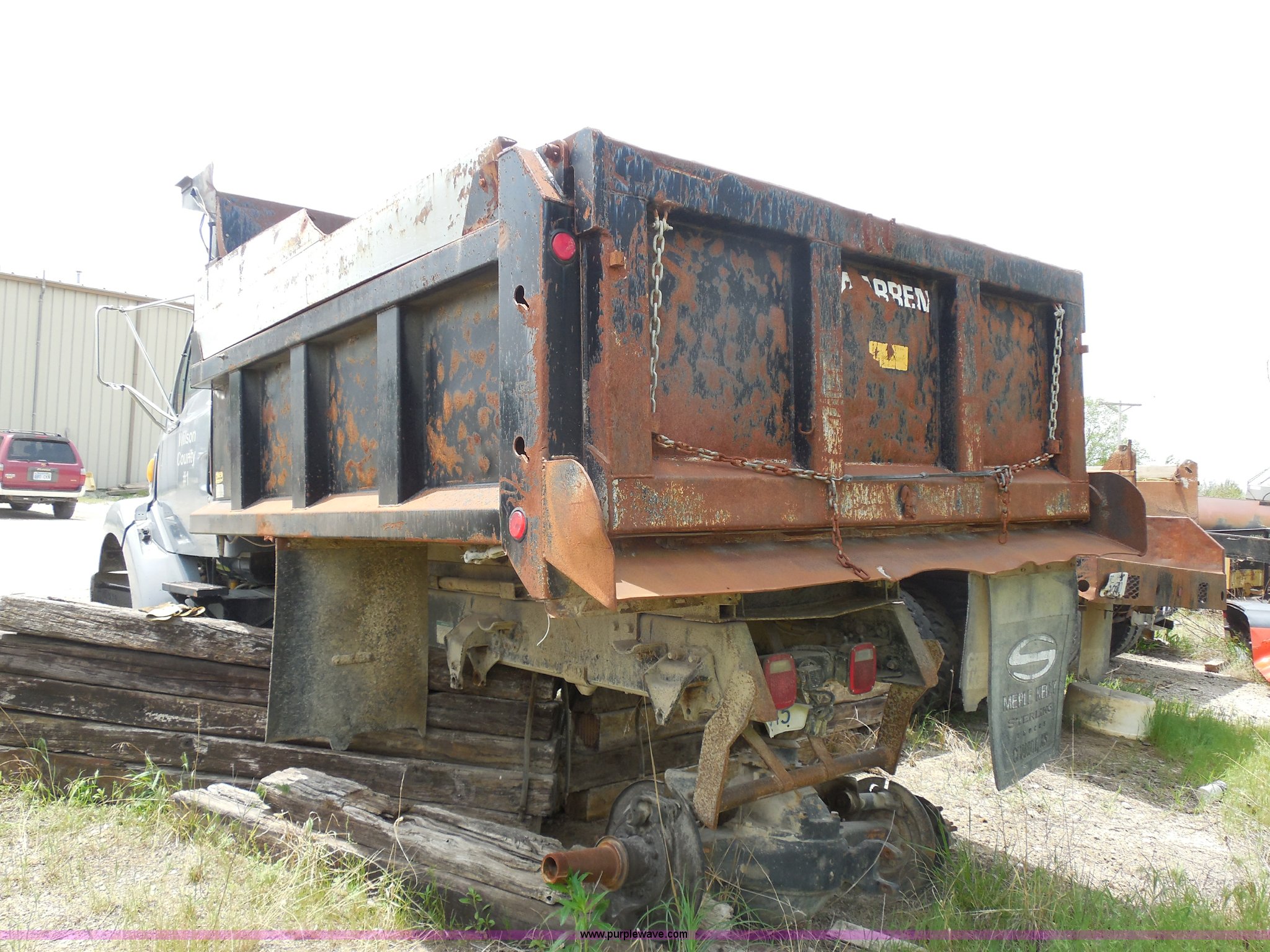 2000 Sterling L7500 dump truck. 77,835 miles on odometer, 506 hours on meter, Caterpillar 3126 7.2L L6 diesel engine , Warren F451-10 dump bed 10'L x 8'W, 6 cu. yd. capacity, Warren T10 hoist Serial HC66027, Manual end gate, Serial B046306, 60 gallon fuel tank, PTO, GVWR 35,000 lbs, FAWR 12,000 lbs, RAWR 23,000 lbs, Driver's seat missing, Unit is inoperable, Parts only. 2FZHAJBB3YAG33263. Shipping quotes available. Wilson County. 10990 Harper Road. Fredonia, KS 66736