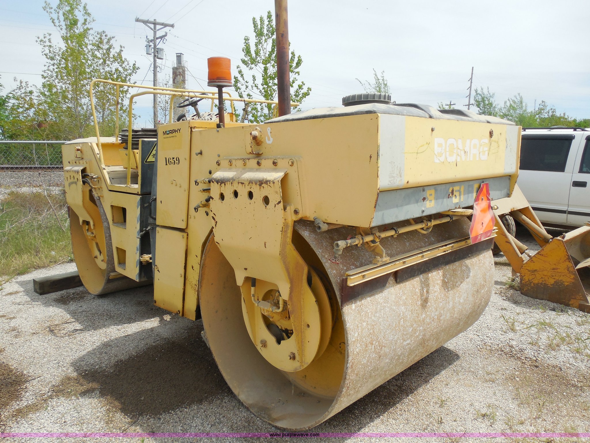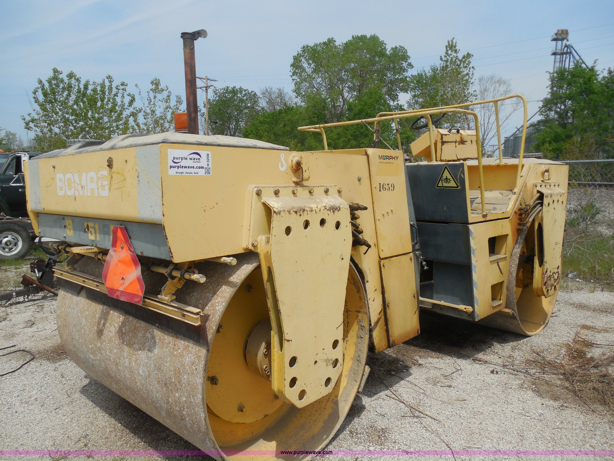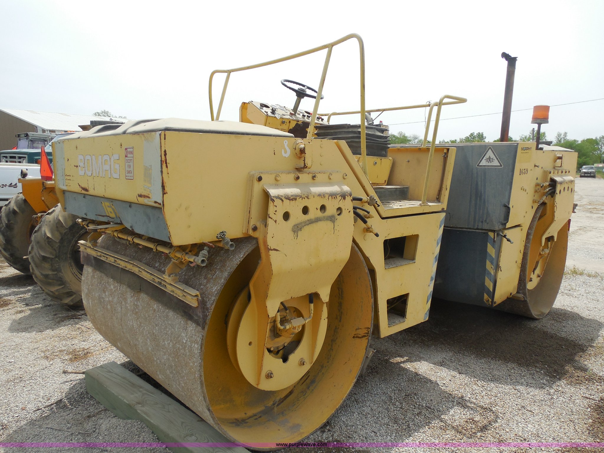 Purple Wave is selling a used Double Drum Roller Compactor in Kansas. This item is a Bomag BW161AD vibratory roller with the following: 3,654 hours on meter, Deutz BF4L913 four cylinder diesel engine, Model 7697761, 66"W x 46" diameter drums, Drum scrapers, Water application system, Runs rough, Serial 101640S00102