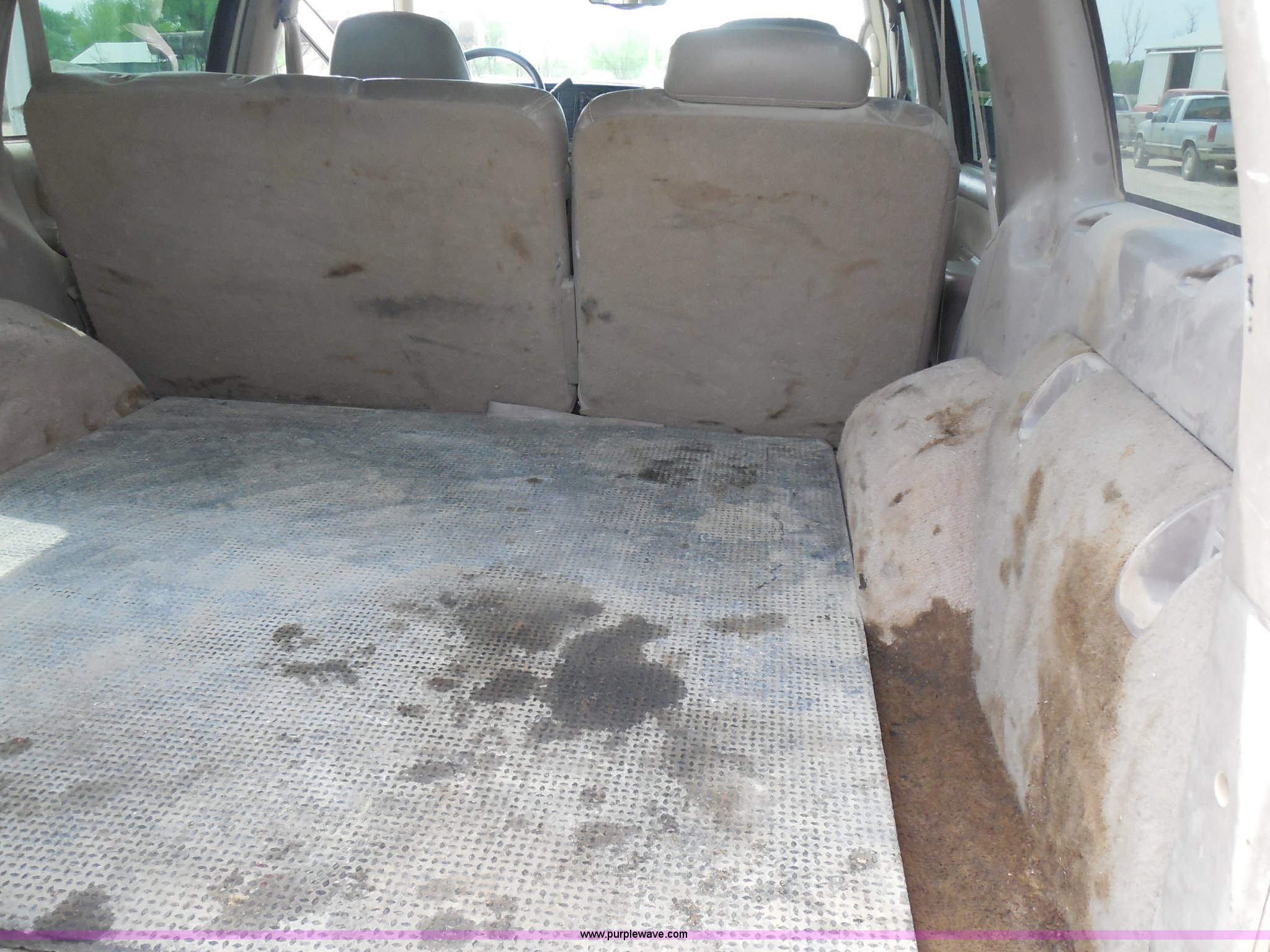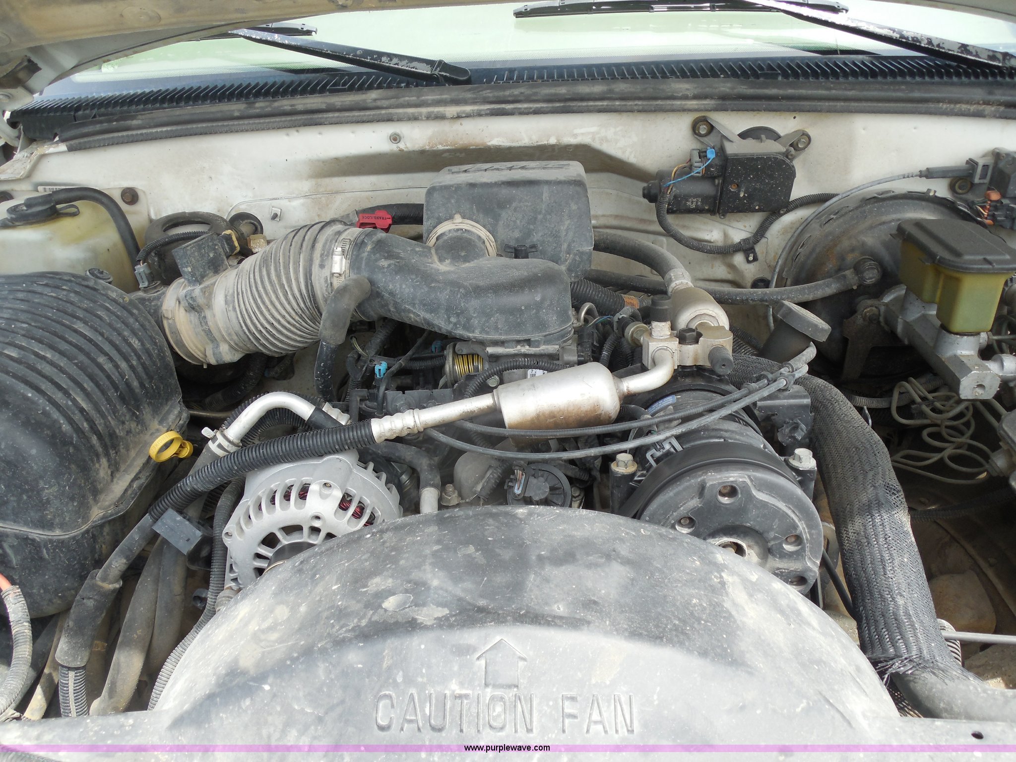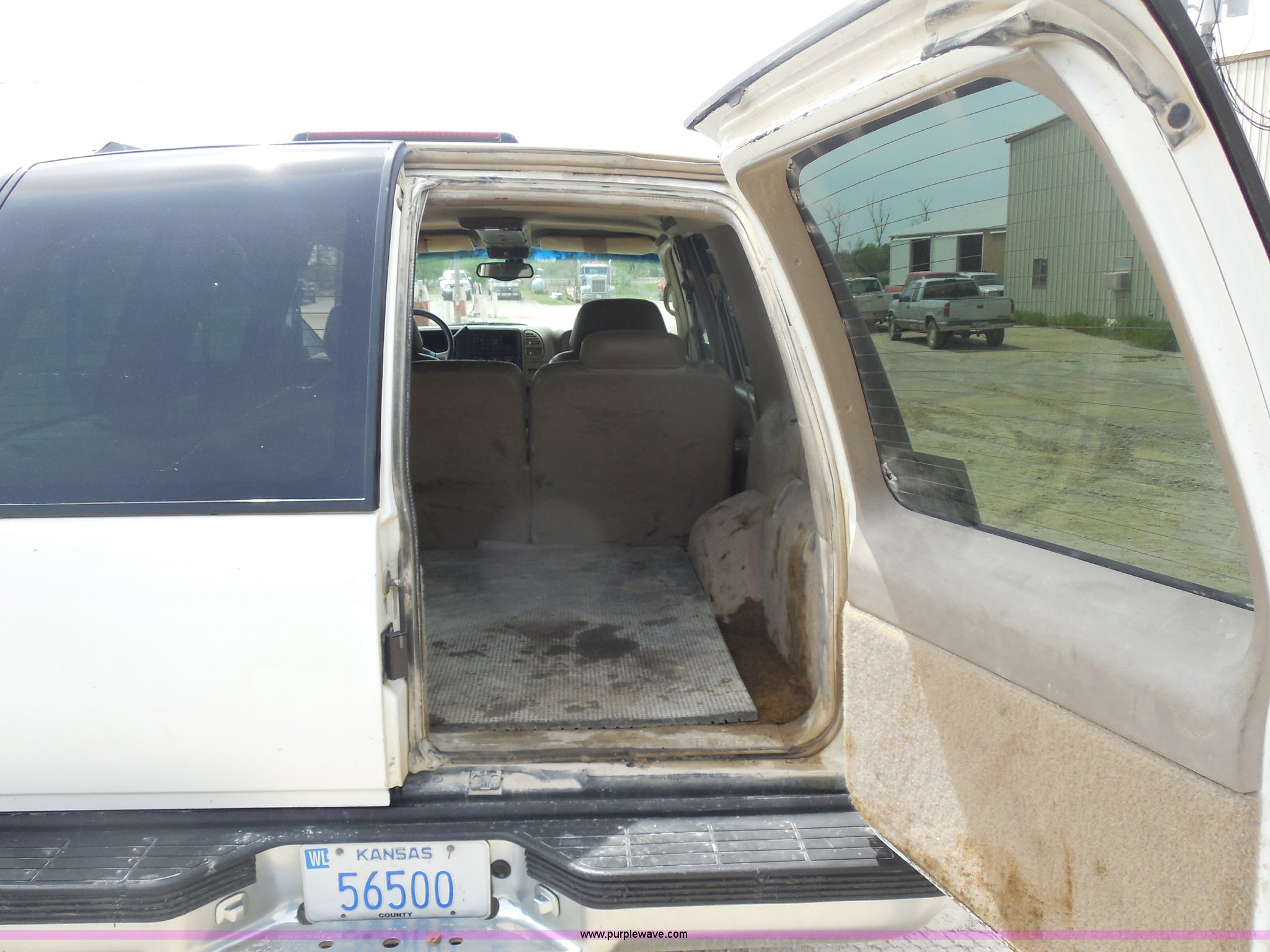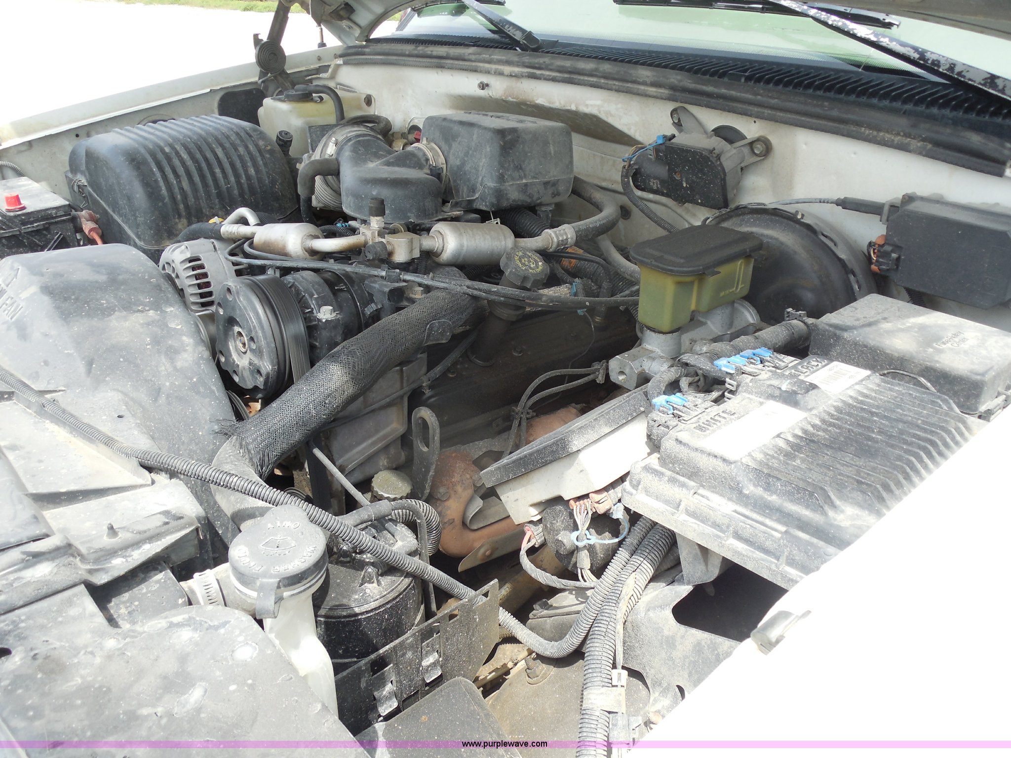 Purple Wave is selling a used Passenger Vehicle in Kansas. This item is a 1997 Chevrolet Tahoe SUV with the following: 226,397 miles on odometer, 5.7L V8 OHV 16V gas engine, Automatic transmission, Four wheel drive, AC and heat, Tilt, Cruise, AM/FM/CD/cassette, Power windows, locks, and mirrors, Leather interior, Front tow hooks, Receiver hitch, LT265/75R16 tires, Windshield cracked, Interior/exterior cosmetic damage, Driver's side locks inoperable, Driver's side trunk gate will not open, Service engine light is on, Starts rough