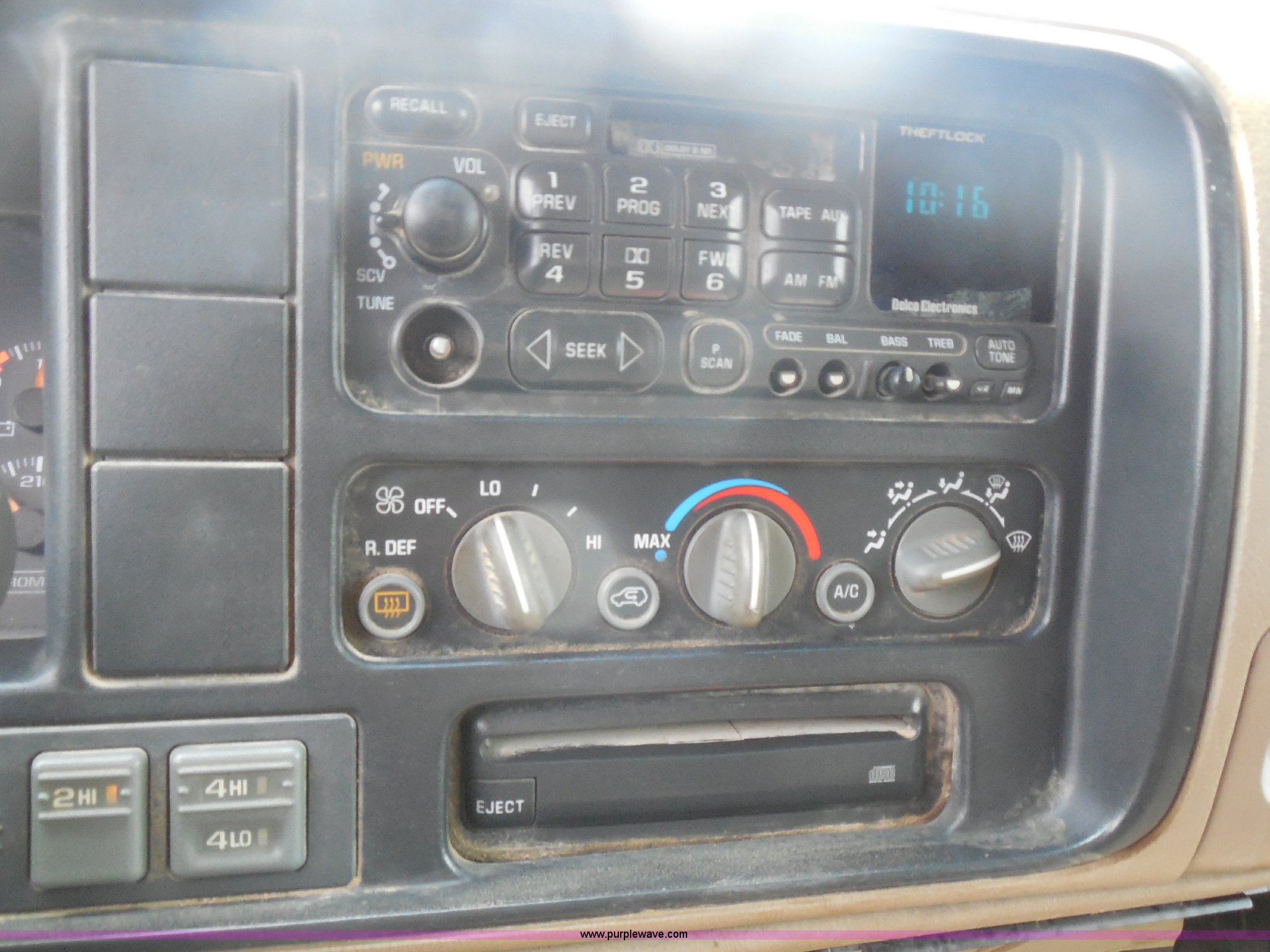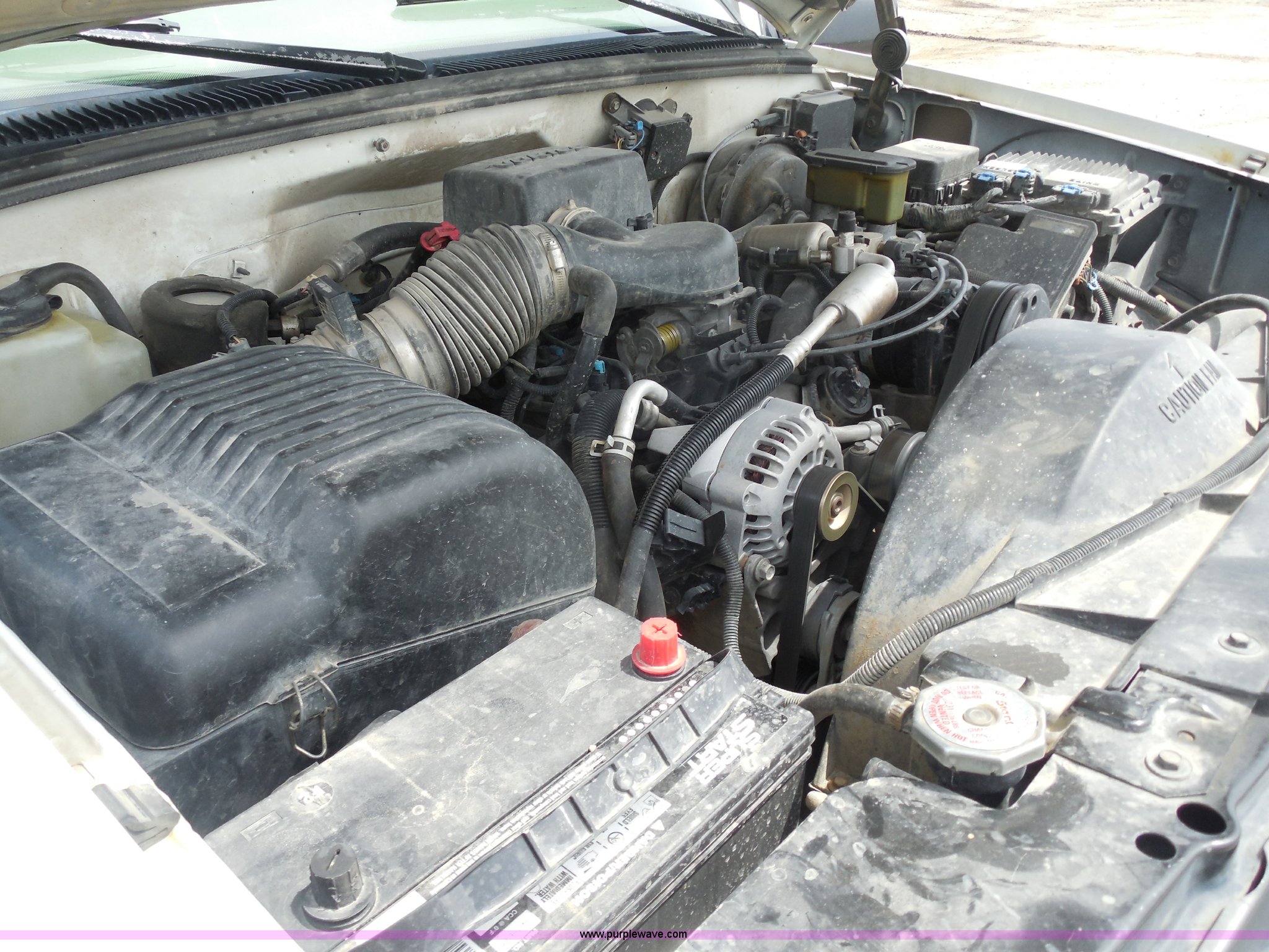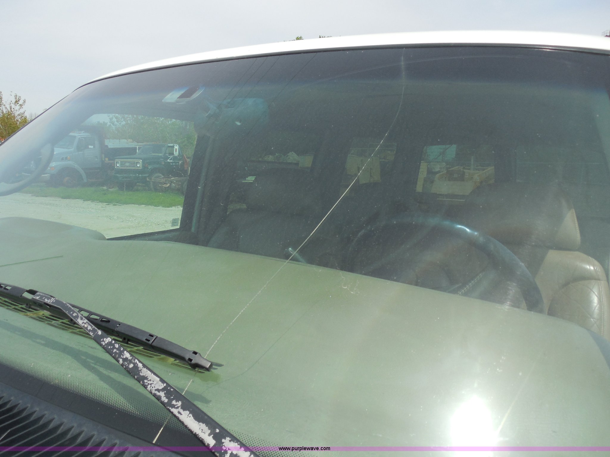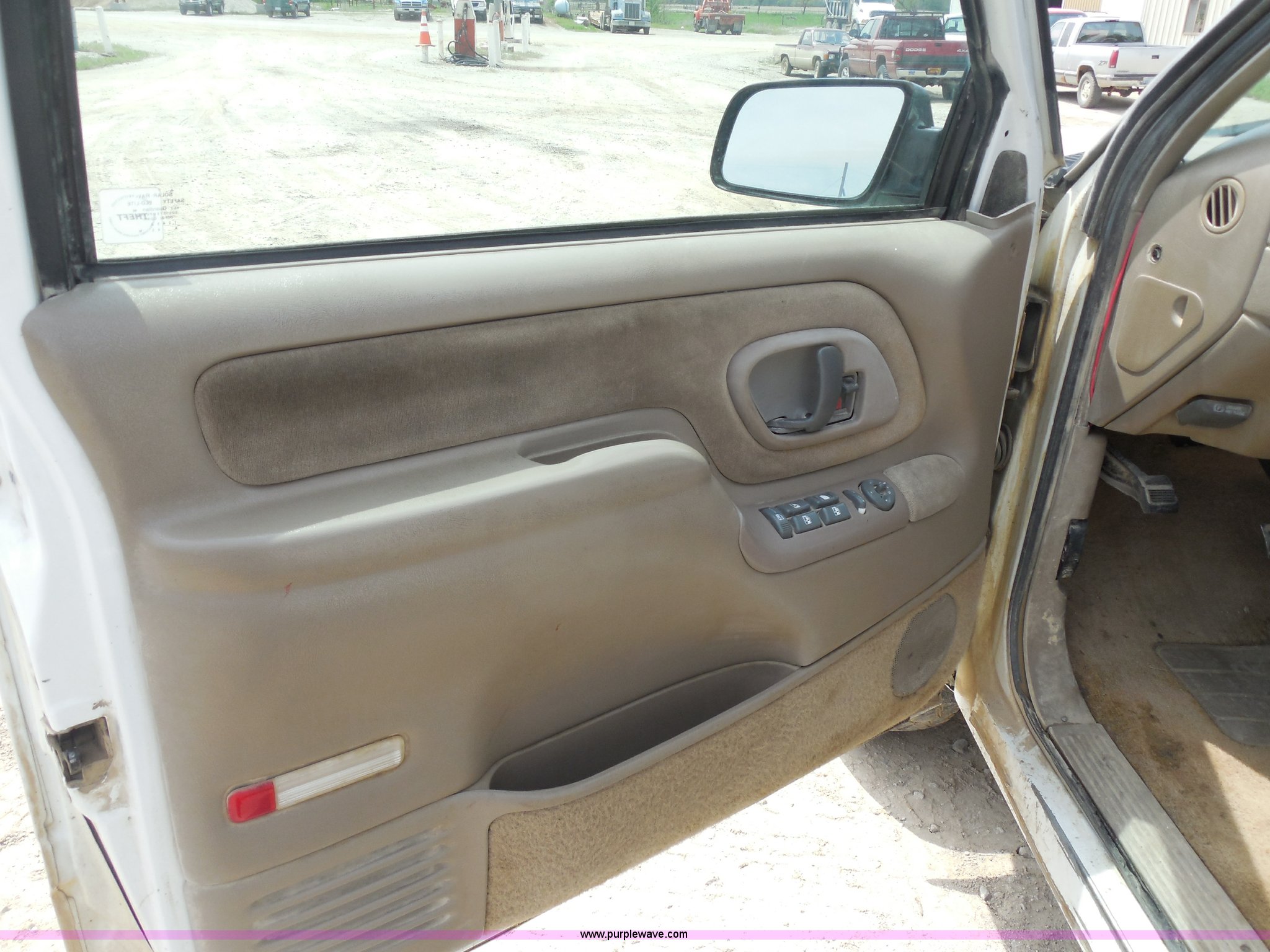 Purple Wave is selling a used Passenger Vehicle in Kansas. This item is a 1997 Chevrolet Tahoe SUV with the following: 226,397 miles on odometer, 5.7L V8 OHV 16V gas engine, Automatic transmission, Four wheel drive, AC and heat, Tilt, Cruise, AM/FM/CD/cassette, Power windows, locks, and mirrors, Leather interior, Front tow hooks, Receiver hitch, LT265/75R16 tires, Windshield cracked, Interior/exterior cosmetic damage, Driver's side locks inoperable, Driver's side trunk gate will not open, Service engine light is on, Starts rough