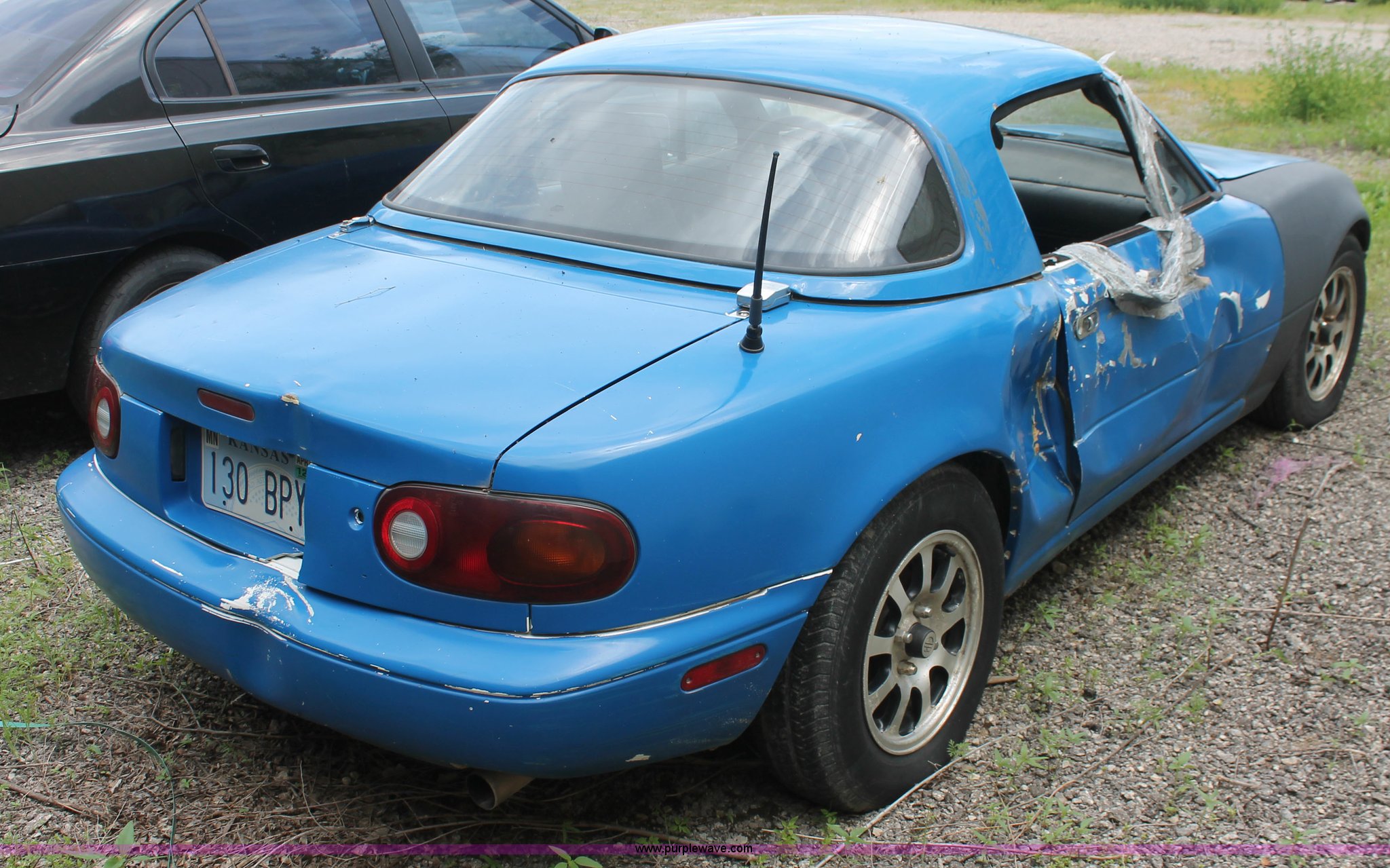 Purple Wave is selling a used Passenger Vehicle in Kansas. This item is a 1992 Mazda MX-5 Miata with the following: 176,702 miles on odometer, 1.6L L4 DOHC 16V gas engine, Manual transmission, AC and heat, Kenwood AM/FM/CD, Manual windows and locks, Cloth interior, 185/70R14 tires, Paint chipped, Window missing, Passenger collision damage, Interior/exterior cosmetic damage, Unknown operating condition, CAD# 191749, Case# 11-1565
