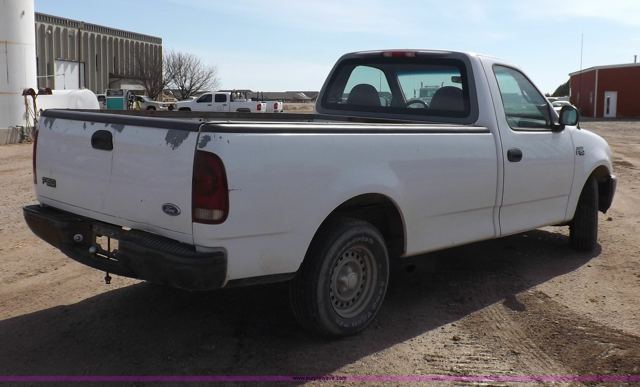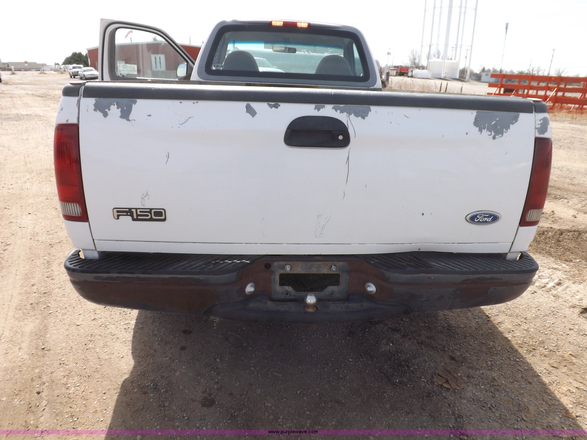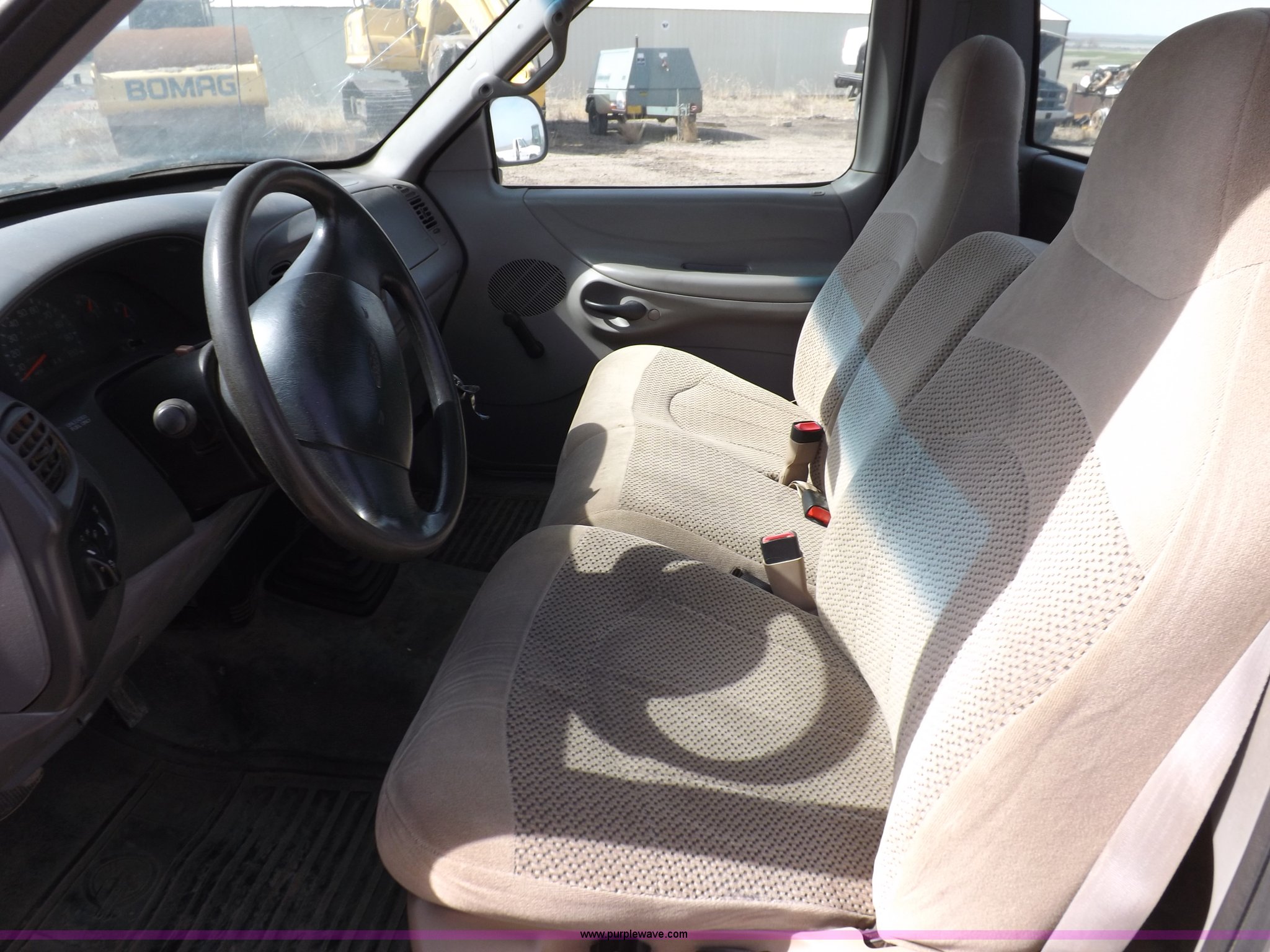 Purple Wave is selling a used Passenger Vehicle in Kansas. This item is a 1997 Ford F150 pickup truck with the following: 119,284 miles on odometer, 4.2L V6 OHV 12V gas engine, Five speed manual transmission, AC and heat, AM/FM/cassette, Manual windows and locks, Cloth interior, Long bed, Bed mat, Angle iron bed railing, 2" ball, Trailer wiring, 225/75R16 tires, Interior/exterior cosmetic damage, Paint damage, Dents, Broken windshield, Hail damage, Unknown running condition, will not start