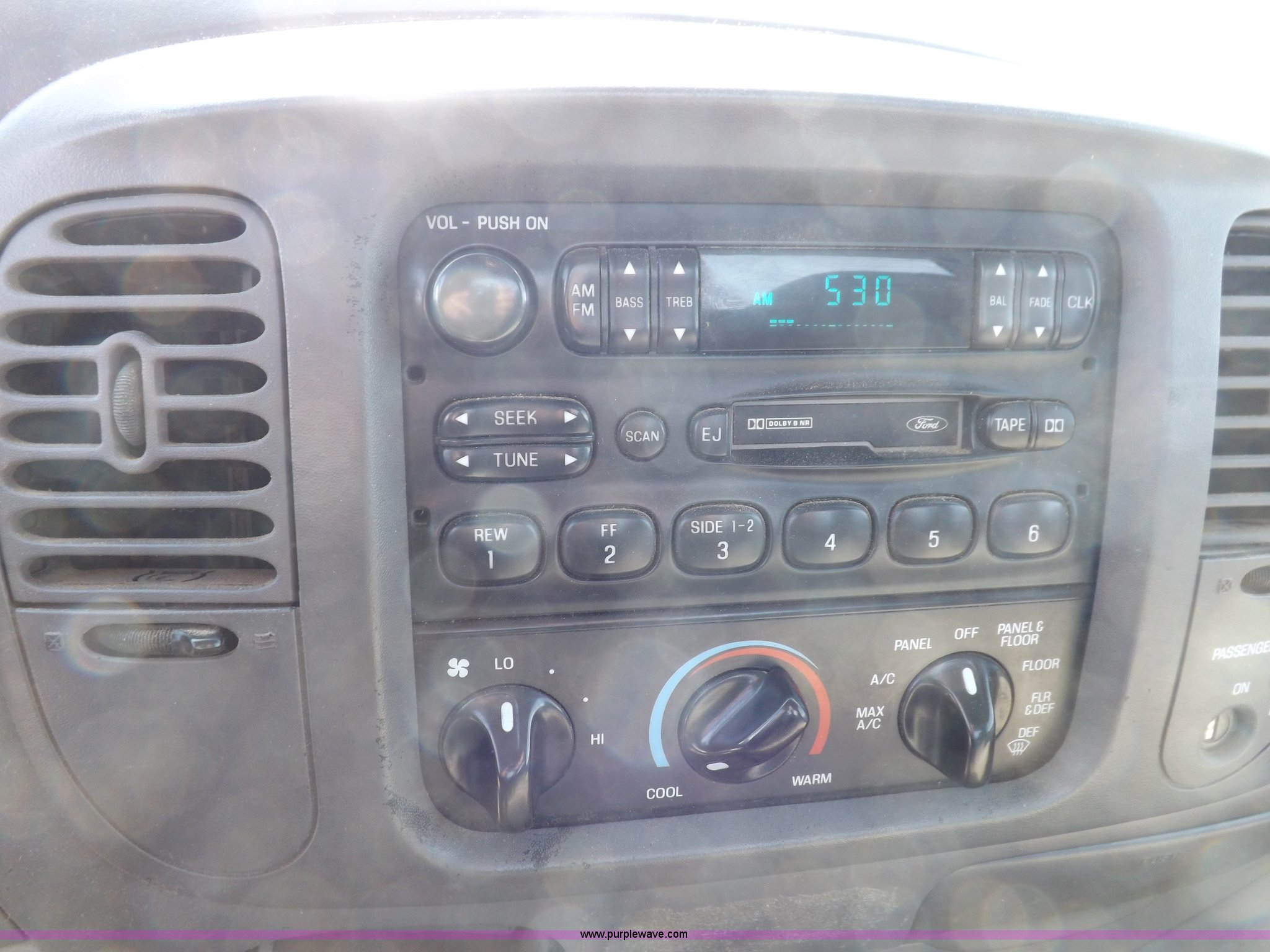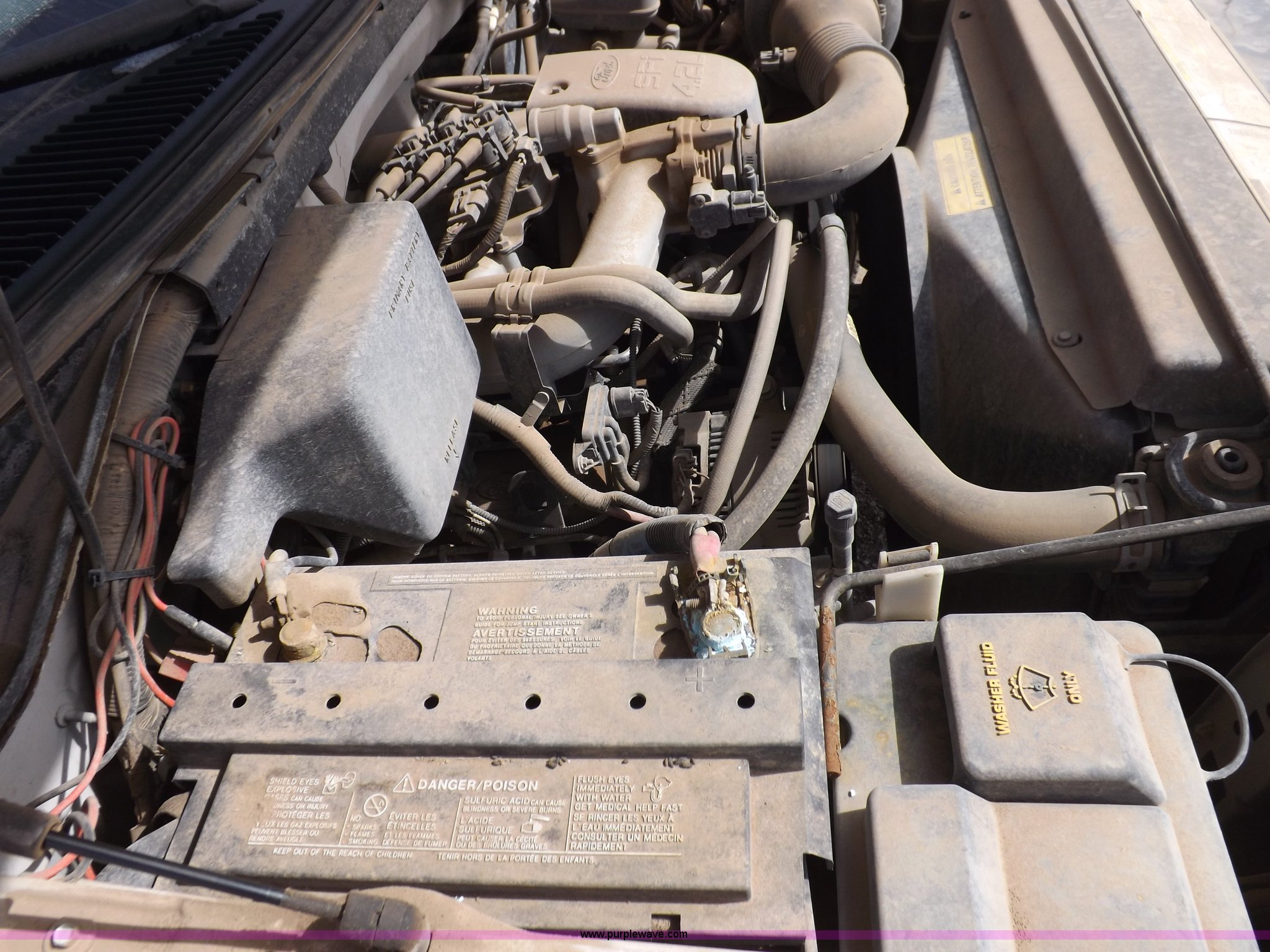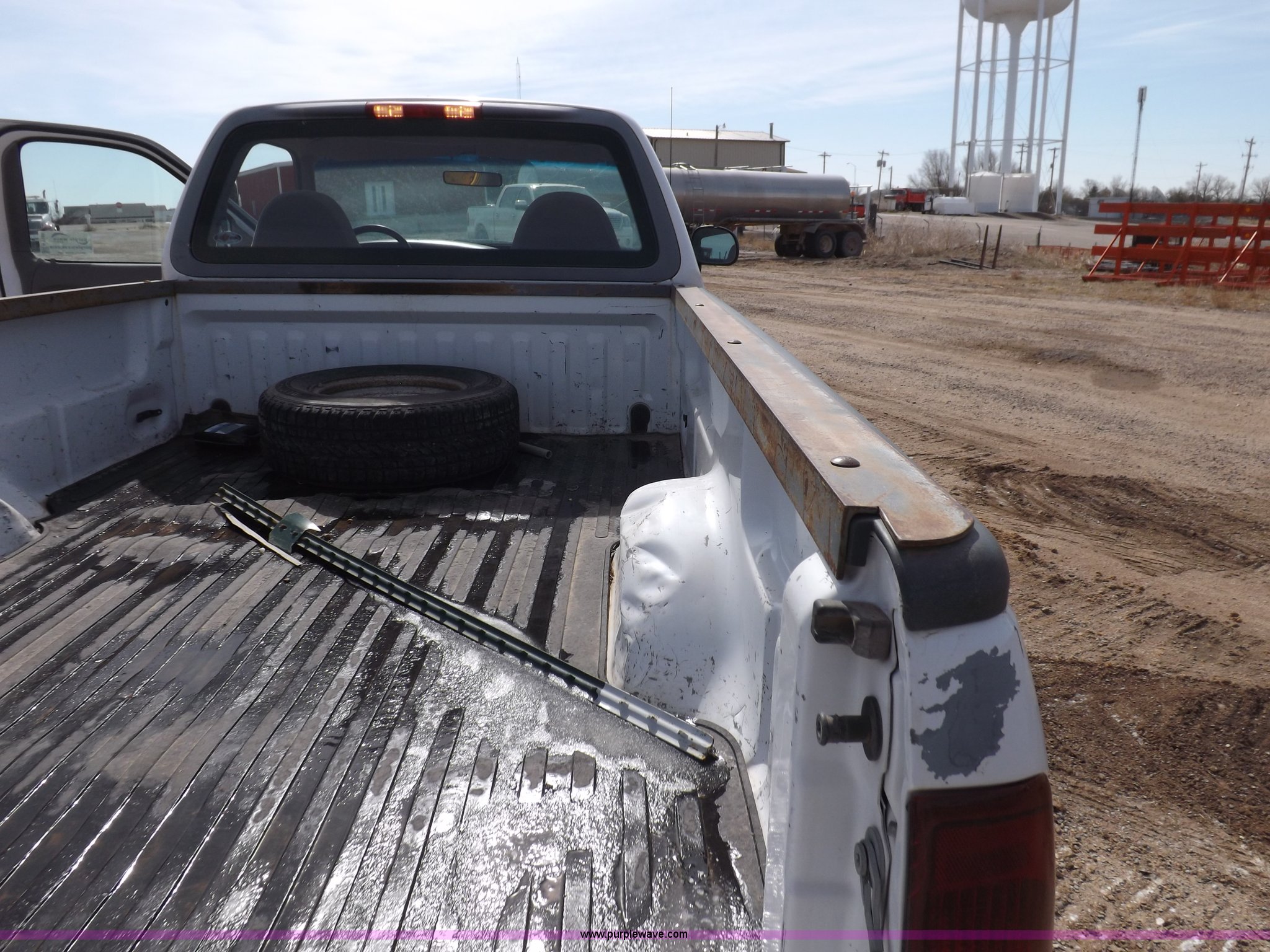 Purple Wave is selling a used Passenger Vehicle in Kansas. This item is a 1997 Ford F150 pickup truck with the following: 119,284 miles on odometer, 4.2L V6 OHV 12V gas engine, Five speed manual transmission, AC and heat, AM/FM/cassette, Manual windows and locks, Cloth interior, Long bed, Bed mat, Angle iron bed railing, 2" ball, Trailer wiring, 225/75R16 tires, Interior/exterior cosmetic damage, Paint damage, Dents, Broken windshield, Hail damage, Unknown running condition, will not start