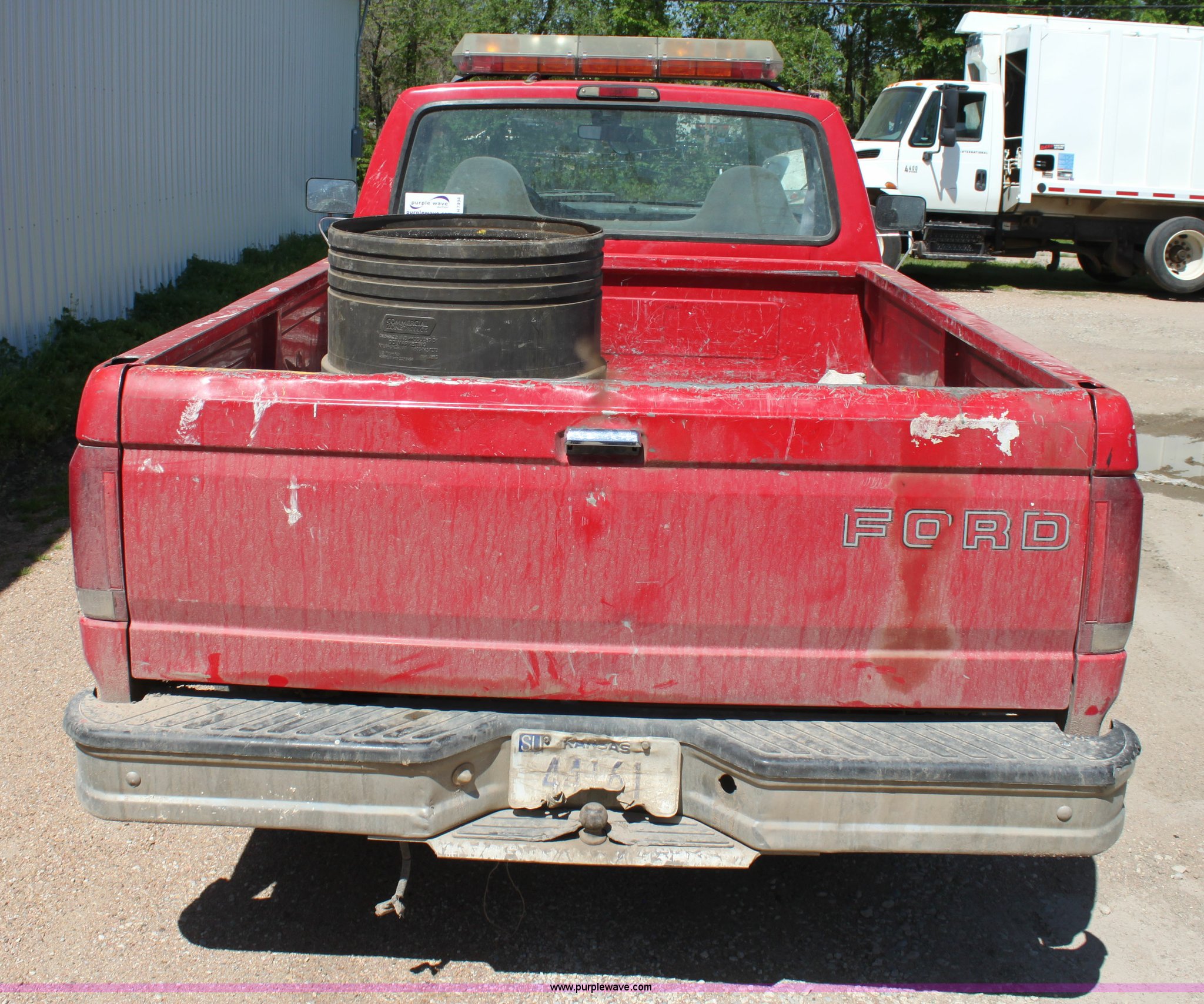 1996 Ford F250 Heavy Duty XL pickup truck. 94,472 miles on odometer, 5.8L V8 OHV 16V gas engine, Automatic transmission, AC and heat, AM/FM, Manual windows and locks, Code 3 in-cab controls, Roof top light bar, 215/85R16 tires, Interior/exterior cosmetic damage, Gear shift selector broken in dash, Fuel pump in rear tank inoperable, Cracked windshield, Contents not included. 1FTEF25H9TLB38962. Shipping quotes available. City of Belle Plaine. Belle Plaine, KS 67013