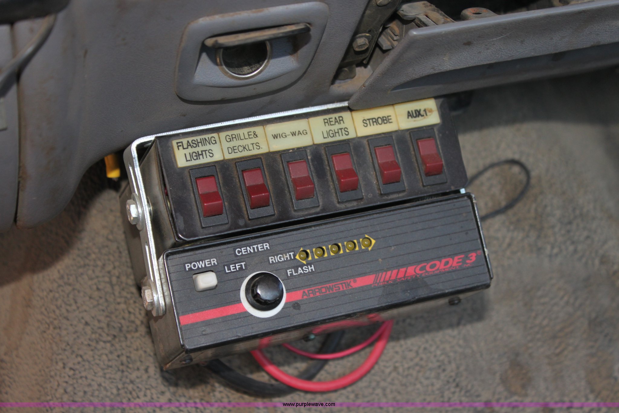 Purple Wave is selling a used Passenger Vehicle in Kansas. This item is a 1996 Ford F250 Heavy Duty XL pickup truck with the following: 94,472 miles on odometer, 5.8L V8 OHV 16V gas engine, Automatic transmission, AC and heat, AM/FM, Manual windows and locks, Code 3 in-cab controls, Roof top light bar, 215/85R16 tires, Interior/exterior cosmetic damage, Gear shift selector broken in dash, Fuel pump in rear tank inoperable, Cracked windshield, Contents not included