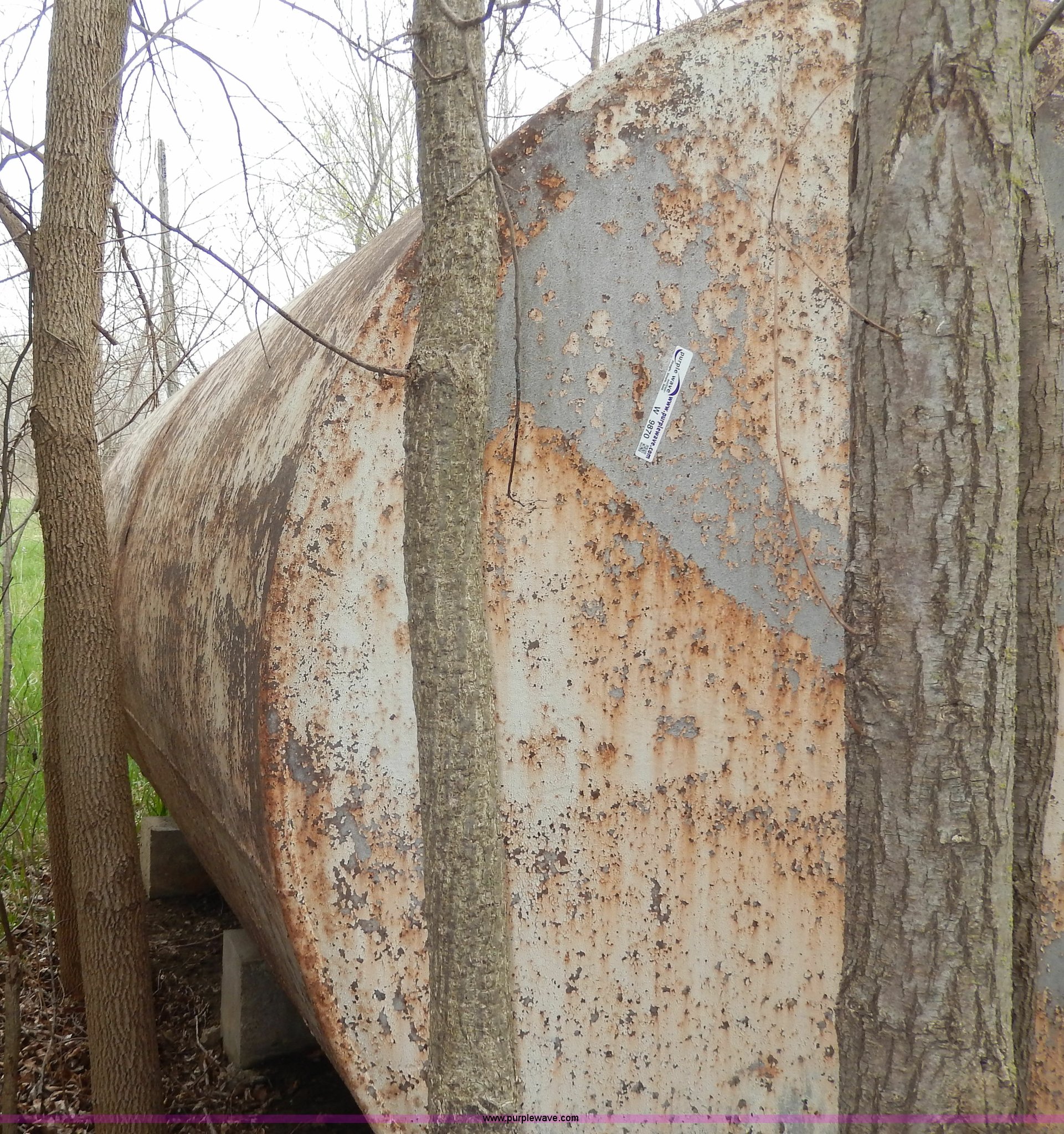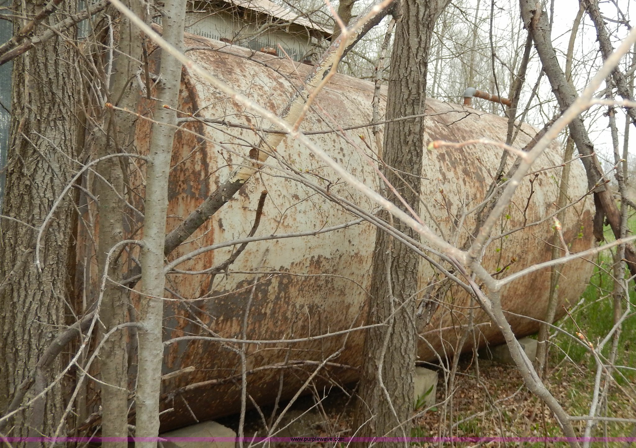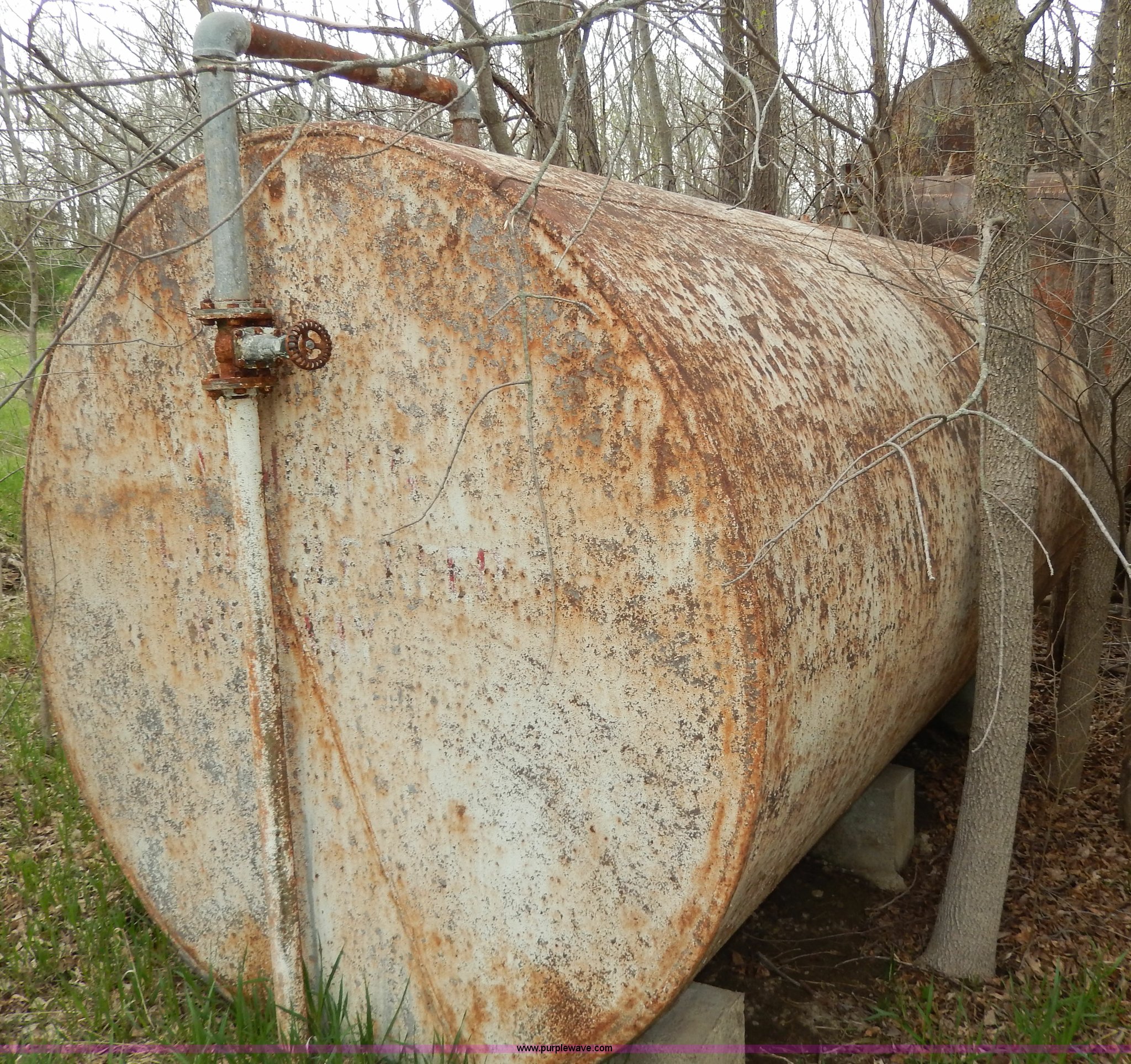 Purple Wave is selling a used Fuel and Lube in Kansas. This item is a Fuel tank with the following: 12'L x 7' diameter, Trees will be removed prior to auciton