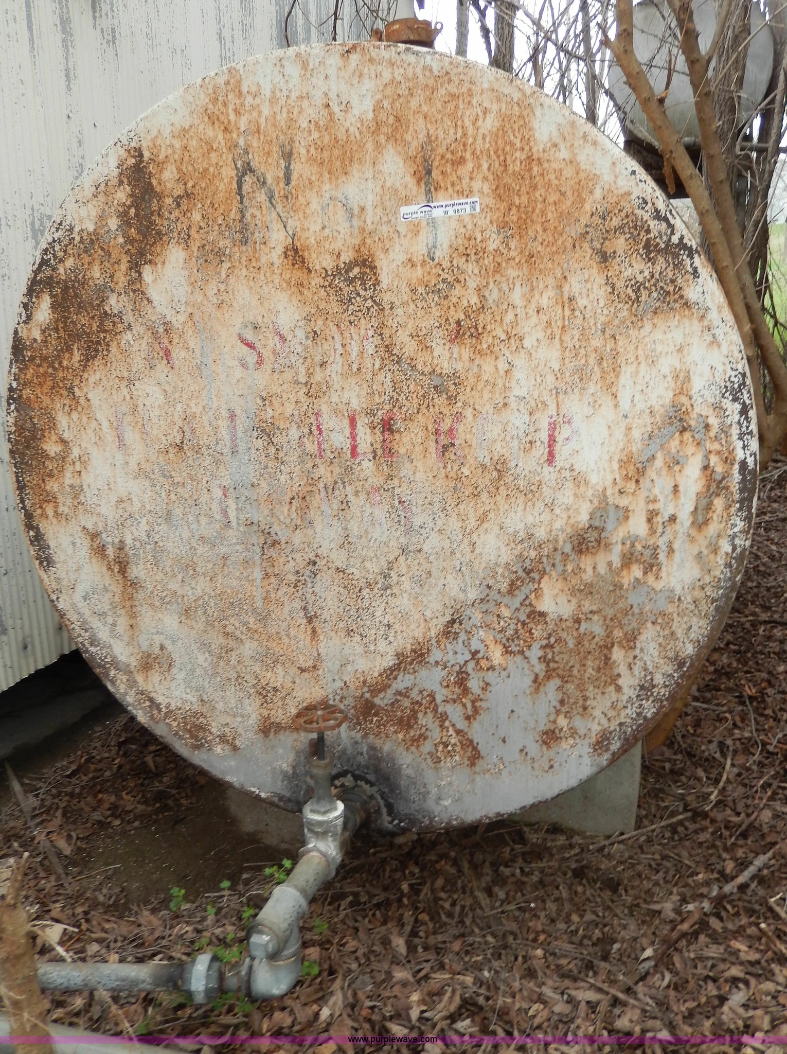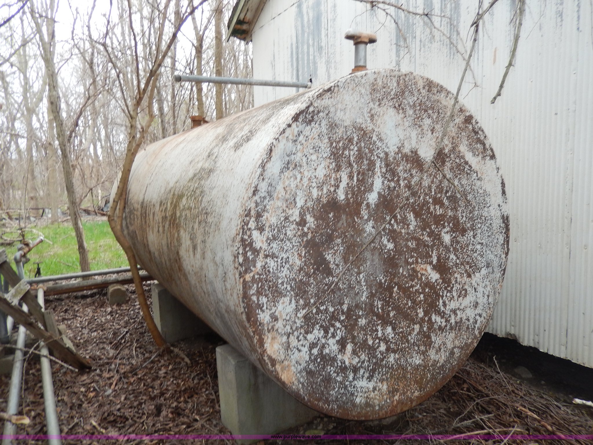 Purple Wave is selling a used Fuel and Lube in Kansas. This item is a Fuel tank with the following: 12'L x 5.5' diameter, Trees will be removed prior to auction