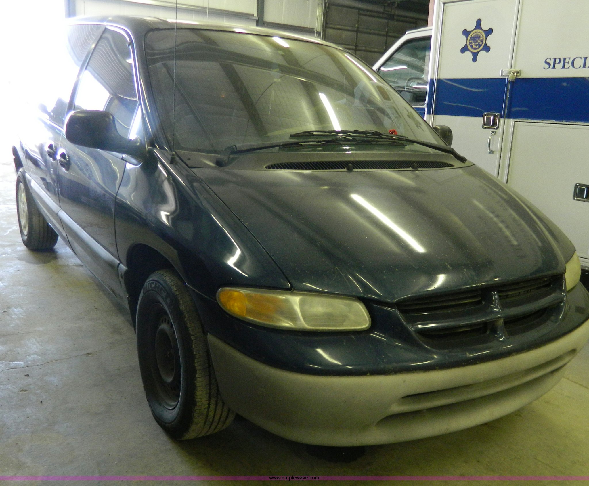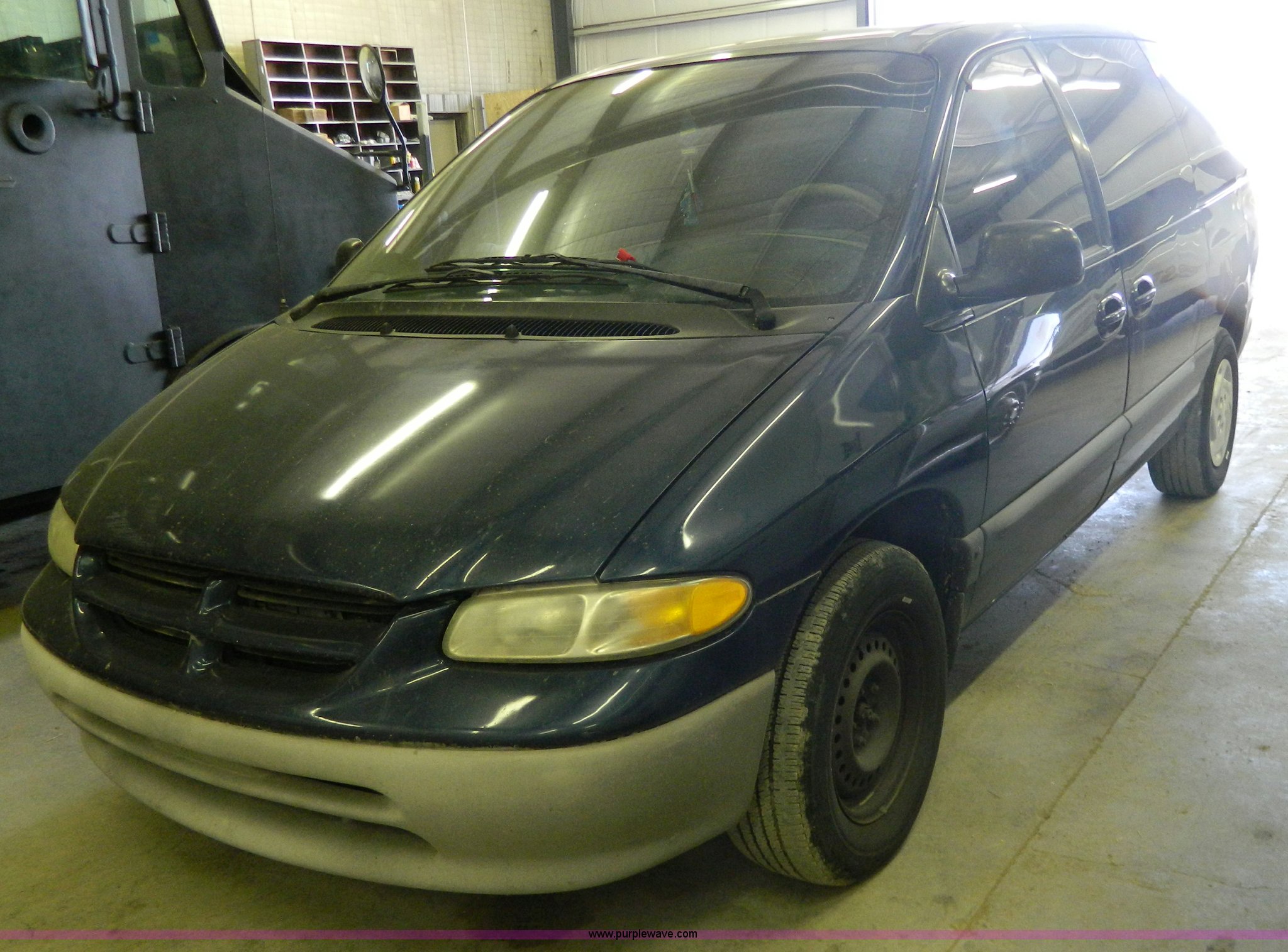 Purple Wave is selling a used Passenger Vehicle in Kansas. This item is a 2000 Dodge Grand Caravan SE van with the following: 156,384 miles on odometer, 3.3L V6 OHV 12V FFV gas engine, Automatic transmission, AC and heat, Tilt, Cruise, AM/FM/CD, Power windows, locks, and mirrors, Weak battery, Hub caps missing, Windshield cracked, Interior/exterior cosmetic damage