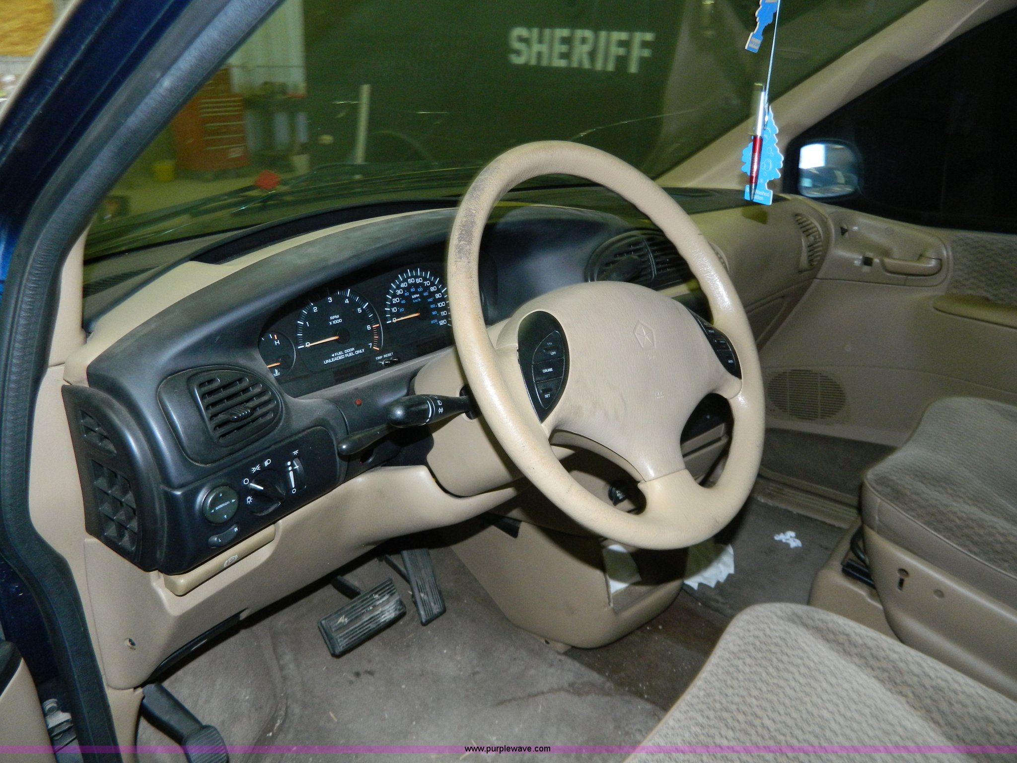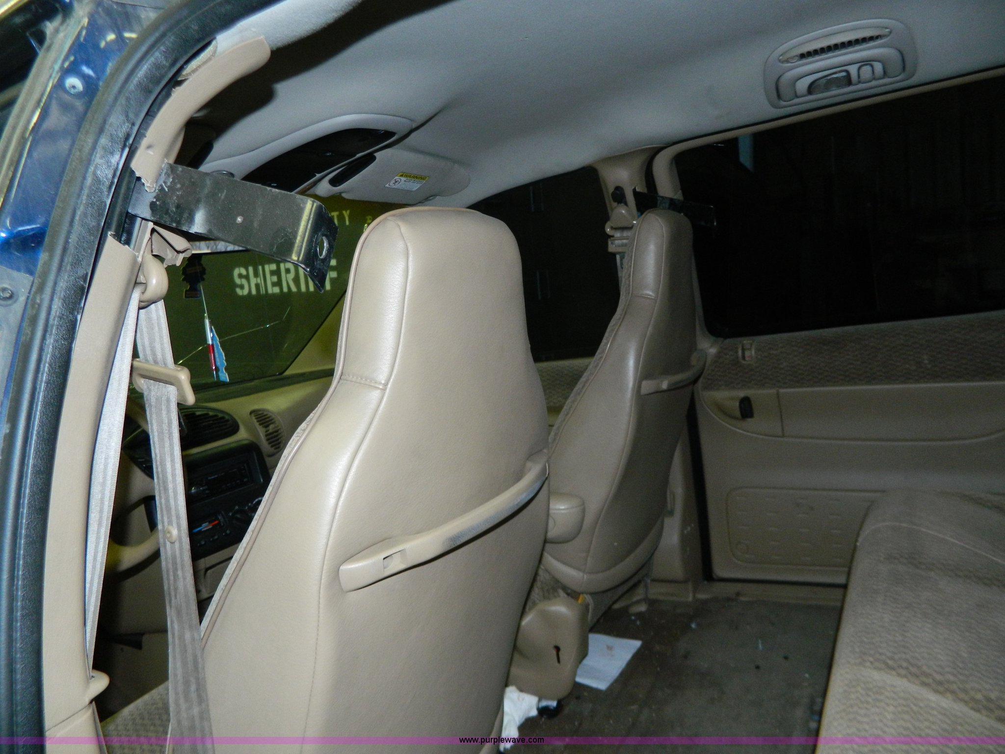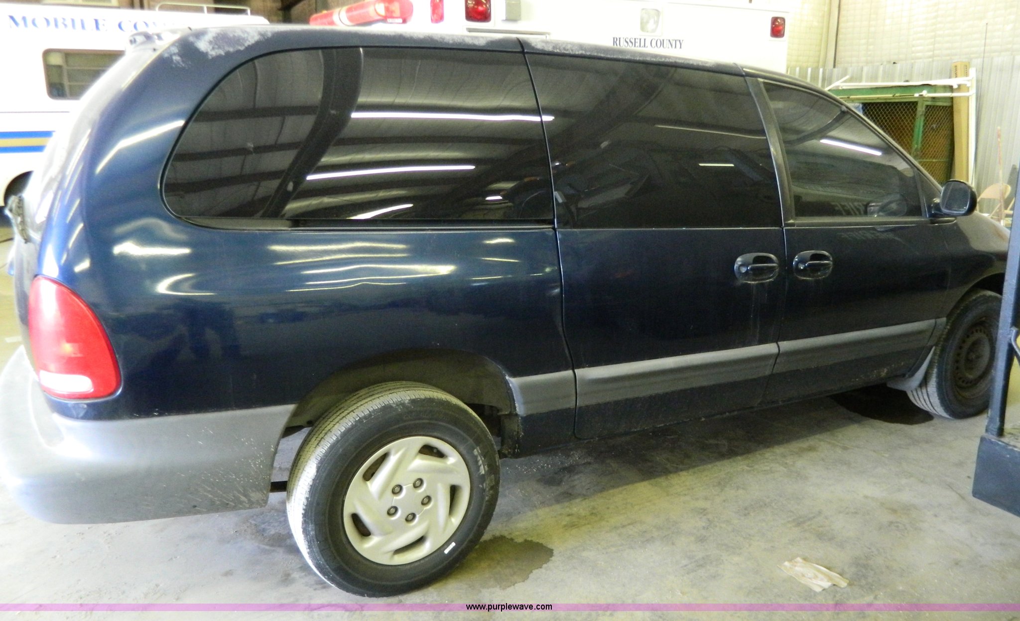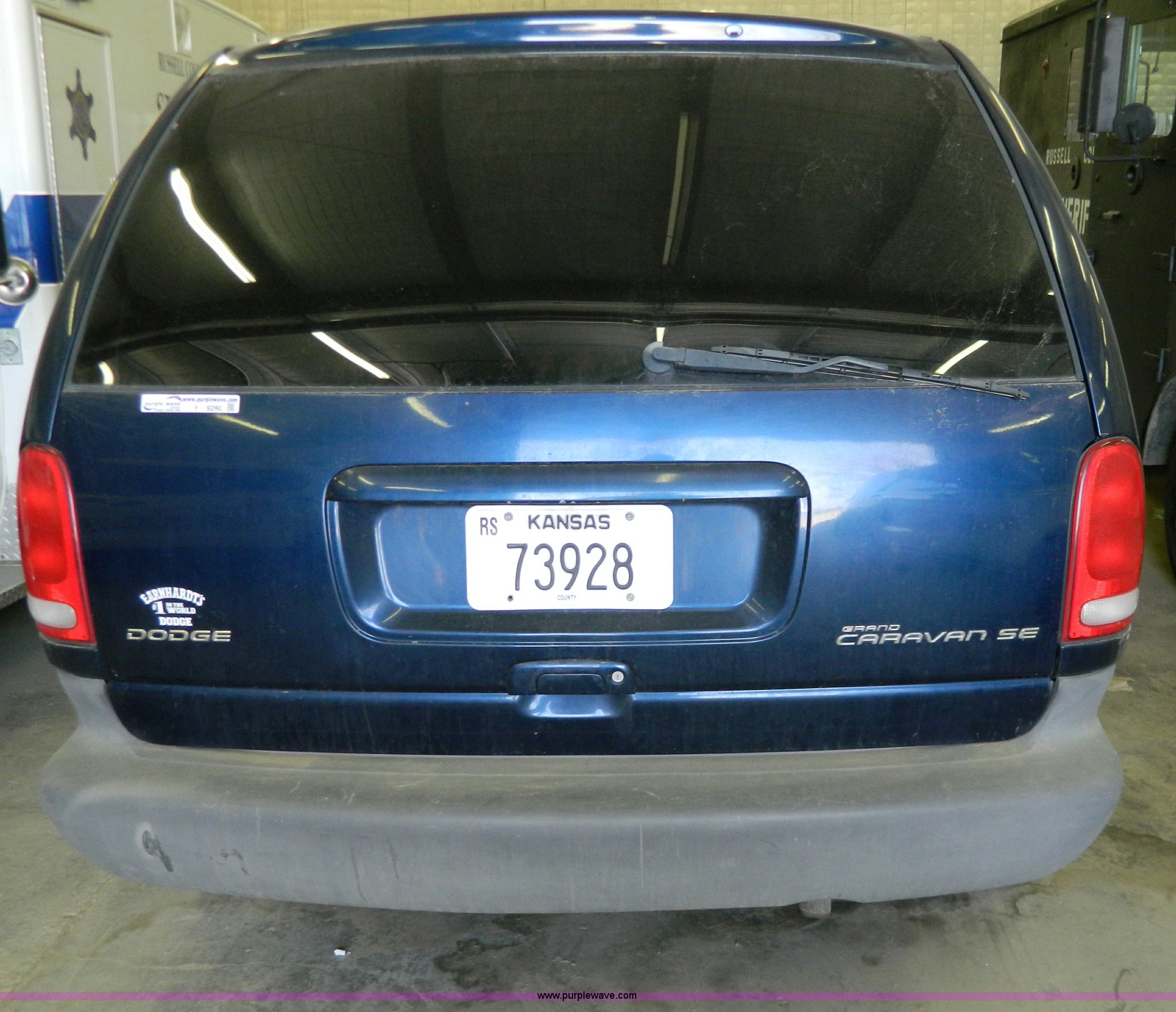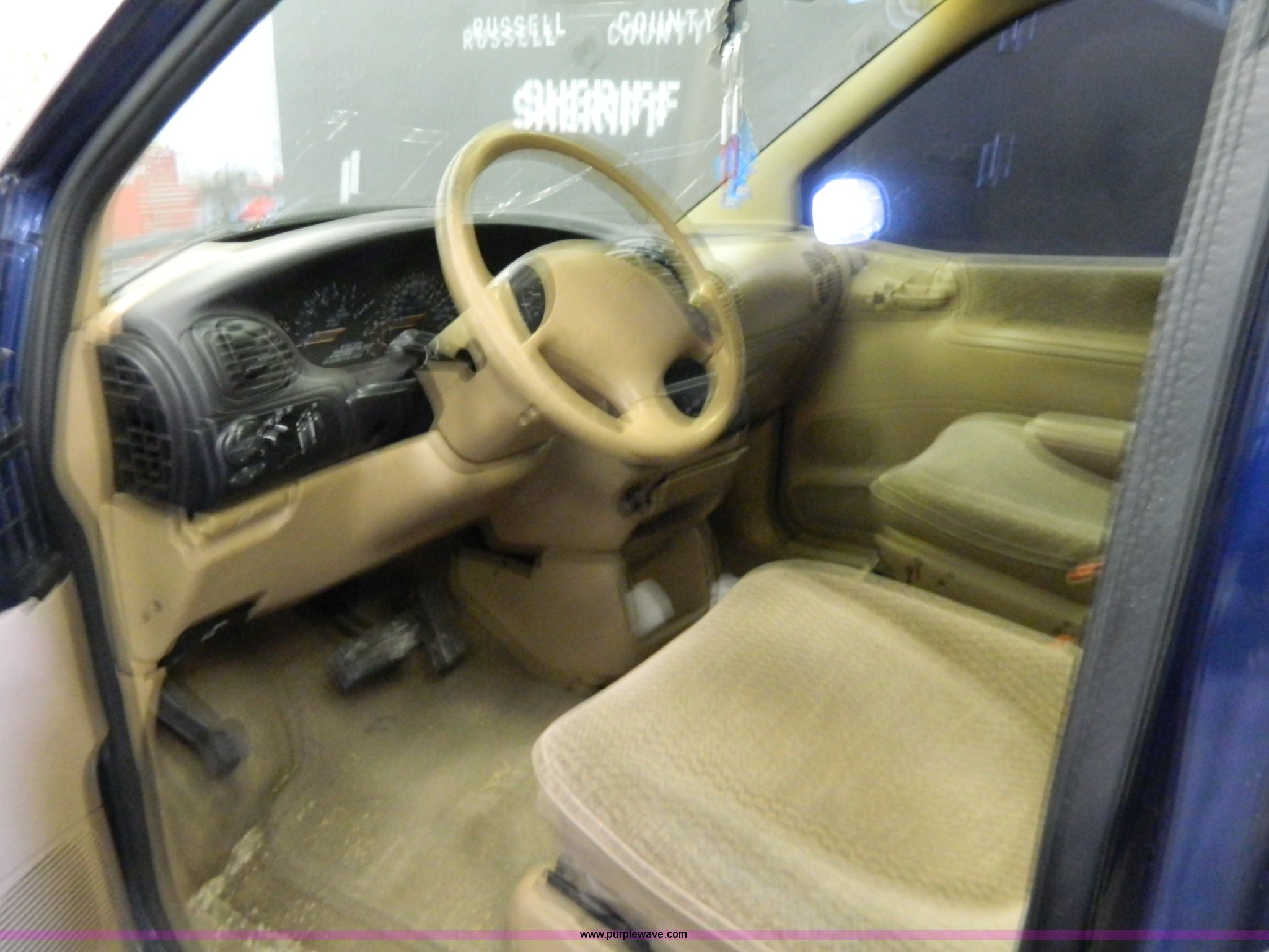 2000 Dodge Grand Caravan SE van. 156,384 miles on odometer, 3.3L V6 OHV 12V FFV gas engine, Automatic transmission, AC and heat, Tilt, Cruise, AM/FM/CD, Power windows, locks, and mirrors, Weak battery, Hub caps missing, Windshield cracked, Interior/exterior cosmetic damage. 1B4GP44G3YB804850. Shipping quotes available. Russell County Sheriff. 1215 West Wichita Avenue. Russell, KS 67665