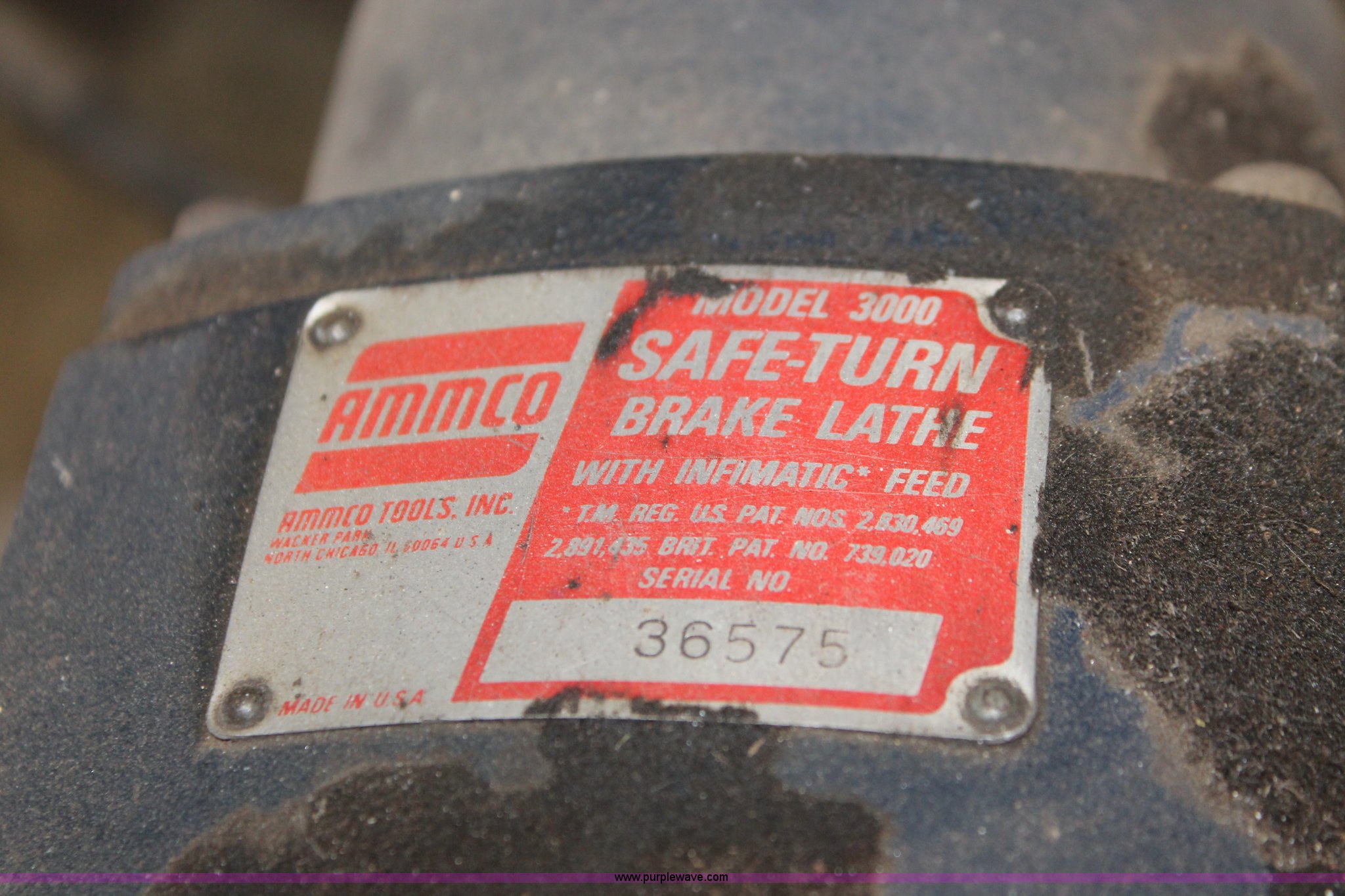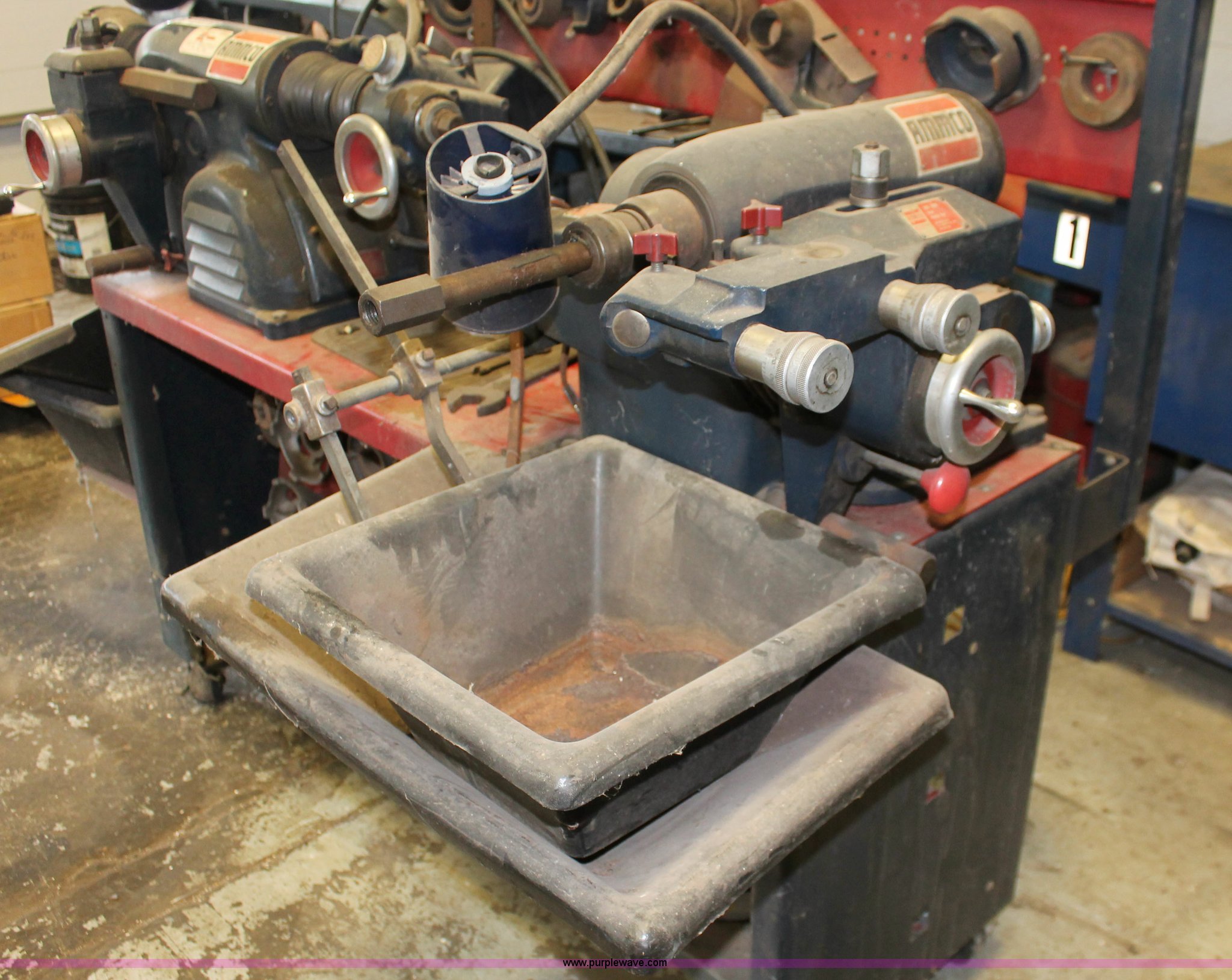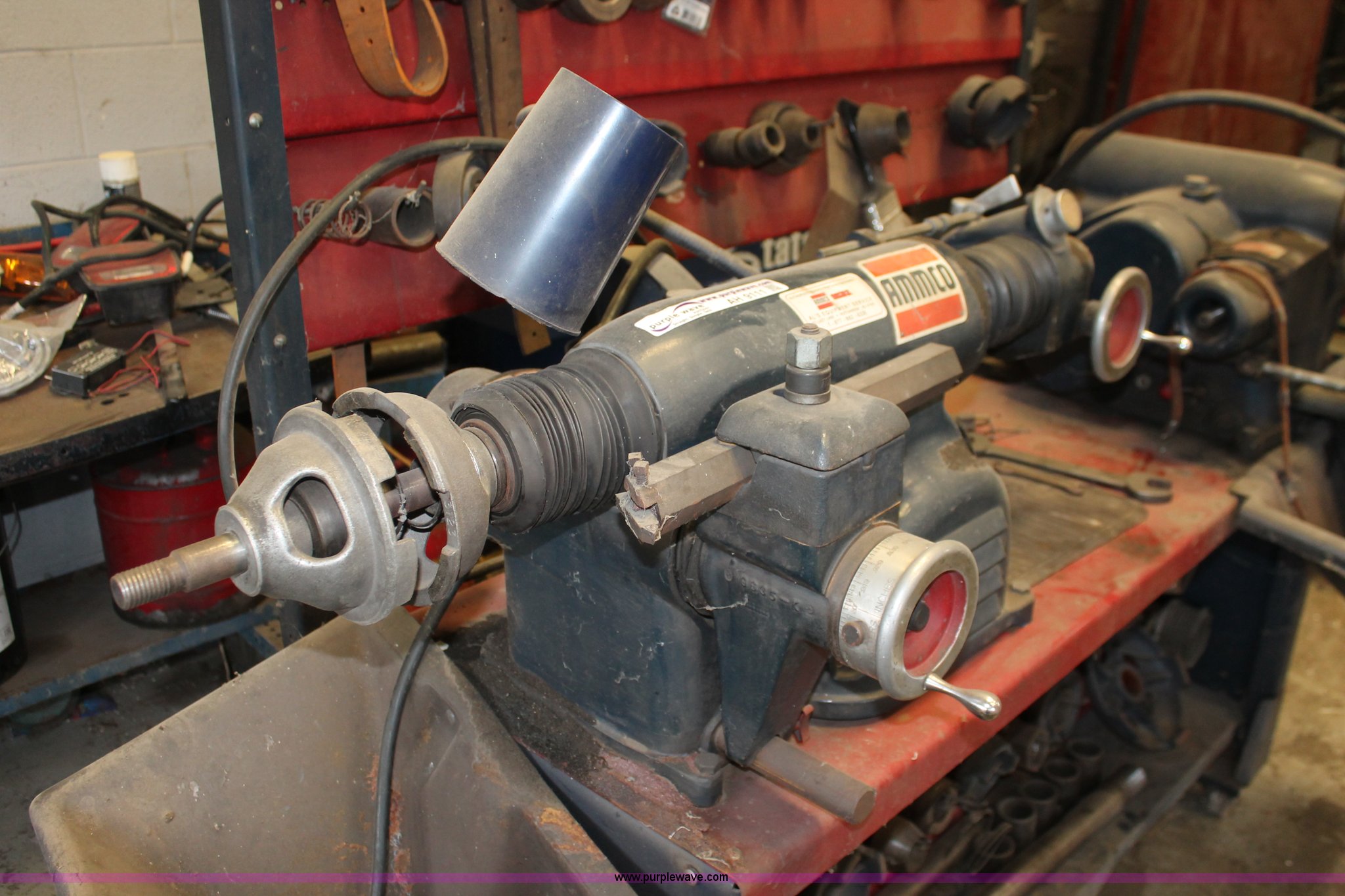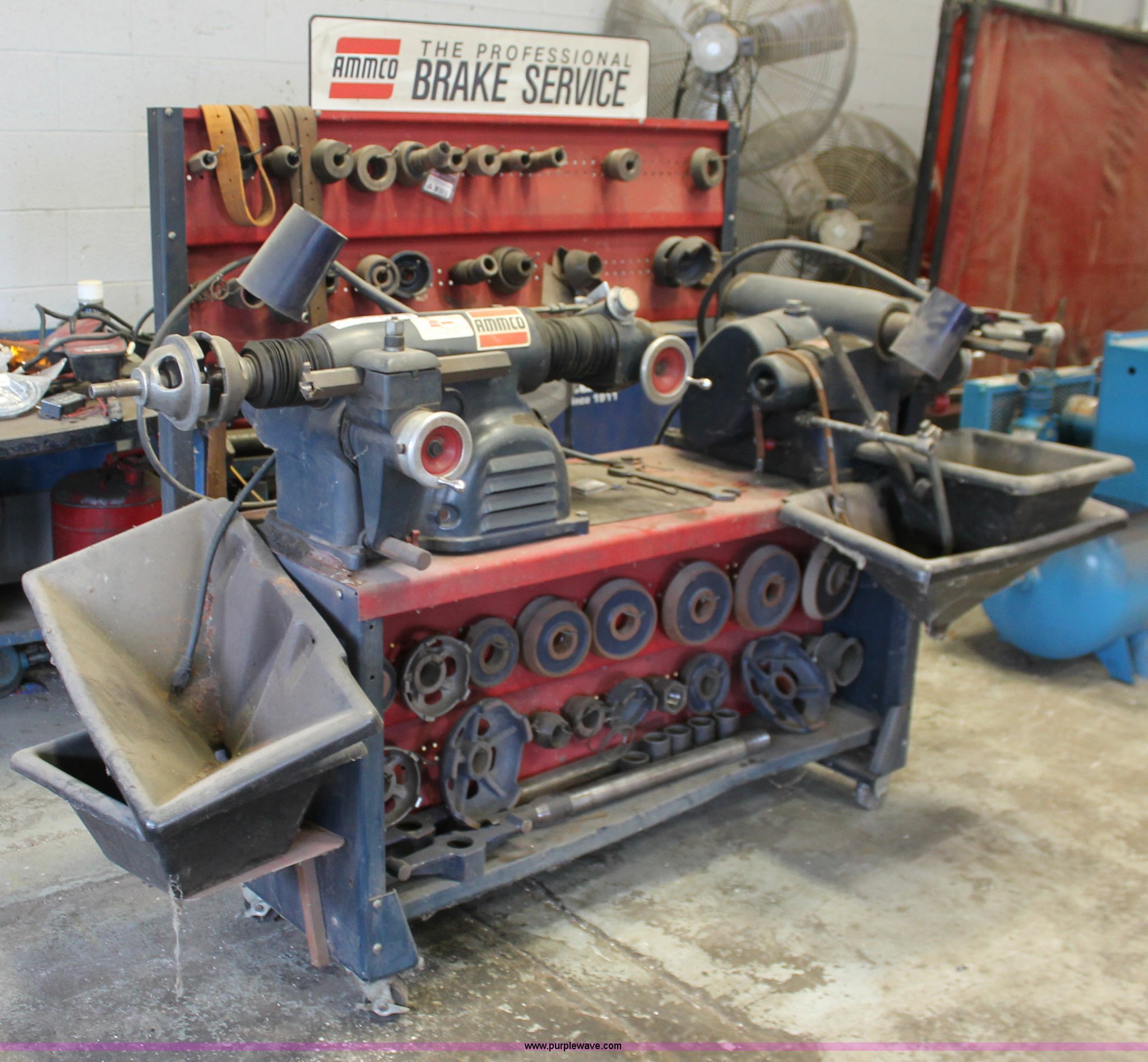 Purple Wave is selling a used Tools in Kansas. This item is a Ammco brake service/lathe machine with the following: Model 3000, Serial 36575, Disk brake lathe, Model 7000, Serial 22699, Twin facing tool, Model 6900, Work center on casters, Tooling, Baths