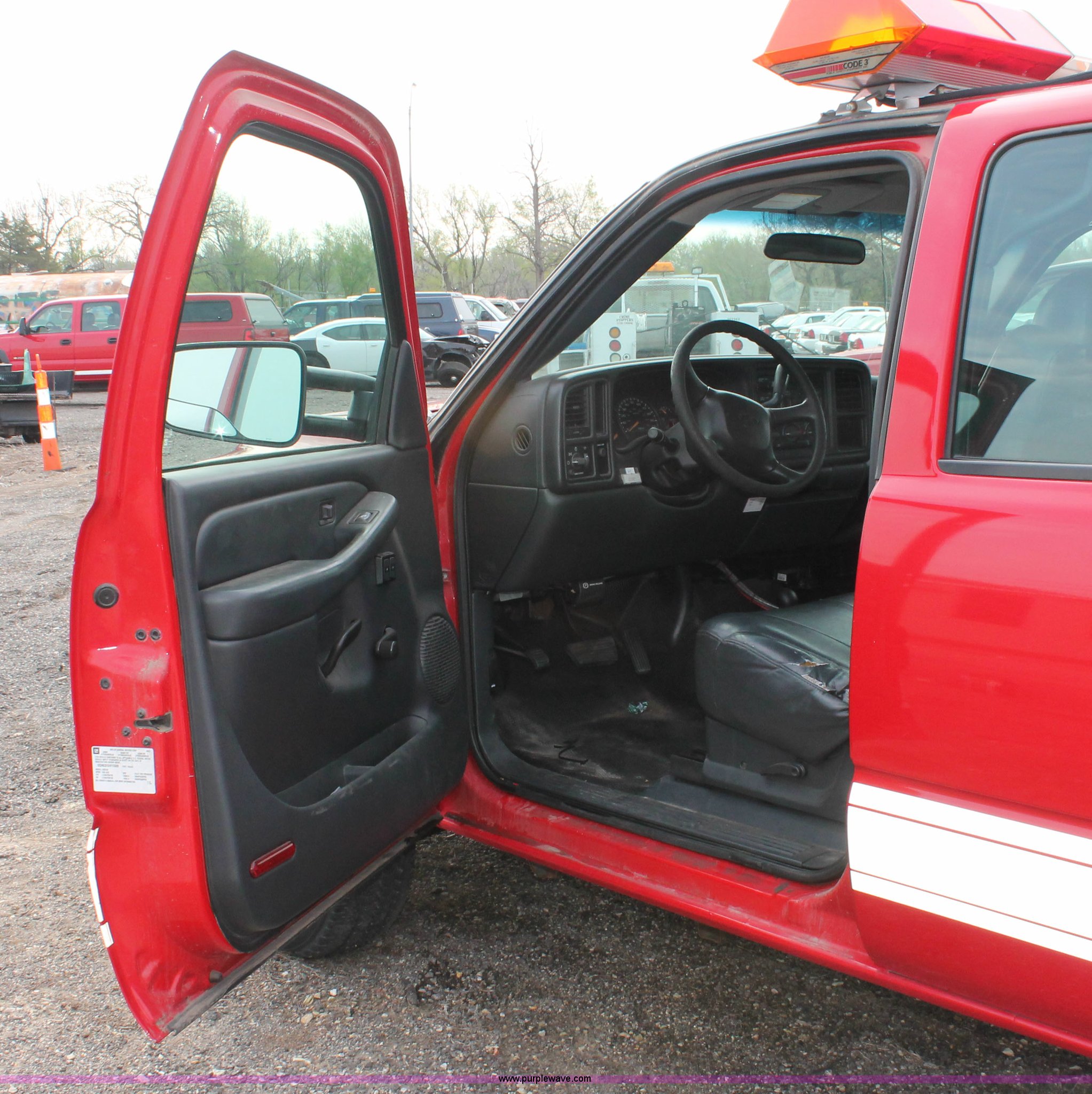 2001 Chevrolet Silverado 2500HD Crew Cab pickup truck. 124,994 miles on odometer, 6.6L V8 OHV 32V turbo diesel engine, Automatic transmission, Four wheel drive, AC and heat, Tilt, AM/FM, Power windows and locks, Vinyl interior, Aftermarket switch, Code 3 emergency light bar, Rear caution light bar, Continental fiberglass topper, Full length slide out tool tray, LT245/75R16 tires, Hail damage, Alternator inoperable, Battery dead, Emergency service gear wiring harness, Unit# 2-1477. 1GCHK23131F173295. Shipping quotes available. Central Maintenance Facility. 1801 S McLean. Wichita, KS 67213