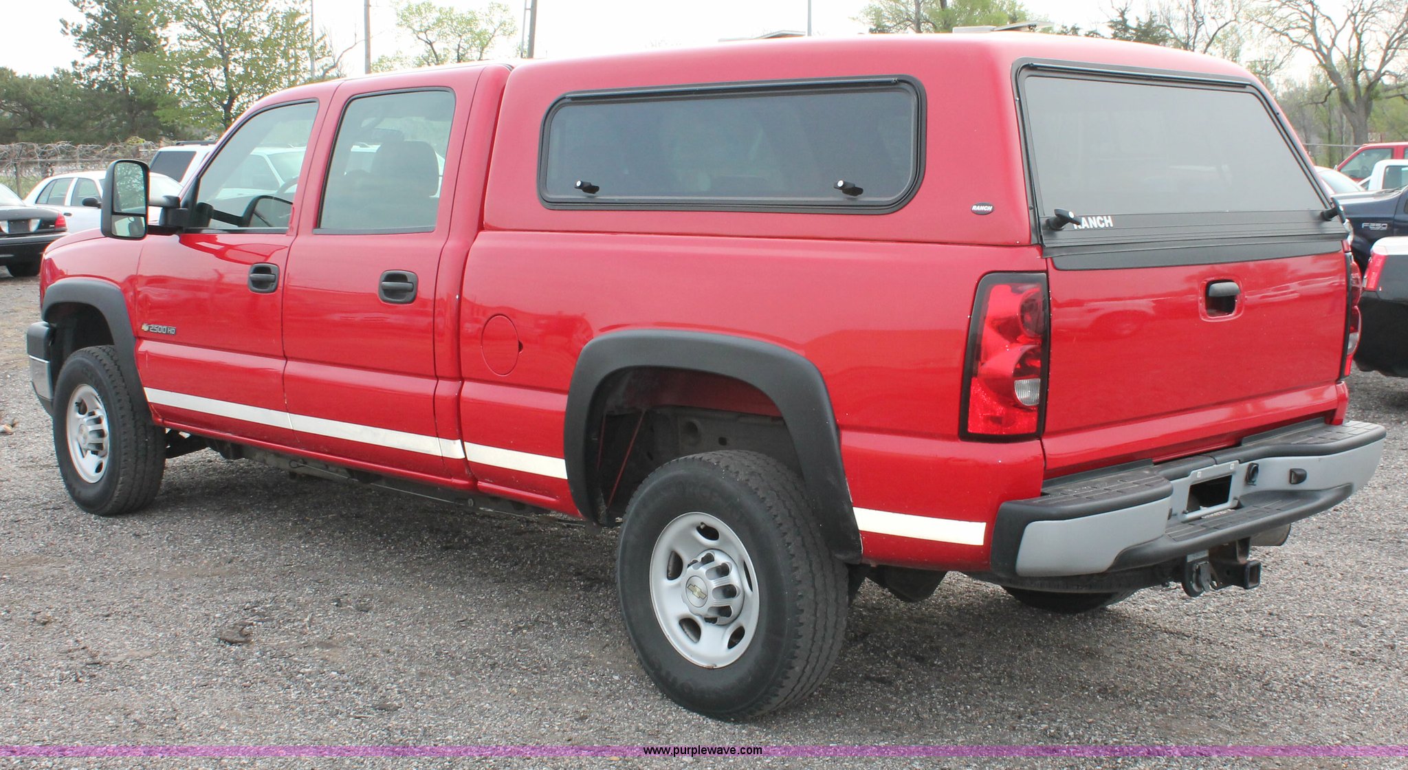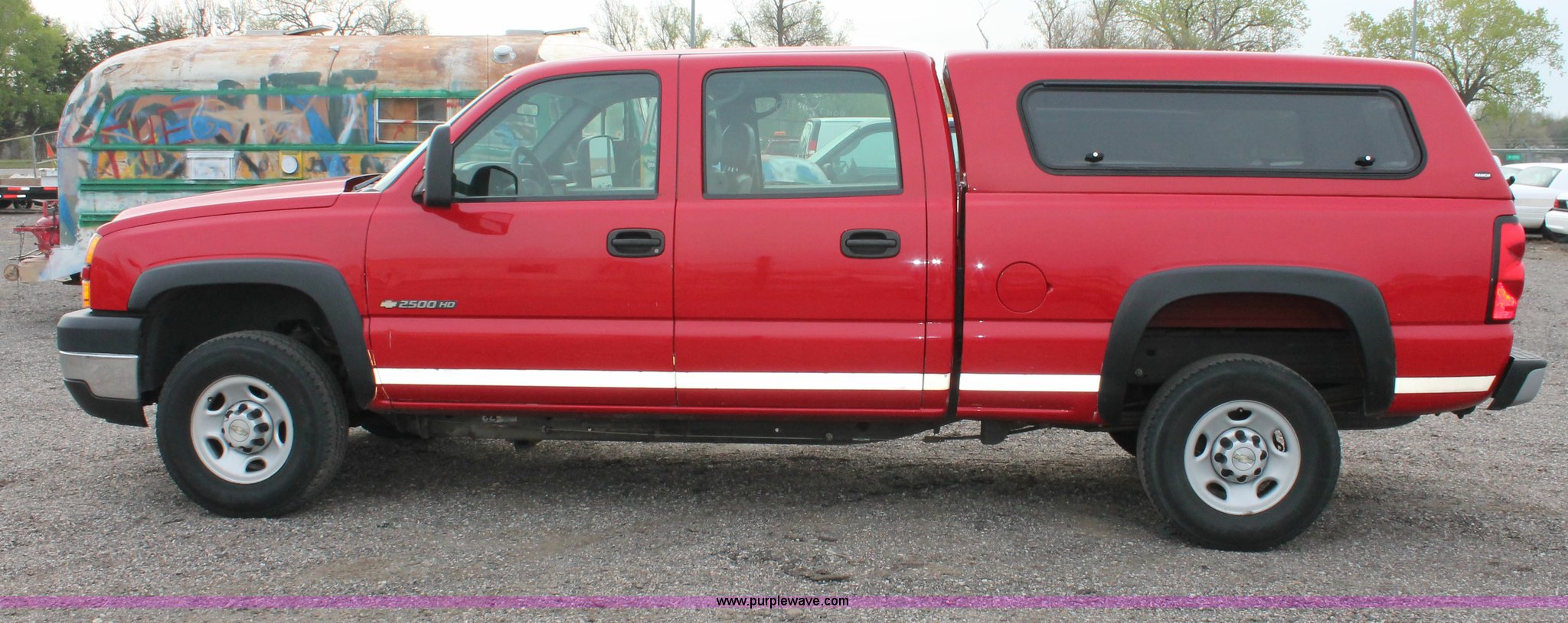 Purple Wave is selling a used 3/4 or 1 Ton Pickup or Van in Kansas. This item is a 2006 Chevrolet Silverado 2500HD Crew Cab pickup truck with the following: 99,332 miles on odometer, 6.0L V8 SFI gas engine, Automatic transmission, Four wheel drive, AC and heat, Tilt, Cruise, AM/FM, Power windows, locks, and mirrors, Vinyl interior, Ranch fiberglass topper, Full reach in side doors, Emergency service wiring harness, Receiver hitch, Trailer wiring, LT245/75R16 tires, Spare tire, Unit# 001177