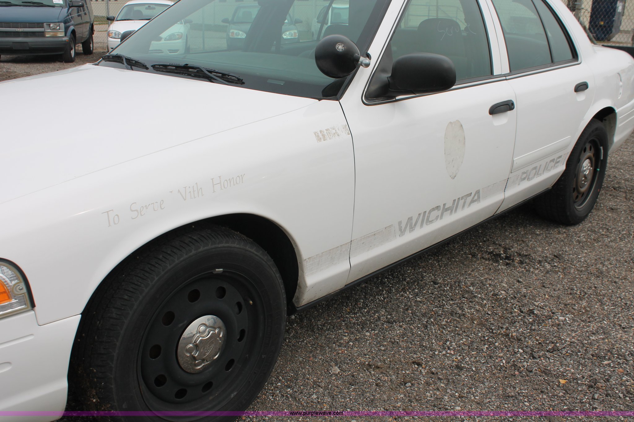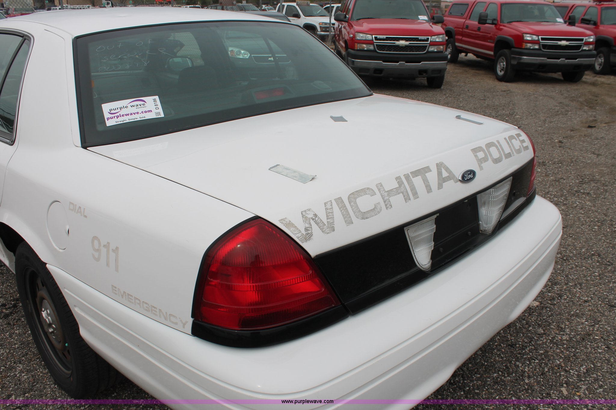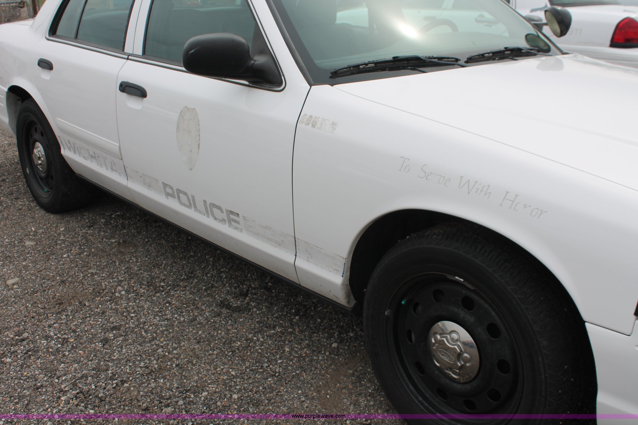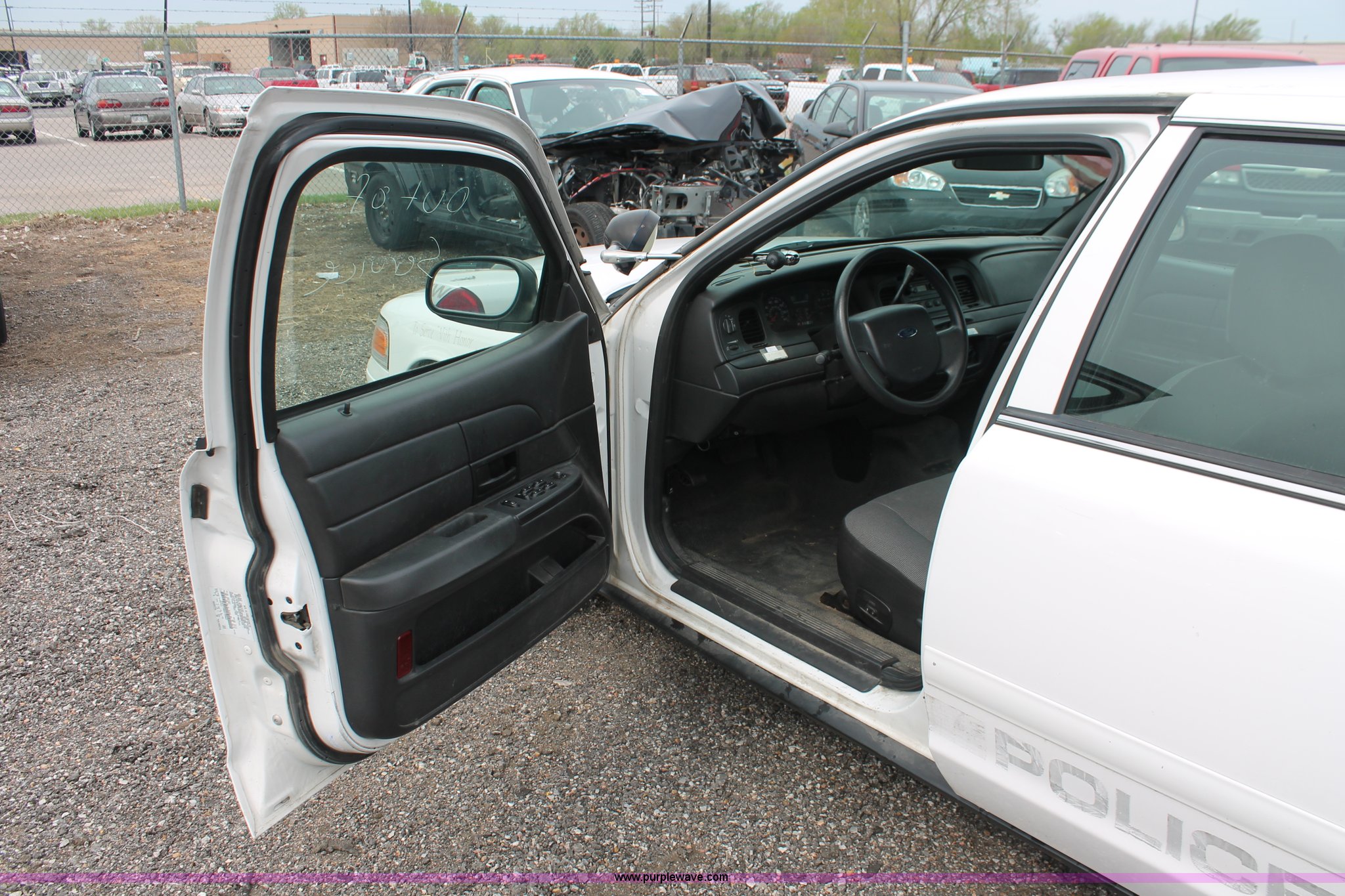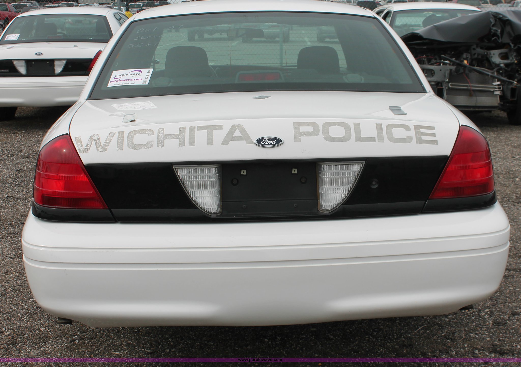 Purple Wave is selling a used Passenger Vehicle in Kansas. This item is a 2006 Ford Crown Victoria Police Interceptor with the following: 86,710 miles on odometer, 4.6L V8 SOHC 16V gas engine, Automatic transmission, AC and heat, Tilt, AM/FM, Power windows, locks, and seats, Cloth front interior, Vinyl rear interior, P235/55R17 tires, Battery dead, Hail damage, Holes in roof and trunk, Unit# 000898
