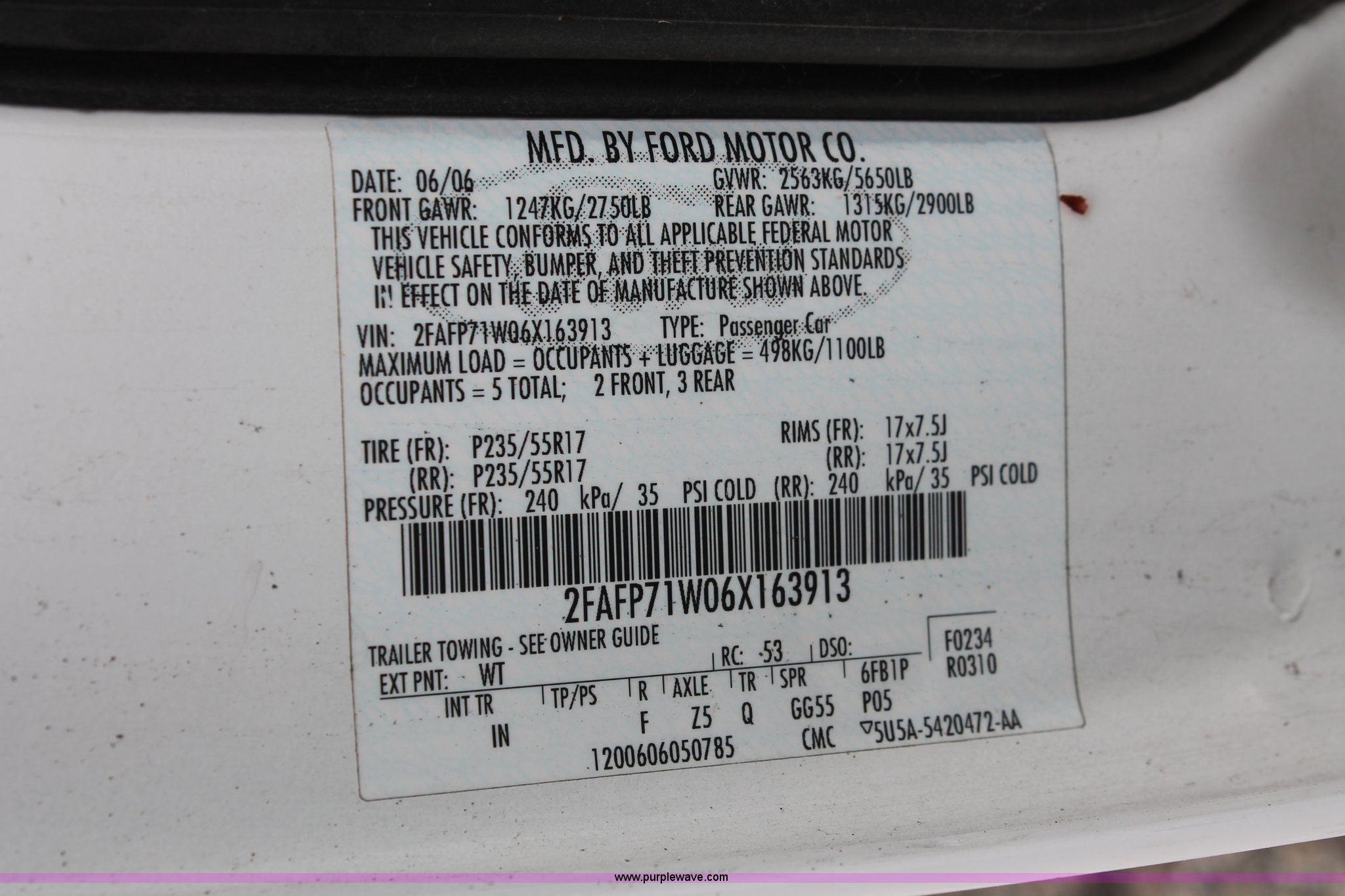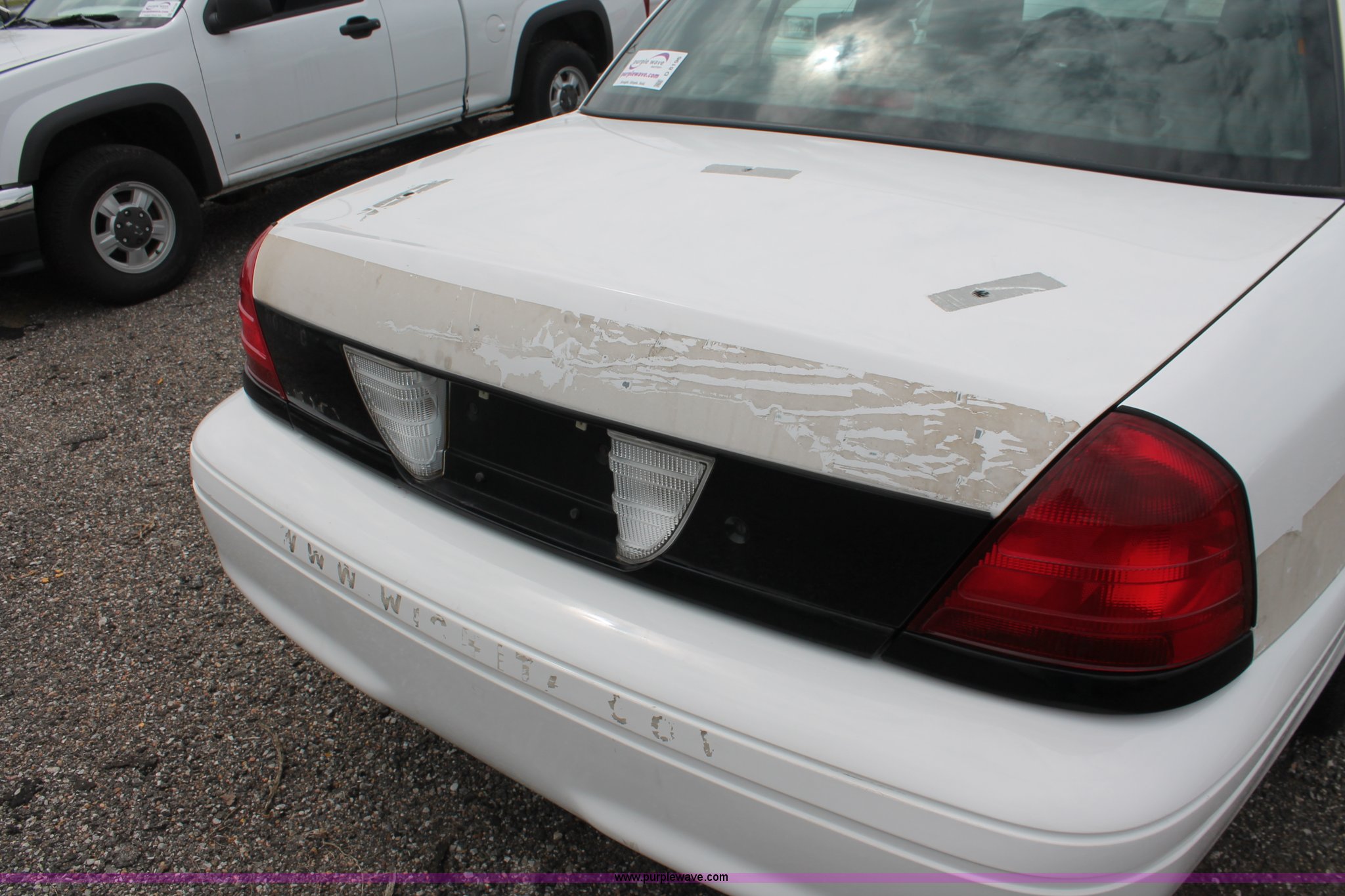 Purple Wave is selling a used Passenger Vehicle in Kansas. This item is a 2006 Ford Crown Victoria Police Interceptor with the following: 65,051 miles on odometer, 4.6L V8 SOHC 16V gas engine, Automatic transmission, AC and heat, Tilt, AM/FM, Power windows, locks, mirrors, and seats, Cloth front interior, Vinyl rear interior, P235/55R17 tires, Battery dead, Engine noise, Paint peeling, Exterior body damage, Holes in roof and trunk, Unit# 001280