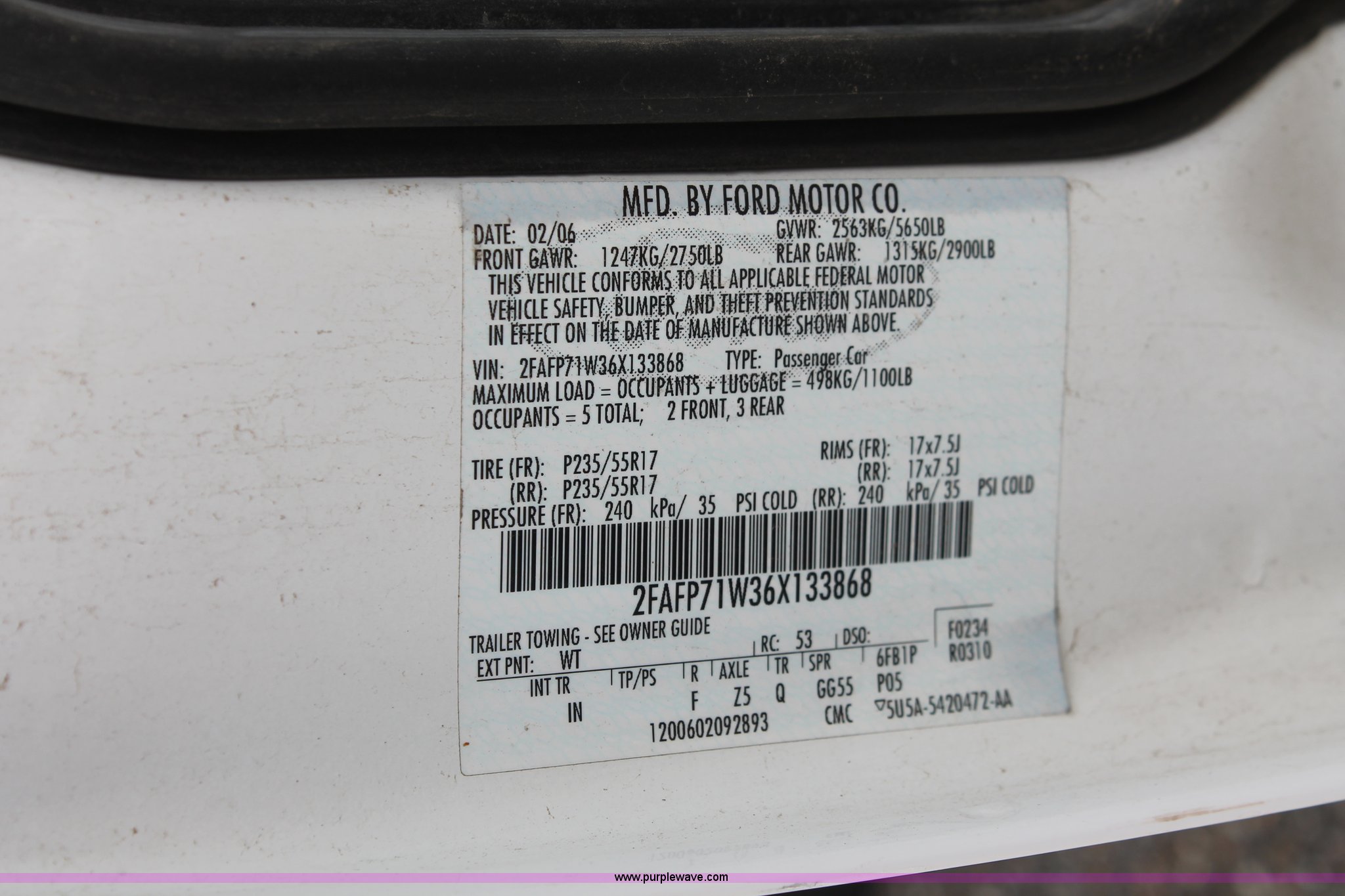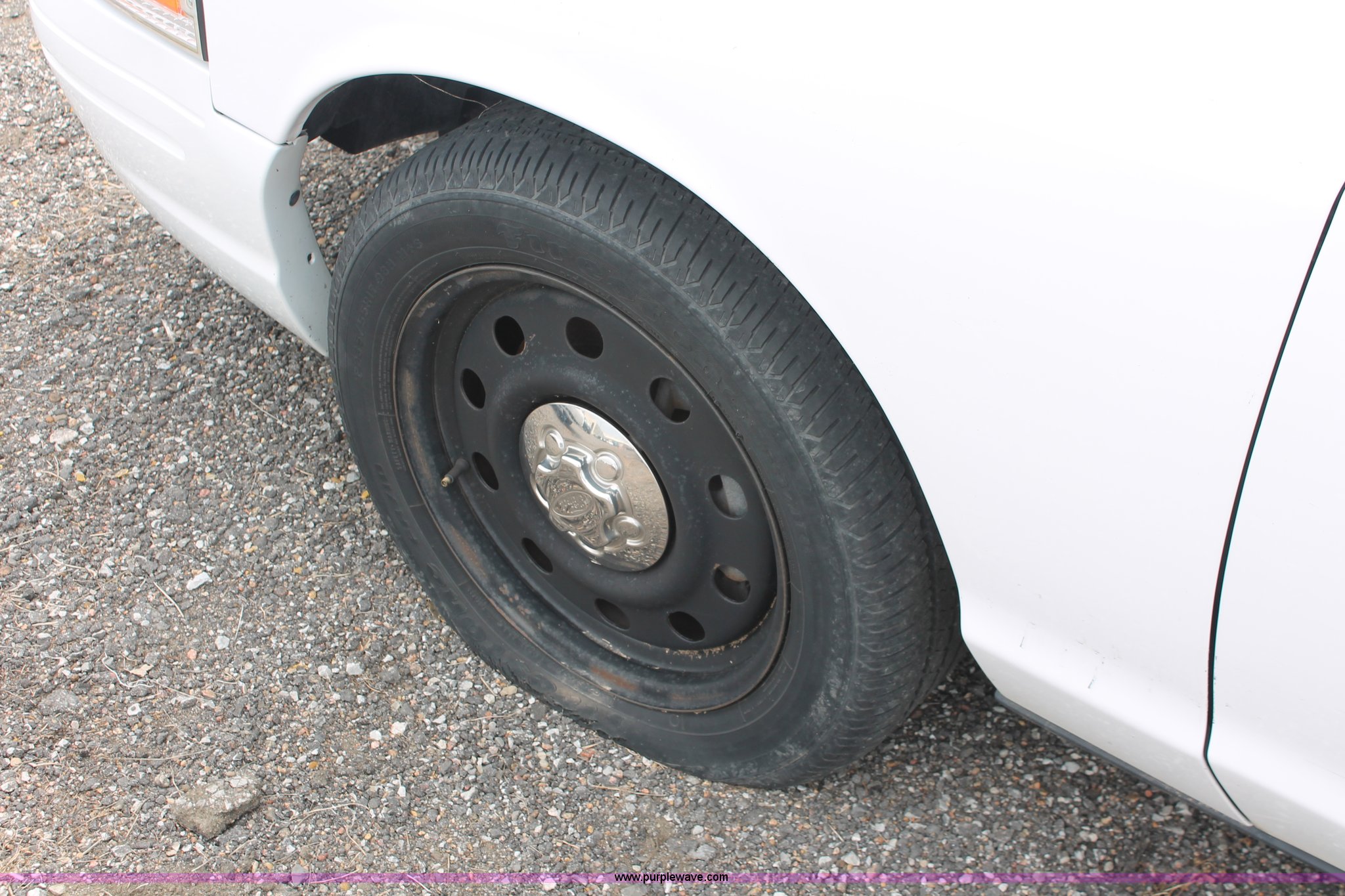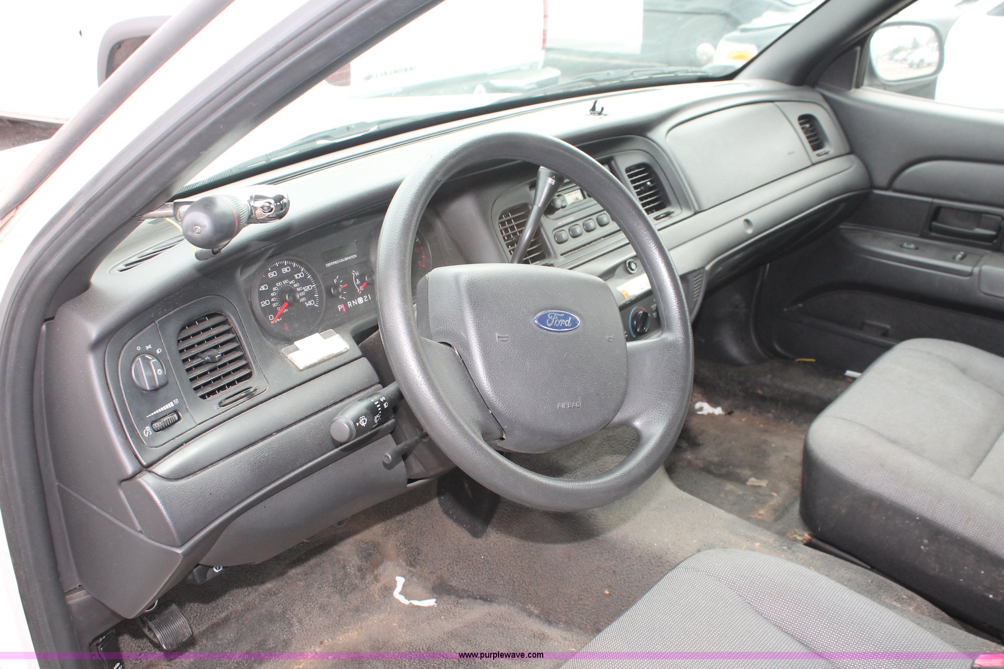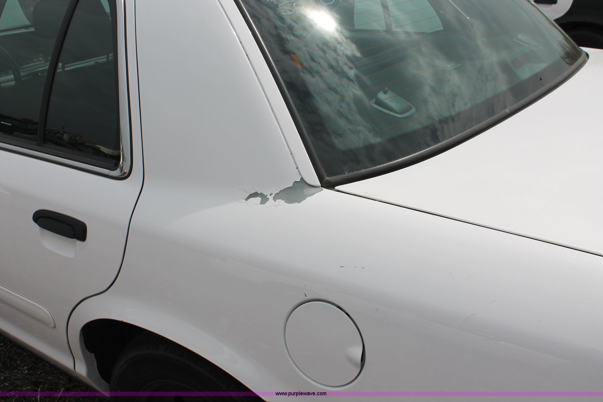 Purple Wave is selling a used Passenger Vehicle in Kansas. This item is a 2006 Ford Crown Victoria Police Interceptor with the following: 81,805 miles on odometer, 4.6L V8 SOHC 16V gas engine, Automatic transmission, AC and heat, Tilt, AM/FM, Power windows, locks, mirrors, and seats, Cloth front interior, Vinyl rear interior, P235/55R17 tires, Battery dead, Paint peeling, Hail damage, One flat tire, Holes in roof and trunk, Unit# 000958